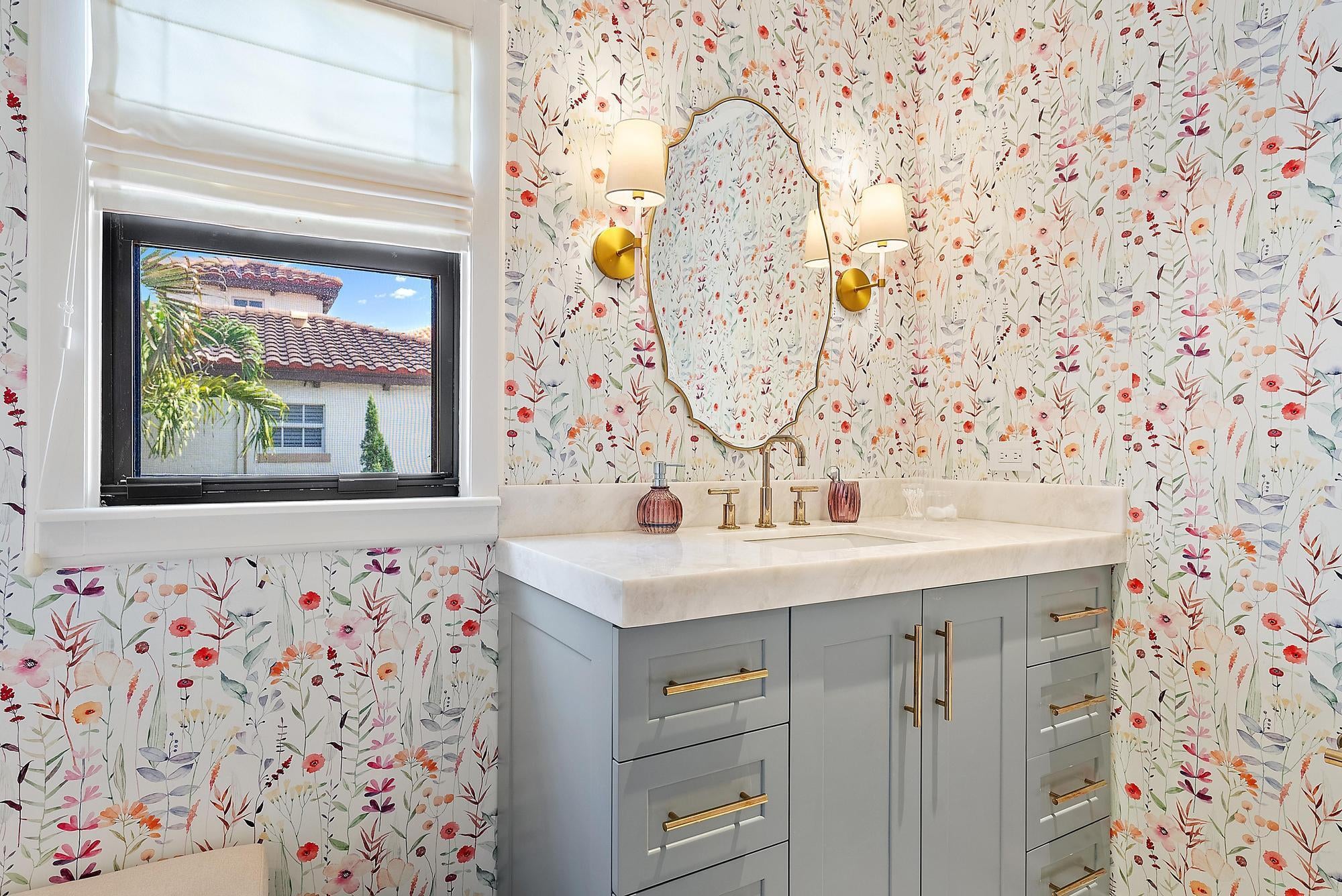 TOTAL, CUSTOM renovation in Historic Prospect Park. Meticulous perfection, located just across the street from the Intracoastal Waterway. The main home offers 3 bedrooms and 2.5 baths & guest house with full kitchen, dining, living, bedroom and full bath, and separate cabana/office/gym & bathroom. Custom, Eat-in kitchen with expansive island & top-of-the-line appliances. French doors from almost every room allow access to a beautiful Florida landscape, boasting a covered loggia and spacious pool area that is perfect for entertaining or just relaxing. No detail has been overlooked. The first floor boasts, formal living, formal dining & family area with pristine finishes and gorgeous hardwood flooring throughout. Additional highlights include sound system, impact windows, doors & amplestorage. Walking distance to Palm Beach, downtown WPB, neighborhood restaurants and shoppping & minutes to Palm Beach International.