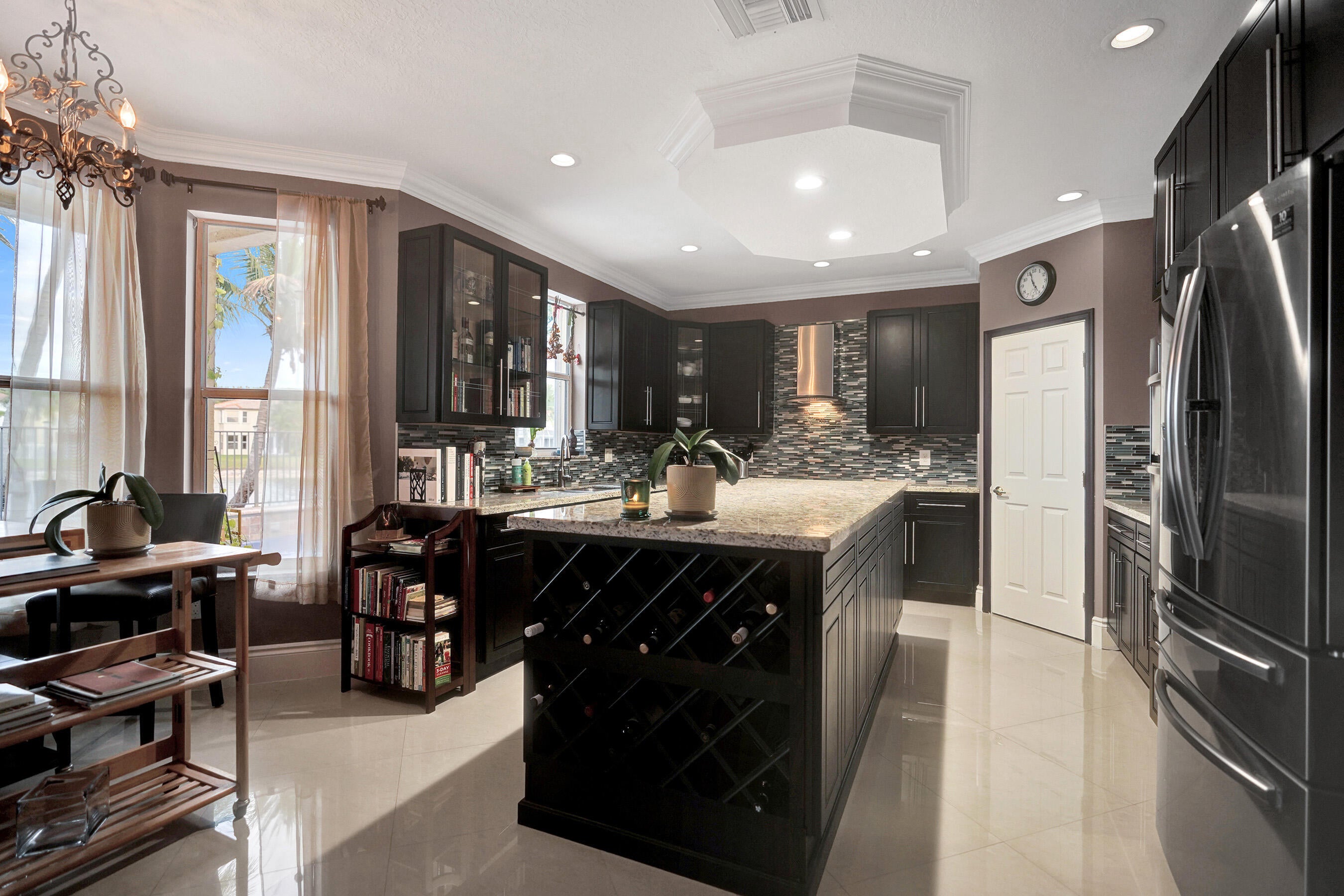 Tucked away at the end of a quiet cul-de-sac and surrounded by shimmering water and nature, this extraordinary waterfront residence offers a rare blend of privacy, elegance, and atmosphere within Olympia's prestigious gated community. From the moment you arrive, the home feels like an escape, a place where Florida sunshine meets European romance and everyday living feels beautifully elevated.Spanning over 3,600 square feet, this five-bedroom, 2.5-bath home, plus a den or office, is defined by its soft pastel palette, soaring ceilings, and sparkling crystal chandeliers that bring a sense of old-world charm and playful sophistication to every space. Natural light pours in from all angles, highlighting thoughtful architectural details and creating interiors that feel whimsical, warm, andirresistibly inviting. The mood is unmistakable, less suburban South Florida and more Italian villa by the water. The heart of the home is a spacious open kitchen, designed for both effortless entertaining and everyday enjoyment. A large center island, striking cabinetry, a wine cooler, and seamless connection to the living areas make it ideal for gatherings both intimate and grand. Nearly 180-degree lake views provide a dramatic, ever-changing backdrop, turning meals and moments into experiences. The primary suite is a true retreat, generously sized and thoughtfully designed with custom bathroom finishes and a private terrace overlooking the pool and expansive lake. Mornings begin with sunlight dancing across the water, and evenings end with the sky painted in color, a setting that feels straight out of the Italian countryside. Outdoors, the home transforms into a private resort. A brand new screened-in patio, adorned with cafe lighting, creates an enchanting space for long dinners, sunset aperitivos, and relaxed evenings under the stars. The pool and spa overlook the lake, capturing breathtaking sunset views that reflect across the water and fill the backyard with a quiet, cinematic beauty. Lush landscaping enhances the sense of seclusion, making the outdoor living areas feel intimate, serene, and intentionally designed. Living in Olympia means enjoying resort-style amenities while being perfectly positioned in the heart of Wellington, a community celebrated worldwide for its polo fields, equestrian estates, and international show grounds. This is a place where horses, heritage, and refinement shape the lifestyle, yet shopping, dining, and everyday conveniences are just minutes away. And when the mood shifts toward salt air and ocean breezes, the beach is an easy drive, making coastal days effortlessly accessible. Here, you enjoy the very best of Florida living, sunshine, water, and seamless indoor-outdoor flow, with the rare sensation of being transported somewhere entirely different. It is a home that feels collected, not copied. Romantic, not routine. This is more than a residence. It is a waterfront sanctuary that radiates serenity, exclusivity, and soul, a place that lingers in memory long after the doors close behind you.