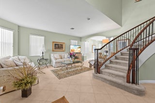 Step into a world of refined elegance in this stunning pool & waterfront estate, perfectly situated in sought-after Wellington community, Olympia. A grand double-door entrance sets the tone, revealing a light-filled interior defined by soaring volume ceilings and a spectacular sweeping staircase that serves as the home's architectural centerpiece. The open-concept floor plan is designed for both sophisticated entertaining and relaxed daily living, featuring expansive formal living and dining areas bathed in natural light through large windows that frame serene views of the outdoors.The heart of the home is the cozy kitchen, equipped with rich cabinetry, a center island with prep sink, and stainless steel appliances, seamlessly flowing into a cozy family room perfect for gathering. Beyond the cosmetic beauty, this residence offers unmatched peace of mind with recent upgrades. Enjoy the comfort and efficiency of a brand new 2024 A/C system, complete with a 12-year warranty and a health-focused U/V light system in each unit (with bulbs just replaced last month). A 2023 water heater further ensures that the home is as reliable as it is beautiful. Upstairs, the expansive primary suite serves as a true sanctuary, boasting a sitting area, a luxurious ensuite bath with a soaking tub, and a private balcony to enjoy your morning coffee while overlooking the water. The Florida lifestyle is fully realized in the backyard oasis, where a massive screened-in lanai houses a sparkling pool and spa, offering the perfect vantage point for breathtaking sunsets over the lake. With its blend of grand design, modern mechanicals, and picturesque water views, this Wellington gem is ready to welcome you home.