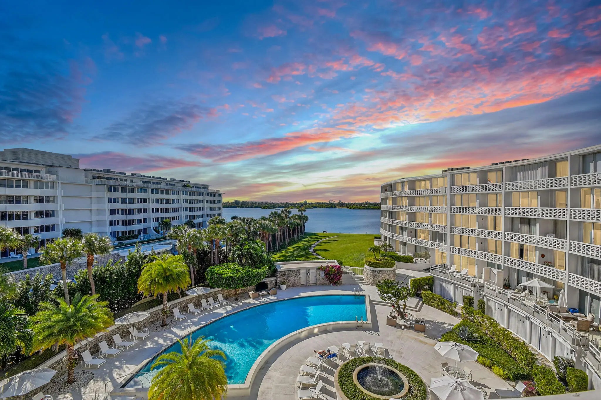 Indulge in the epitome of Palm Beach luxury in this exclusive residence, boasting deeded ocean access and breathtaking vistas of both the shimmering resort-style pool and the tranquil Intracoastal Waterway. Immaculate modern white tile flows seamlessly throughout, complementing the sophisticated ambiance of this iconic mid-century building, which features a pristine fitness center, an elegant card lounge, attentive on-site management, and curated social events. Just moments away, discover world-class Par 3 golf, acclaimed fine dining establishments, and upscale shopping destinations that define a life of prestige and comfort.