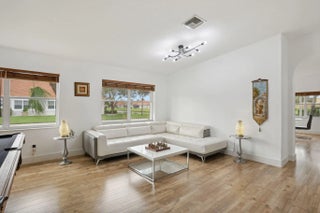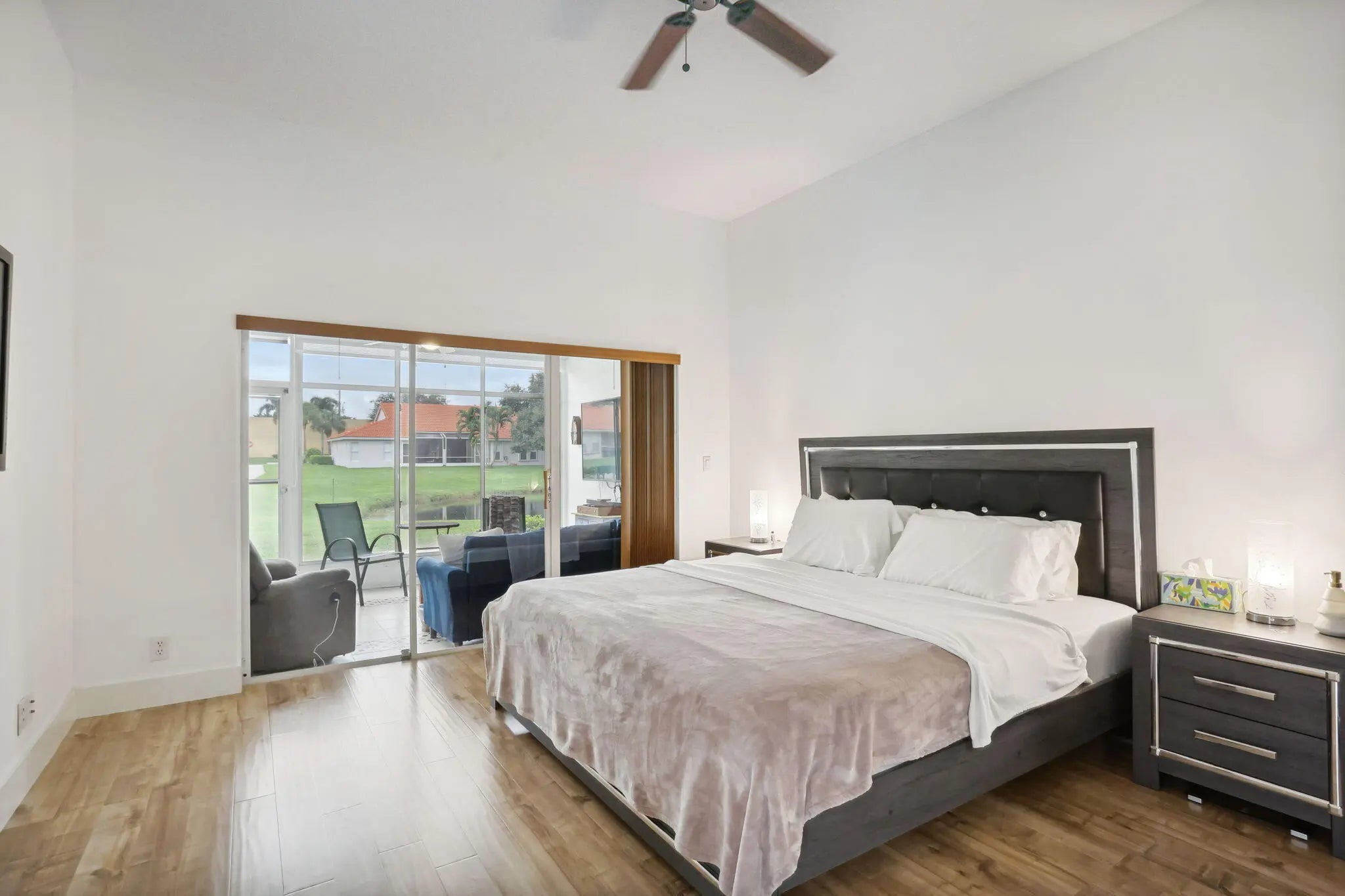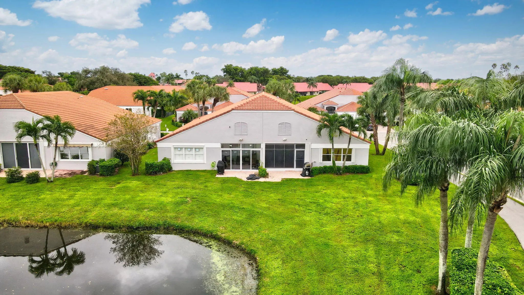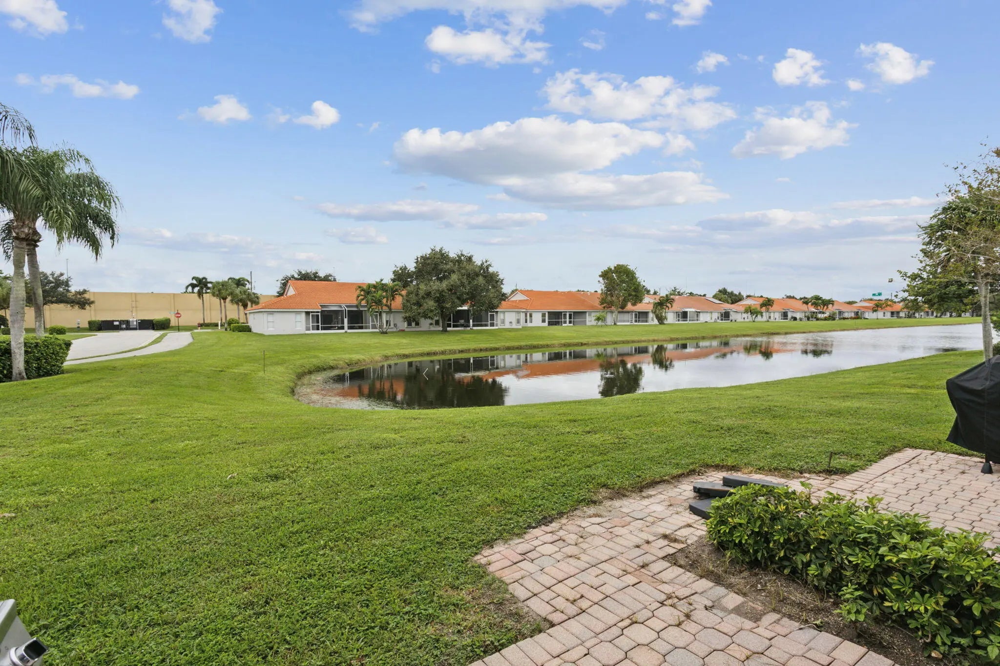 Welcome to this renovated & perfectly located villa on a large corner lot in Waterways at Delray. Property is being rented UNFURNISHED. Enjoy a serene water view from an air conditioned, large patio & an abundance of natural light. The open concept floor plan includes a modern kitchen with stainless steel appliances, granite countertops, spacious primary suite with walk-in closets & ensuite bathroom with 2 sinks, guest bedroom & bath, a dedicated laundry room with full size washer/dryer & a 1-car garage with a double wide driveway for extra parking. Waterways is a gated community. Its amenities include high speed internet, trash service, exterior landscaping, a dog park, tennis courts & a community pool. The villa is ideally located near dining & shopping. Don't miss this opportunity!