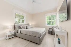 A rare riverfront lease in one of Stuart's most coveted locations. This 4-bedroom, 4.5-bath estate sits on over 1.2 acres with wide-water views and a private dock. Designed for elevated living, it features soaring ceilings, a gourmet kitchen with Viking and Sub-Zero appliances, an oversized pantry, and a 3-car garage. Step outside to a resort-style pool and spa, expansive patio, and lush tropical grounds ideal for entertaining or sunset relaxation. Just minutes from downtown Stuart, beaches, the inlet, airport, hospital, and A-rated schools. Offered at $22,500/month annually, with seasonal rates available.