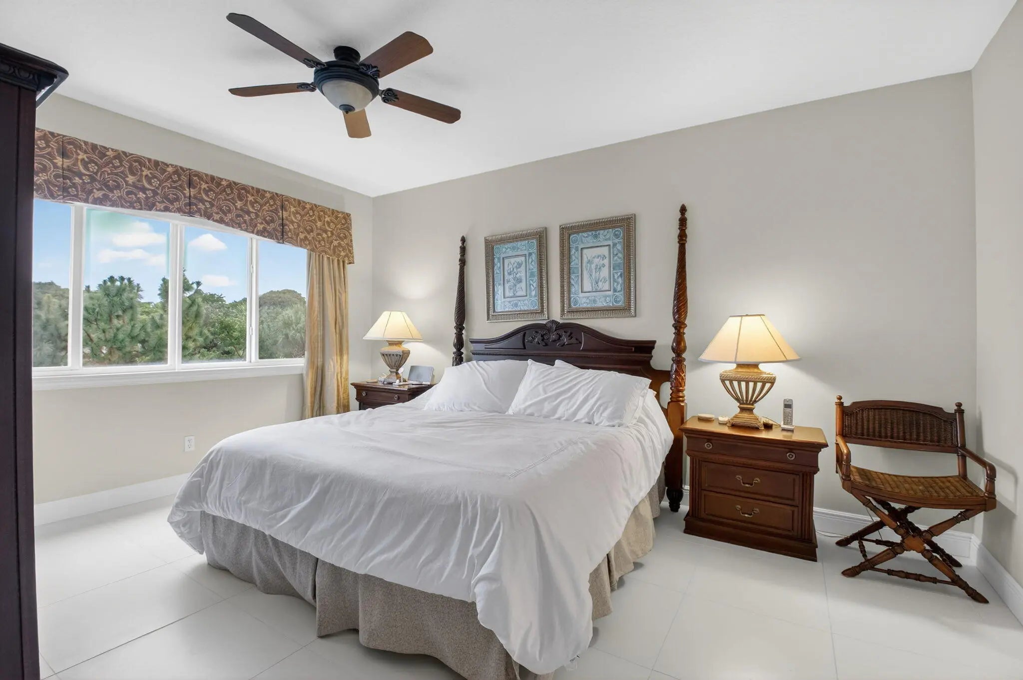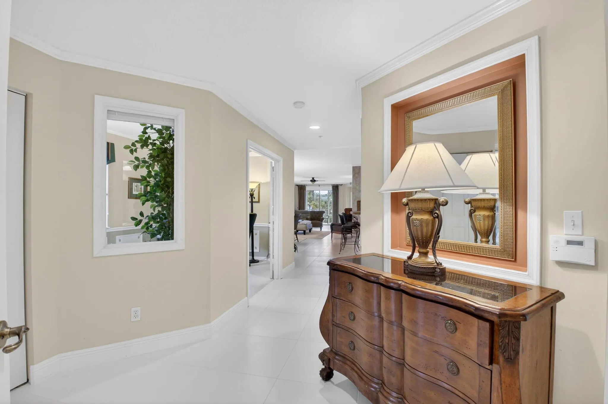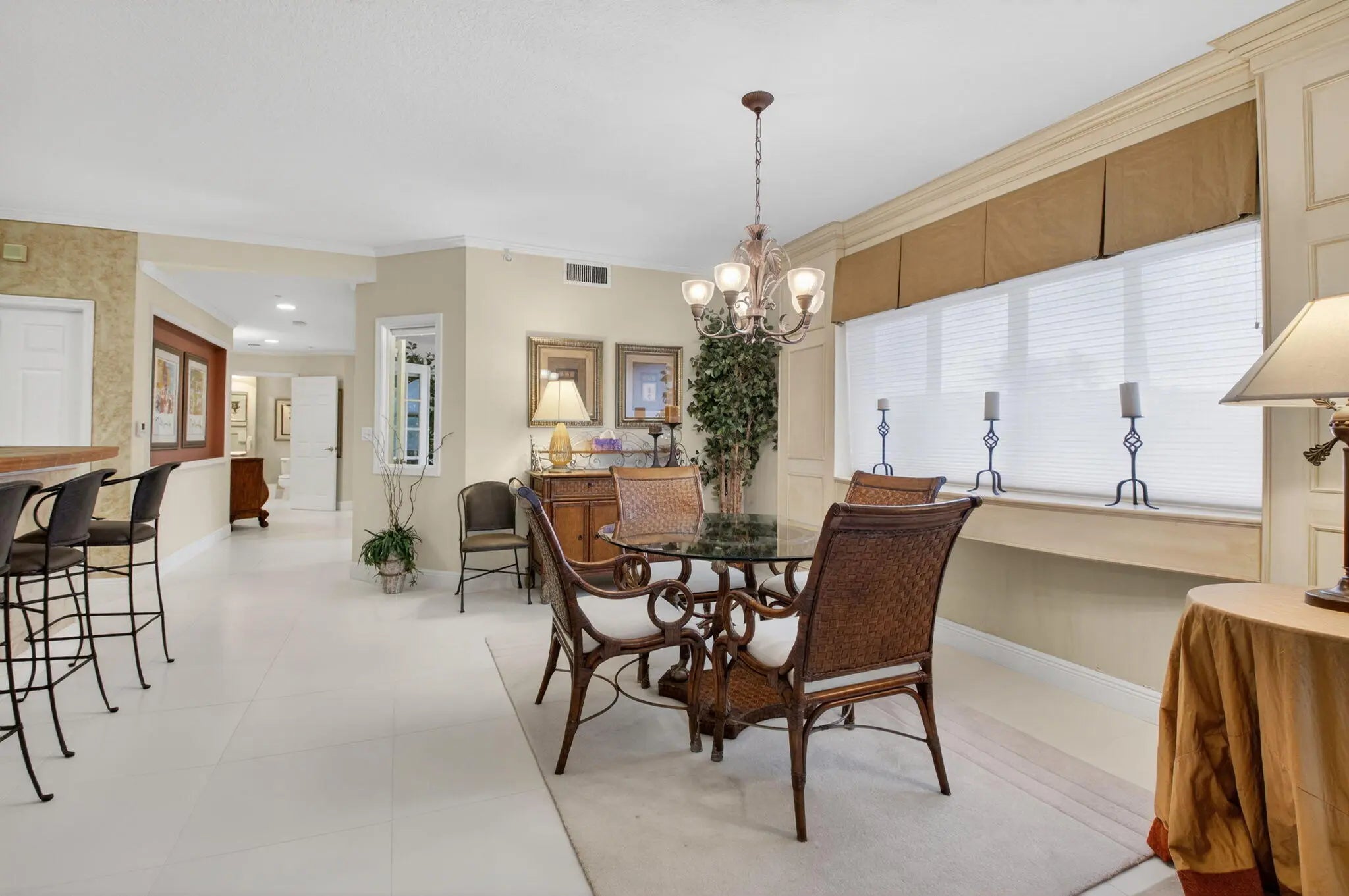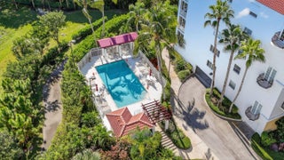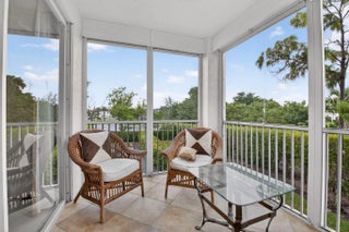 Furnished & professionally decorated, CORNER unit with 9' ceilings, garage parking & expansive 1808 sq ft of living area. Original Builder's Model. 2 Primary suites + Den. Open floor plan & screened, corner lana w/sunshades. Neutral tile in living areas & primary bedroom. Designer soft treatments, crown molding, picture frame accents, custom lighting & built-ins. Primary suite features dual closets, en-suite bath w/double sinks, jetted tub & separate shower. 2nd primary suite features walk-in closet, en-suite bath & charming Juliette balcony. Den w/built in desk & French doors easily converts to 3rd bedroom. Cable/Hi-Speed Internet included in low HOA fee. Community features, gated entrance, secured lobby, gated garage, heated pool & A-rated schools. 5 min to 95 & 15 min to downtown!