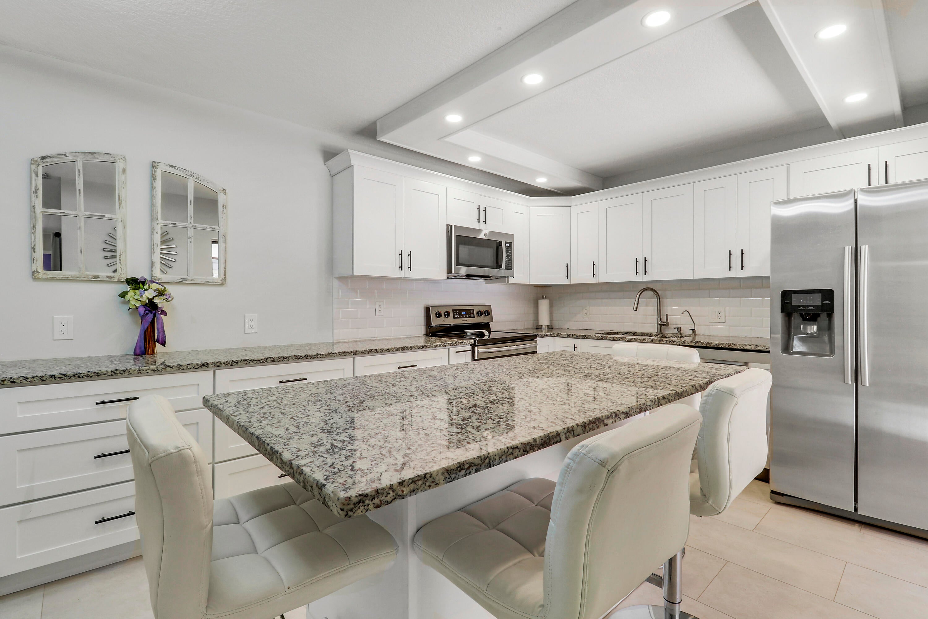 Welcome home to effortless living in the heart of PGA National, nestled within the sought-after Glenwood subdivision--where luxury meets convenience and there are no mandatory memberships.This beautifully updated three bedroom, 2.5 bath townhome offers a move-in-ready lifestyle with thoughtful upgrades throughout. Enjoy peace of mind with a new roof in 2025, new A/C, and newly replaced metal mansards (2024), allowing you to focus on living, not maintenance. The home is designed for gathering and entertaining, featuring a chef-inspired kitchen with custom 42-inch white cabinetry, granite countertops, a large center island, and stainless steel appliances, including a dedicated beverage refrigerator--perfect for hosting friends or quiet evenings at home.The main floor is finished with new porcelain tile flooring, complemented by knockdown ceilings throughout the home. Additional highlights include an enclosed screened-in patio, a peaceful outdoor patio space, and accordion storm shutters throughout for added convenience and protection. Don't miss this opportunity to enjoy luxury living at its finest in PGA National. The POA fee is $915 a year. The amenities include a luxury community pool, Tennis, Pickleball, racquet ball and a beautiful neighborhood to walk in. You can also enjoy the award winning space located just steps from your home! Don't miss your chance to own a piece of paradise! Welcome Home!