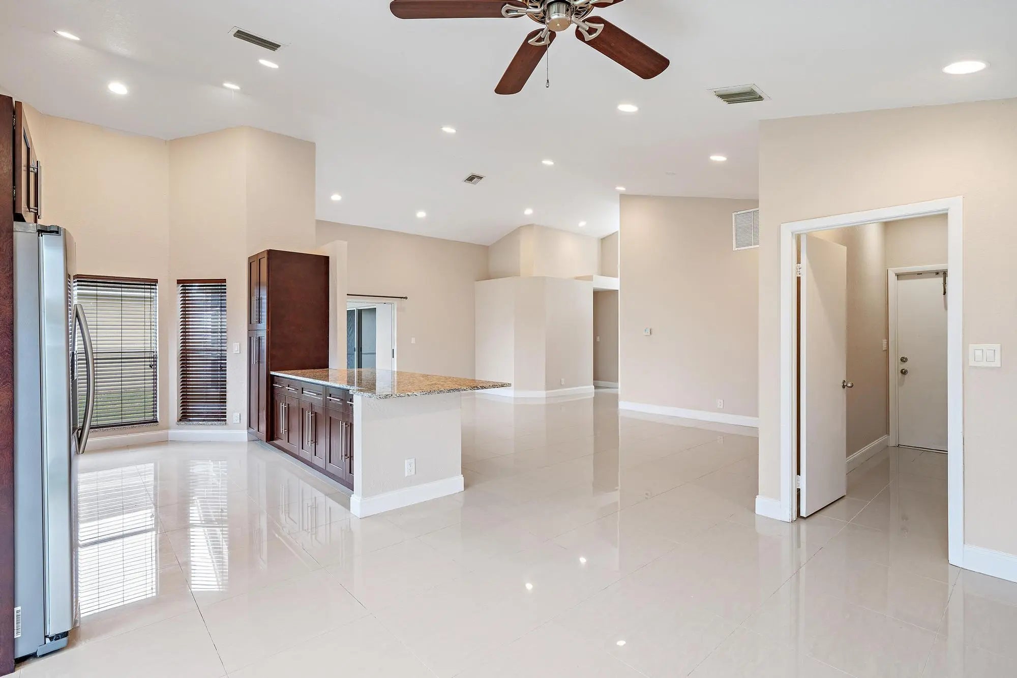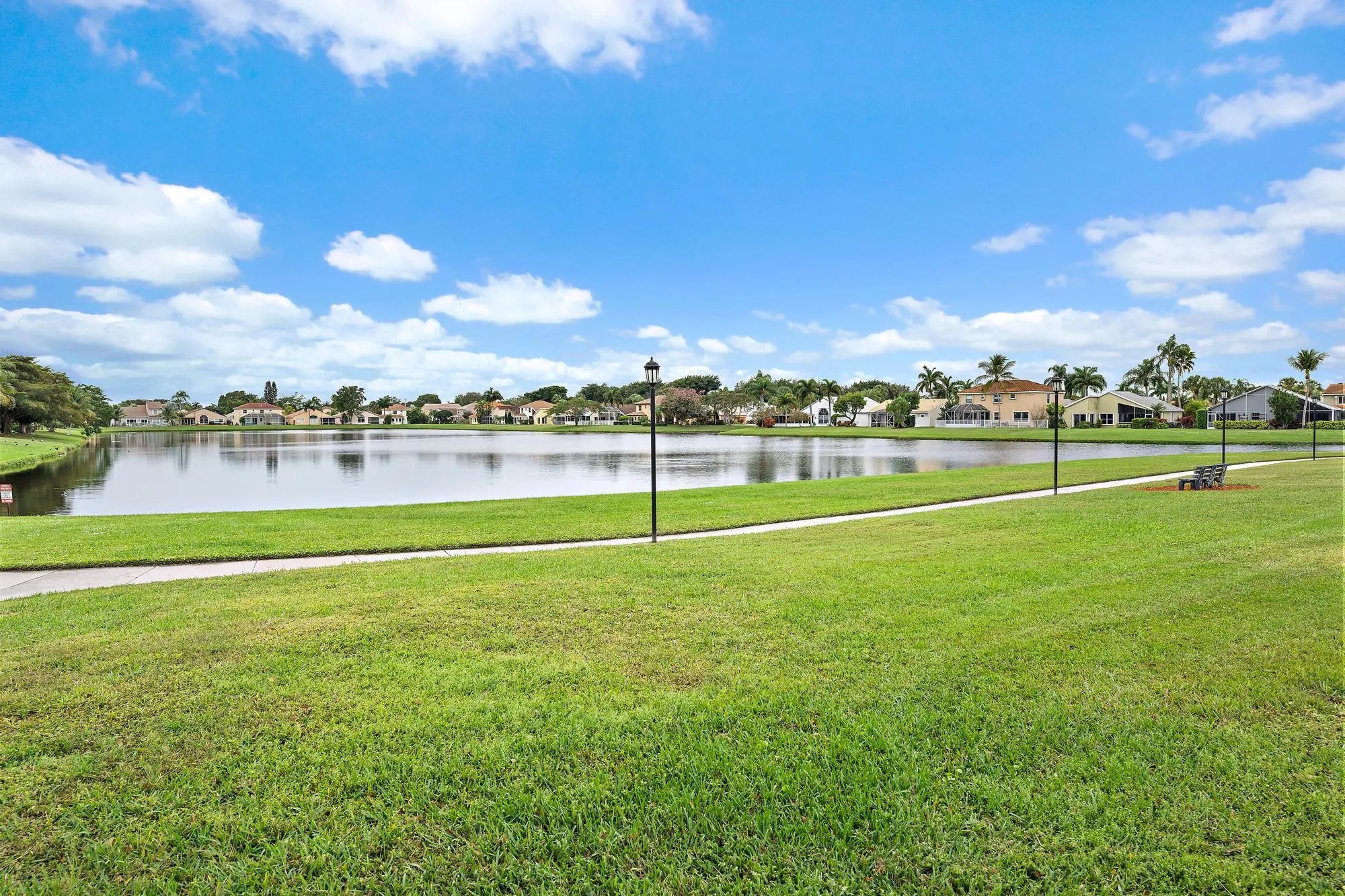 Welcome to this beautiful 3-bedroom lakefront home located in the desirable Boca Landings community. The home features high vaulted ceilings and a bright, open-concept layout. The renovated kitchen includes wood cabinetry, granite countertops, and stainless steel appliances. Updated bathrooms feature frameless glass showers and upgraded vanities. Porcelain tile flooring throughout. A full-size washer and dryer are included. Enjoy peaceful lake views from the screened patio. Boca Landings offers resort-style amenities, including an Olympic-size pool, kiddie pool, clubhouse, tennis courts, pickleball courts, racquetball, basketball courts, and playgrounds. The low HOA fee includes high-speed internet and cable. A-rated school zone. Sidewalks throughout. Close to parks and shopping.
