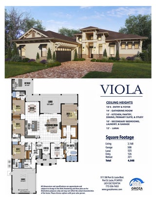 Build a fully custom estate on an oversized lot in the gated community of Rivella, surrounded by million-plus homes. This to-be-built option offers over 3,100 SF under air with soaring 14-ft ceilings, dramatic four-panel sliders, and an extra-wide covered lanai designed for elevated indoor-outdoor living.The proposed layout features a private first-floor primary suite, all bedrooms with ensuite baths, a gourmet kitchen with butler's pantry, flexible study/den, optional wine room, abundant natural light, and an oversized side-load garage. Buyers may customize the plan, modify the layout, and select all finishes and appliances or design an entirely different home with the builder.Create a truly custom residence in one of Port St. Lucie's most desirable community - NO CDD