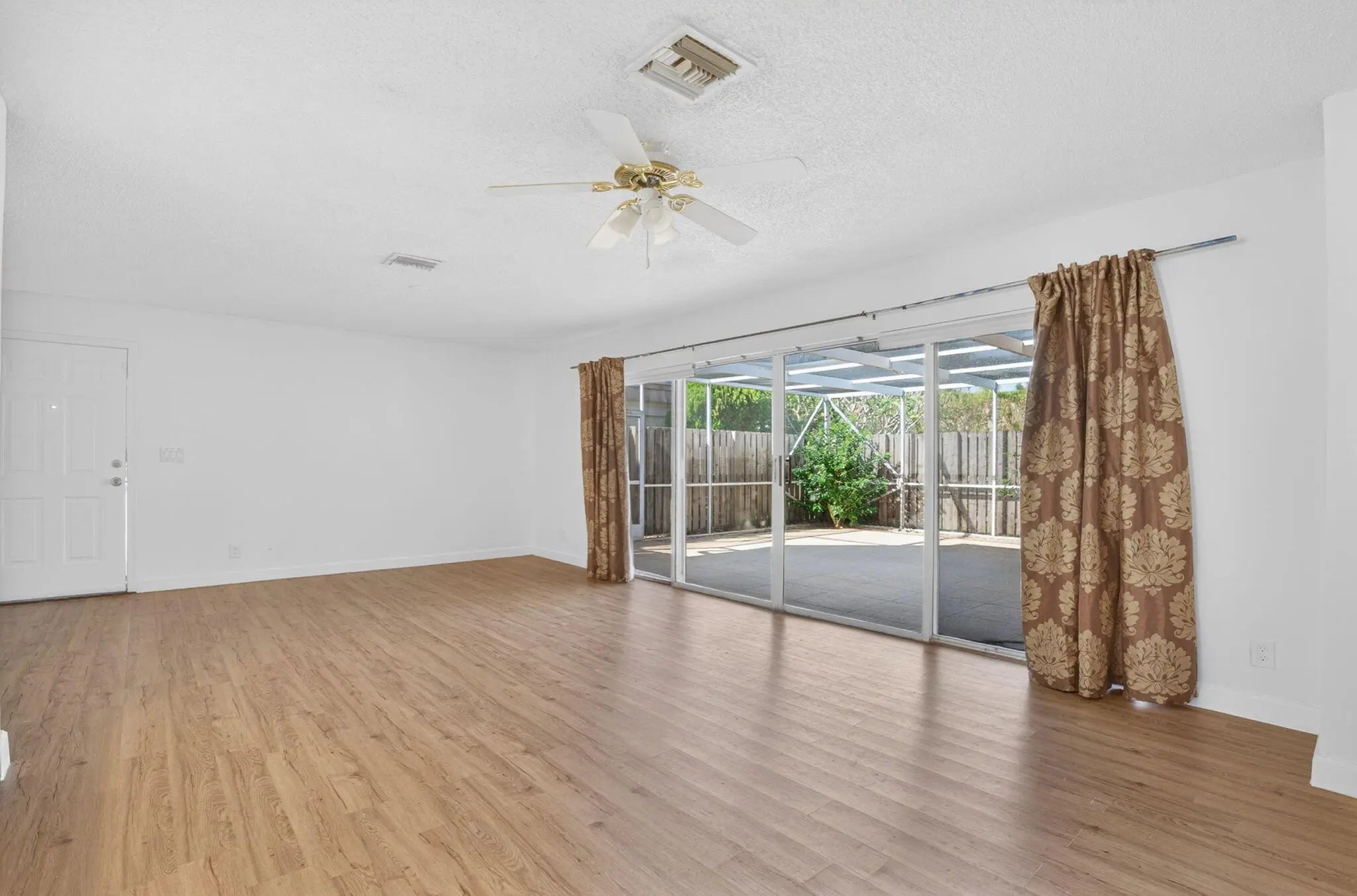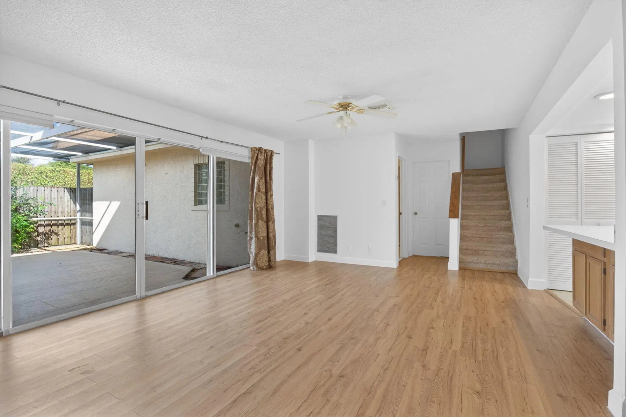 Motivated Seller! Prime location - Townhome with access to 95, Turnpike, PGA & Military Trail & is in the heart of Palm Beach Gardens. This large 3/2.5 is very private with spacious screened porch with a single-family feel. The home has laminate; tile & carpet flooring, and appliances are included. This open concept home has two oversized sliders which open to a private, screened patio serving as an extension to your living space. The kitchen has a pantry, plenty of counter work area, is open to living room, with space for stools at the counter, & storage cabinets below. Kitchen access is from the living & dining room as well as the den/family room. The den/family room also offers added privacy w/pocket doors & a bay window complete with shelf. The first floor has a bathroom with