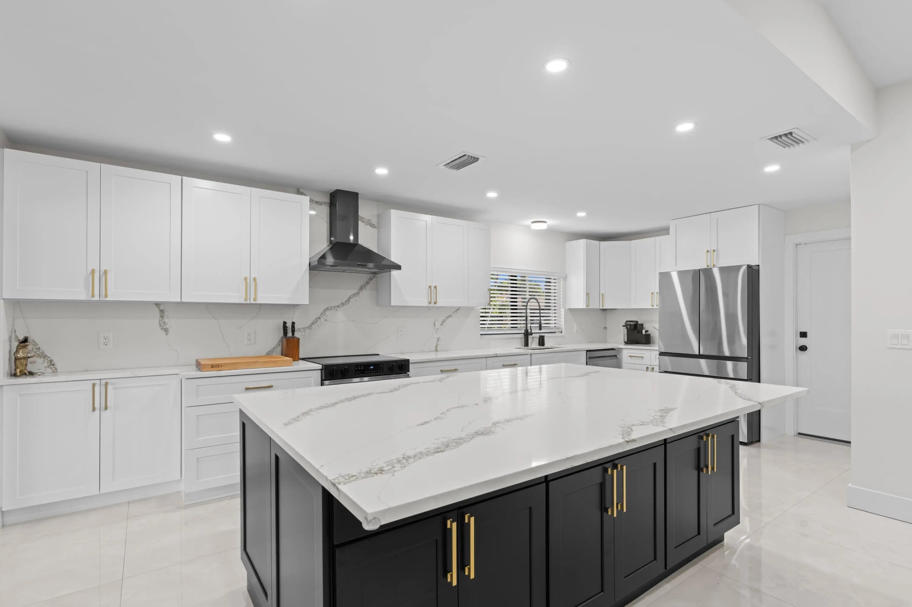 This stunning 2-bedroom, 2.5-bath residence sits on an oversized lot in one of the most centrally located and desirable areas, offering the perfect blend of luxury, comfort, and convenience. Completely renovated from top to bottom, this dream home features a brand new roof, new AC system, new water heater, full impact windows, new washer and dryer, and new flooring throughout the home, ensuring modern efficiency and long lasting peace of mind.Step inside to an open, sun filled layout showcasing high-end finishes and thoughtful design. The beautifully redesigned chef's kitchen is the true centerpiece, featuring elegant quartz countertops, stainless steel appliances, an oversized island perfect for entertaining, and an extra-large walk-in pantry that brings both function and style.