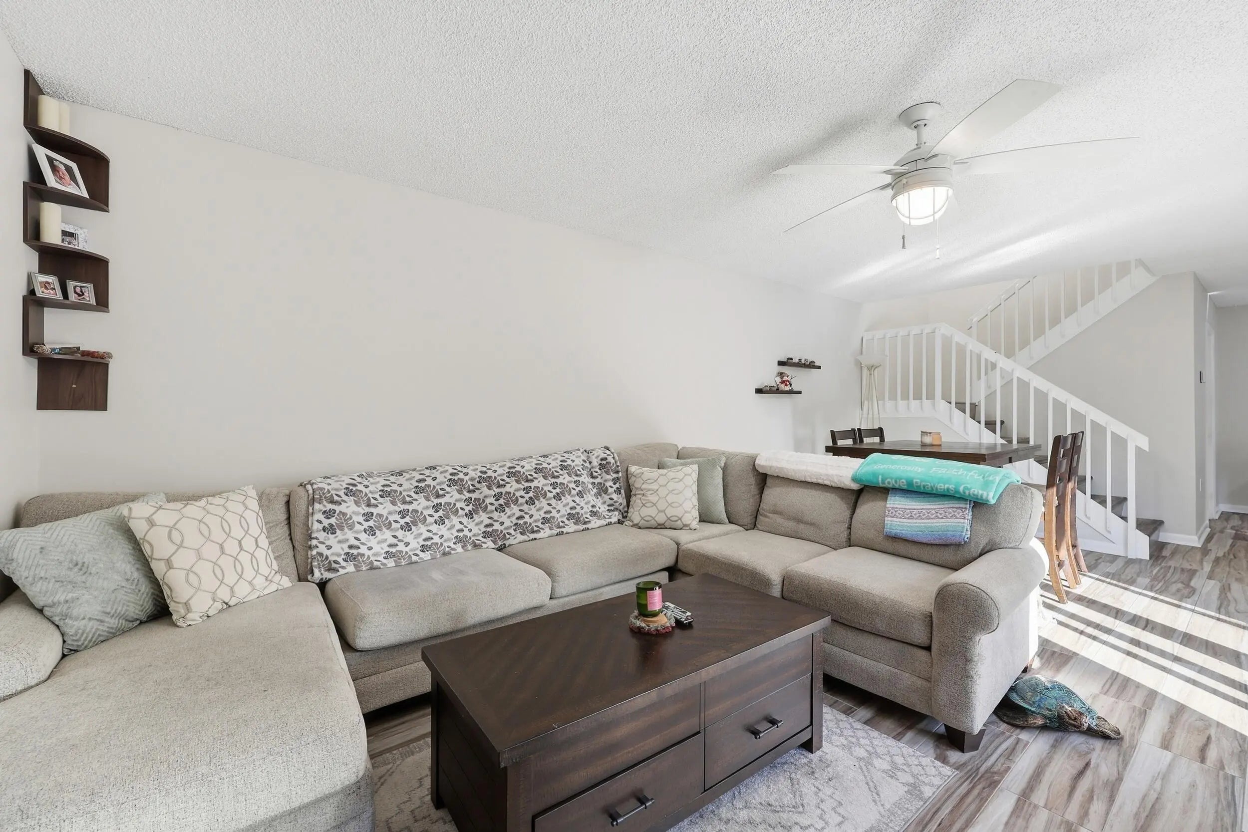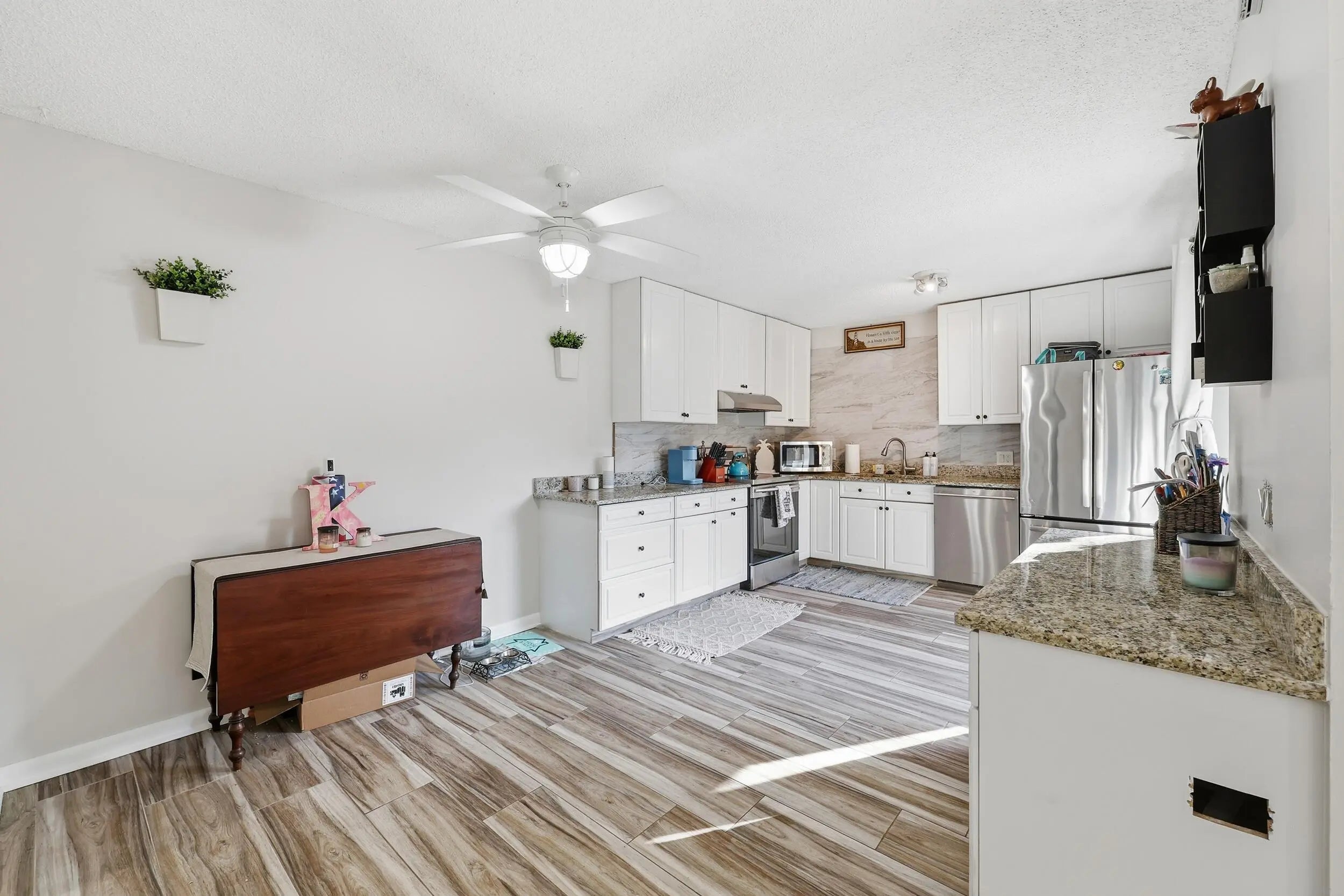 Beautifully updated 2-bedroom, 2.5-bath townhome located in the gated Emerald Lakes community. This move-in-ready home features a bright open floor plan with stylish wood-look tile flooring throughout the main living areas, a modern kitchen with white cabinetry, granite countertops, stainless steel appliances, and designer backsplash. Spacious living and dining areas flow seamlessly to the private fenced patio--perfect for relaxing or entertaining. Upstairs, the primary suite offers a tranquil retreat with ample closet space and a renovated en-suite bath. The second bedroom is generously sized with its own full bath, ideal for guests or a home office. Convenient in-unit laundry and assigned parking complete the package.