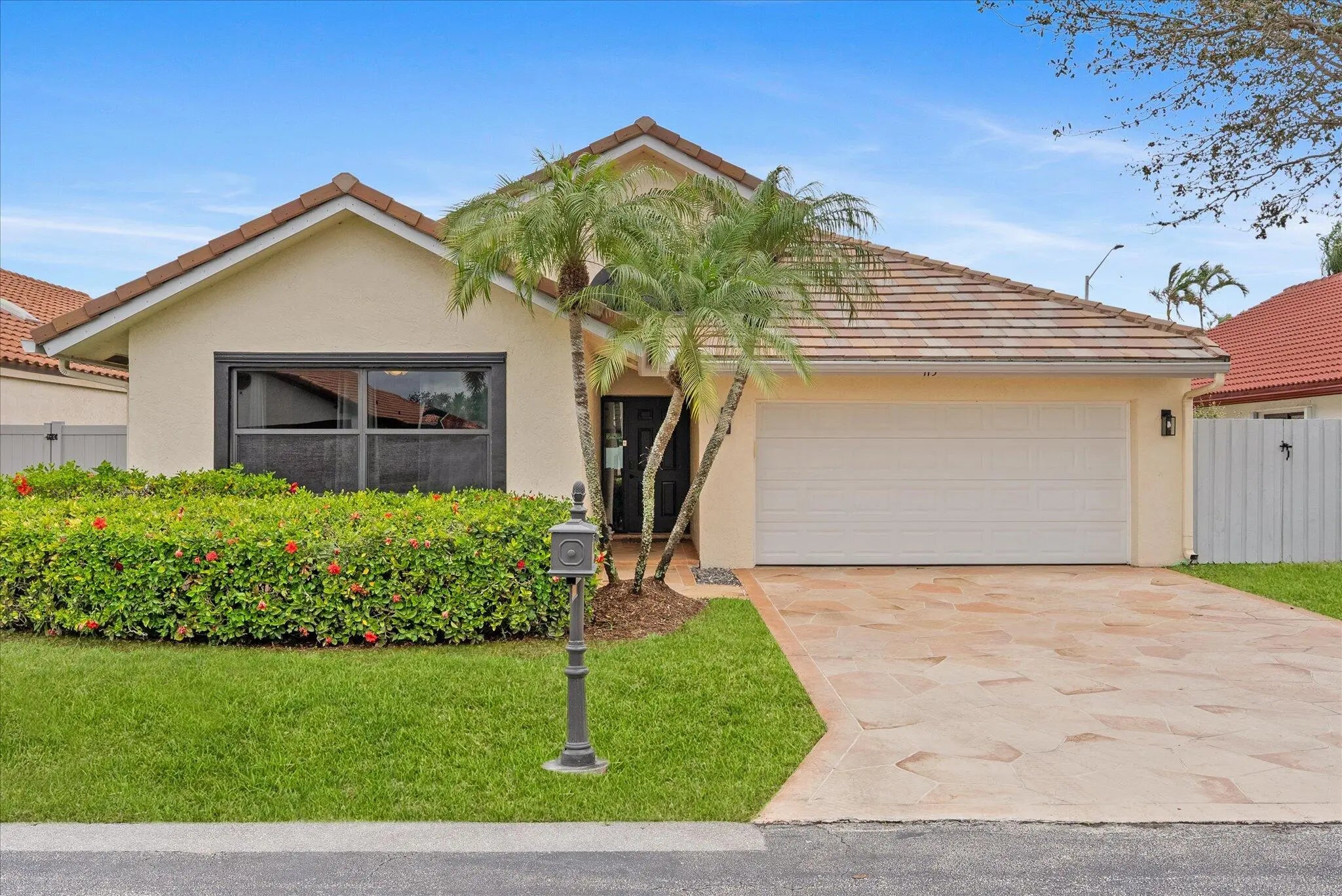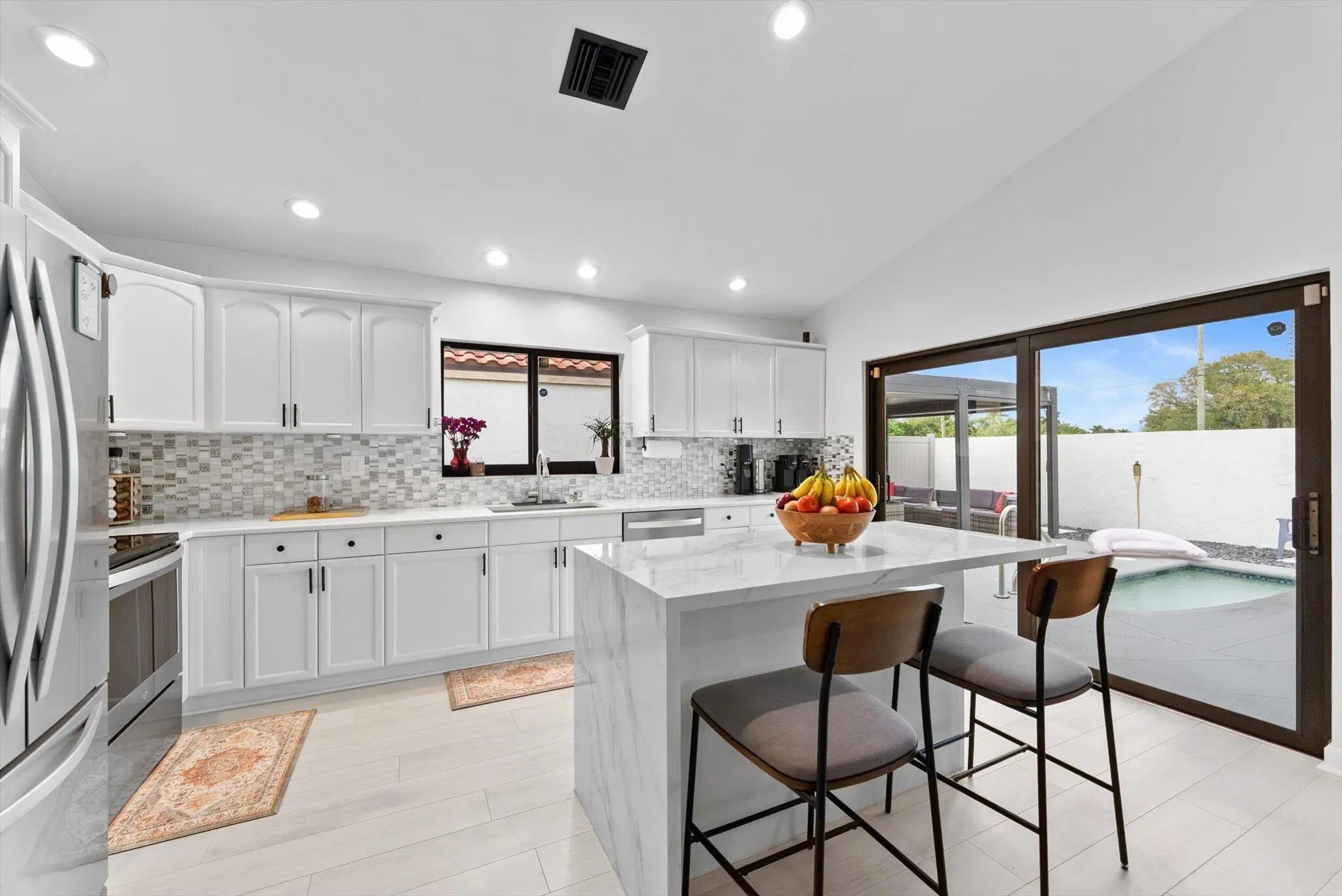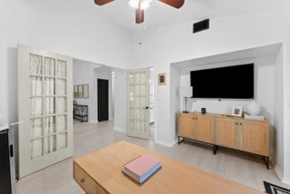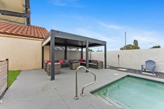 Welcome to this beautifully maintained 3BD | 2BA + Den pool home in the gated Executive Estates of Citrus Glen, Boynton Beach. Designed for effortless living and entertaining, the open great room and dining area overlook a solar-heated saltwater pool with color-changing lighting. The updated kitchen features white cabinetry, quartz countertops, an island, and stainless-steel appliances. Vaulted ceilings, skylights, impact windows and doors, and new flooring enhance the bright interior. Enjoy over 300 sq ft of patio space with a pergola, recently remodeled and freshly painted. Numerous updates include pool equipment, appliances, closets, and interior paint. Community amenities include a clubhouse, gym, and pool, all close to shopping, dining, and beaches.