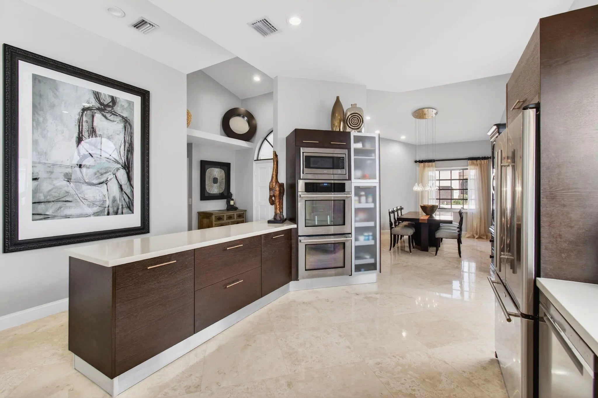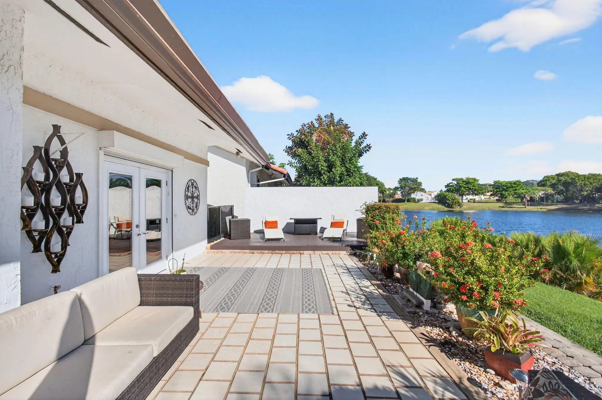 Welcome to 23145 Via Stel in the desirable Boca Pointe community, a beautifully renovated lakefront residence offering 2 bedrooms, 2 bathrooms, plus a den/office. This home features an open floor plan filled with natural light and tranquil water view. Elegant travertine marble floors flow through the main living areas, while bamboo flooring adds warmth to the bedrooms. and den/office. The upgraded kitchen is designed for both style and function, showcasing Silestone quartz countertops, a double oven, and ample cabinetry. The spacious primary suite offers a spa-like retreat with an upgraded master bathroom, featuring a seamless glass shower and jacuzzi tub. Additional highlights include hurricane electric shutters, a newer water heater, AC (2017), and roof (2012).