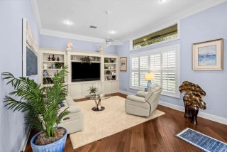 A true golfer's paradise, perfectly positioned on the 5th hole of the Ryder Course in prestigious PGA Village. Located in the desirable Reserve Plantation, this timeless residence embodies classic elegance with soaring ceilings, two spacious primary suites, and an office featuring rich custom wood built-ins with desk, cabinetry, and bookshelves. Meticulously cared for, the home offers a newer pool (2023) with cabana bath, creating an exceptional indoor-outdoor lifestyle. Get lost on the expansive pool deck with generous seating areas overlooking the manicured fairway. The kitchen is equipped with a Bosch wall oven, built-in microwave, and range. Additional upgrades include a brand-new A/C system, along with a roof and gutters replaced in 2020.