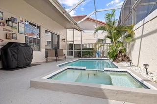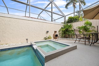 Welcome home to rarely available largest townhome in PGA Nationals Monterey Pointe in Eagleton. This fully furnished spacious 4/3.5 townhome features 2 PRIMARY BEDROOMS, 1 downstairs and 1 upstairs, private pool with screened in patio, EV charger for your electric car and a manned gate within PGA National. Steps away from the community pool and clubhouse.All MAJOR items of house are new or newer. Roof 2020, All appliances are 2020 except washer and gas dryer are 2024. Air conditioner is 2 years old and water hearer 2022. No assessments within HOA.All information pertaining to the property is deemed reliable, but not guaranteed. Information to be verified by the Buyer. Be advised that cameras may exist recording audio and video inside/outside the property, such as ring doorbells. Photos are digitally enhanced and could be altered, please verify.