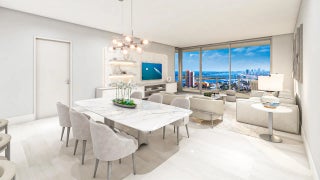 Step into refined waterfront living this newly completed, south-facing residence at Nautilus 220. Designed with soaring 10-foot ceilings and a light-filled open layout, home features Miele appliances throughout, upgraded quartz waterfall island, & an integrated beverage cooler. Floor-to-ceiling glass opens to a private terrace, where southern exposure captures serene marina and water views bathed in natural light. Residents enjoy exceptional amenities including a resort-style pool, two spas, fire pit lounges, rooftop lap pool, state-of-the-art fitness center, yoga and spin studios, putting green, bowling alley, sauna & steam rooms, sports simulator, theater room, private beach club access, on-site waterfront dining at SeaHawk Prime by David Burke. Nautilus 220 - Truly elevated lifestyle.