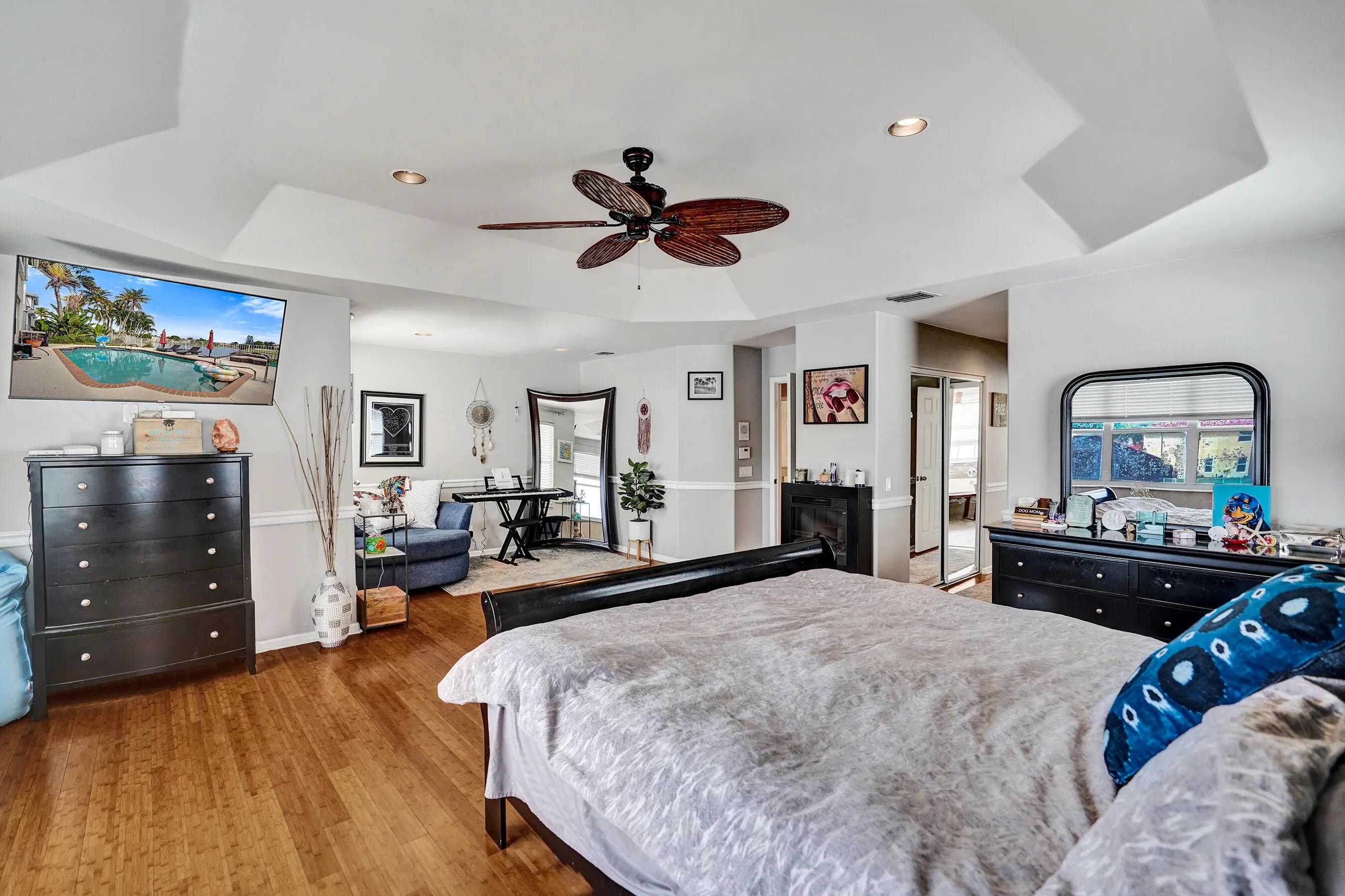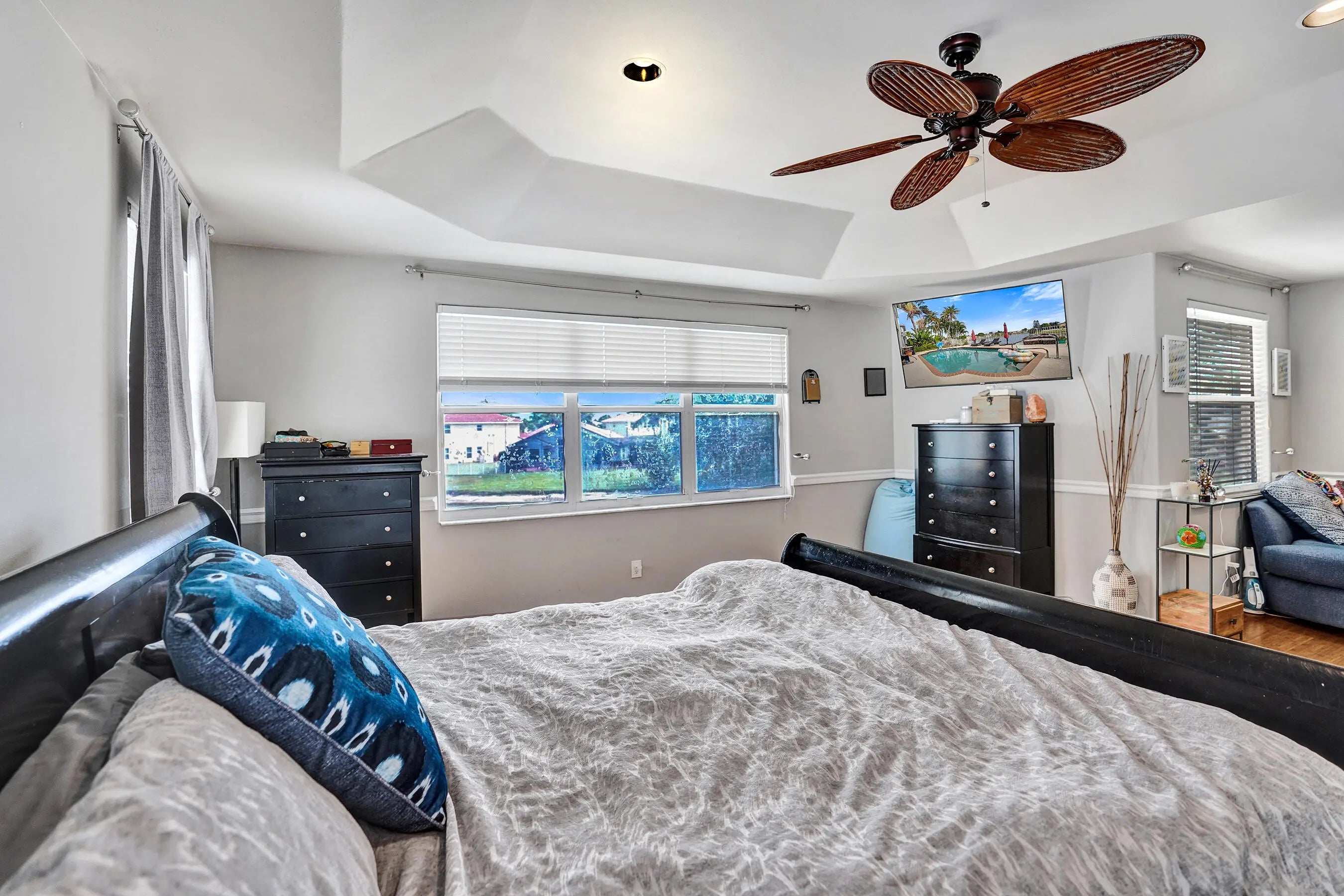 Spacious lakefront pool home offering one of the largest floor plan configurations in gated Nautica Sound. This 5-bedroom, 3-bath home includes a sunroom and a 3-car garage, delivering real flexibility, function, and value in a community known for well-designed, family-friendly layouts. One bedroom on the main level and the rest upstairs, creates a separation of space that supports multi-generational living. Enjoy a tranquil lake view. The double-latched S-tile roof was replaced in 2016. Newer A/C. Nautica Sound boasts five scenic lakes, resort-style amenities, lush tropical landscaping, plenty of green space, 24-hour security, and low HOA fees, all quietly tucked in the heart of Boynton Beach, central and convenient.