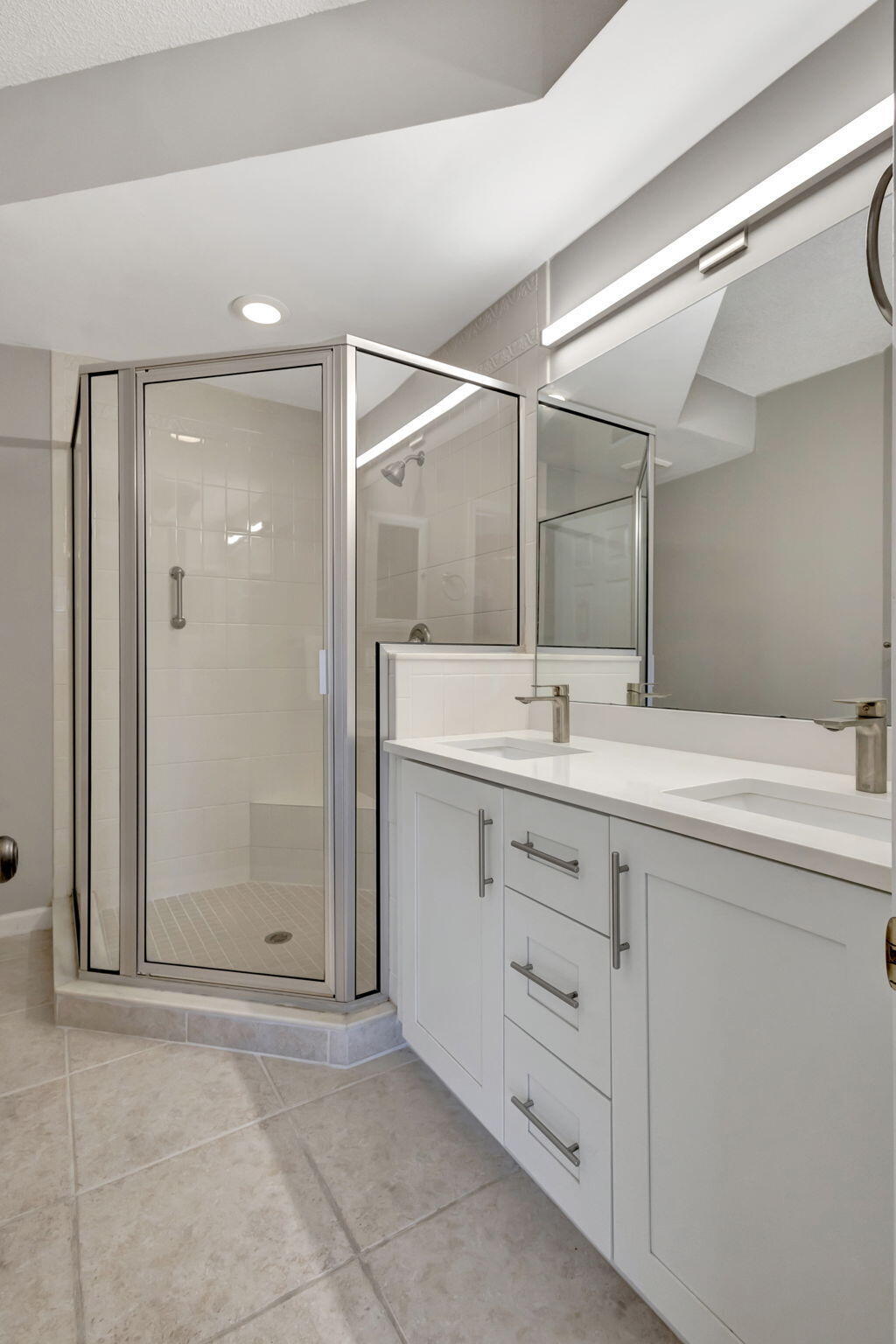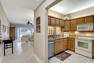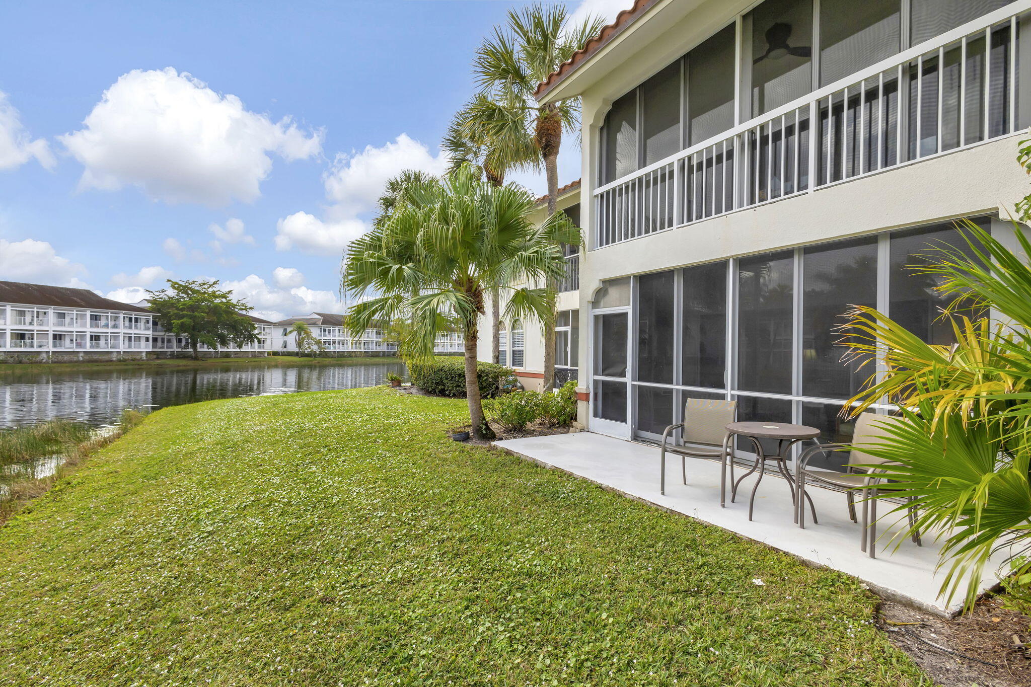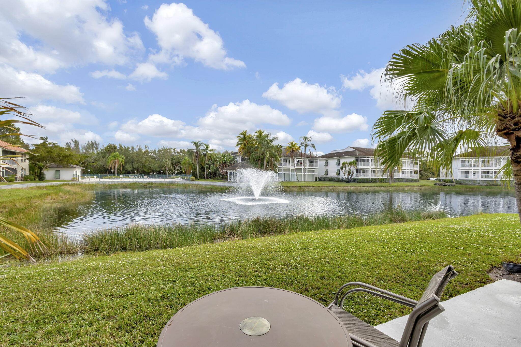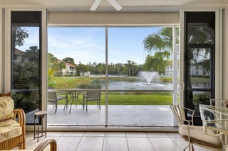 Unique 2 Bedroom 2 bath lakefront condo with hurricane impact windows all around including the porch creating an extra room! Ceramic tile throughout. Granite kitchen with newer dishwasher and refrigerator. Bathrooms include new sinks. New shower door in second bath. Master tub replaced with shower. Indoor spacious laundry room with new washer and dryer. This lovely condo can be sold turnkey. Community pool just steps away. Enjoy the resort style living in PGA National. Recently remodeled hotel and restuarants are at your fingertips and memberships with wonderful ammenities are available.