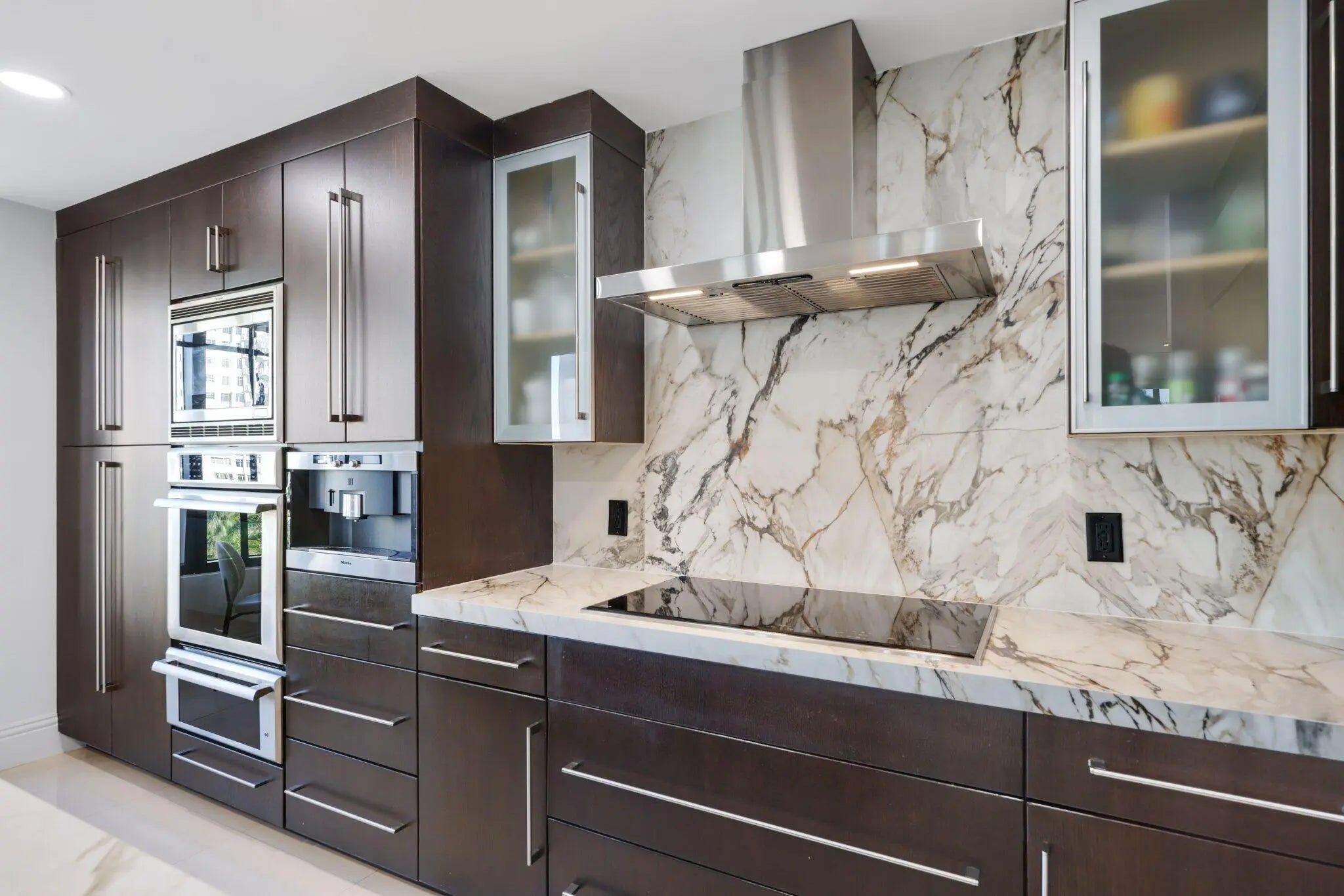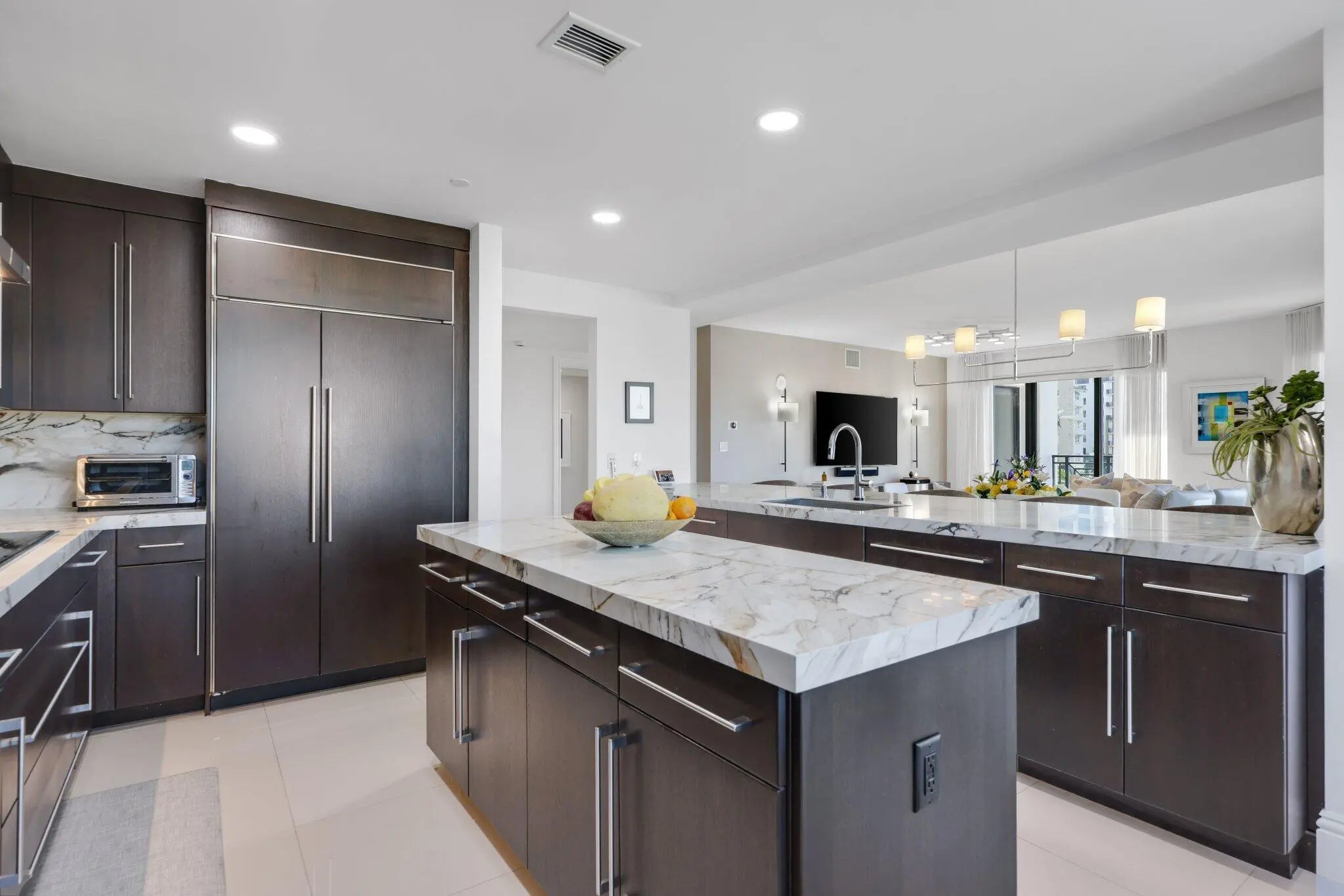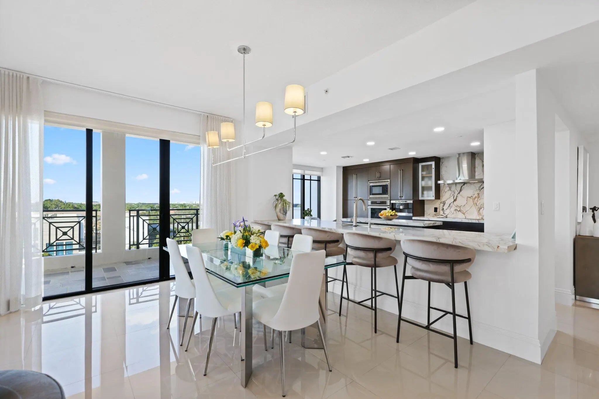 DOWNTOWN MODERN ELEGANCE! Exceptional 3Bed/3.5Ba corner residence offers 2,490 sf of open and airy living space in the heart of downtown Boca. A newly remodeled kitchen features rich espresso wood cabinetry, a workstation sink, and thick mitered-edge white porcelain countertops and backsplash accented by sweeping veins of brown, tan, and beige. Premium appliances include a Wolf induction cooktop, BEST chimney range hood, Miele built-in Nespresso system, and Sub-Zero refrigerator. A chic powder room makes a statement with a stunning new marble & brass vanity, a custom tiled wall with beautiful modern wall sconces mixed with elegantly appointed wallpaper. Enjoy add'l outdoor living w/ 3 covered spacious balconies offering engaging city views! Includes 2 Assigned Pkg. + 1 Storage. See more