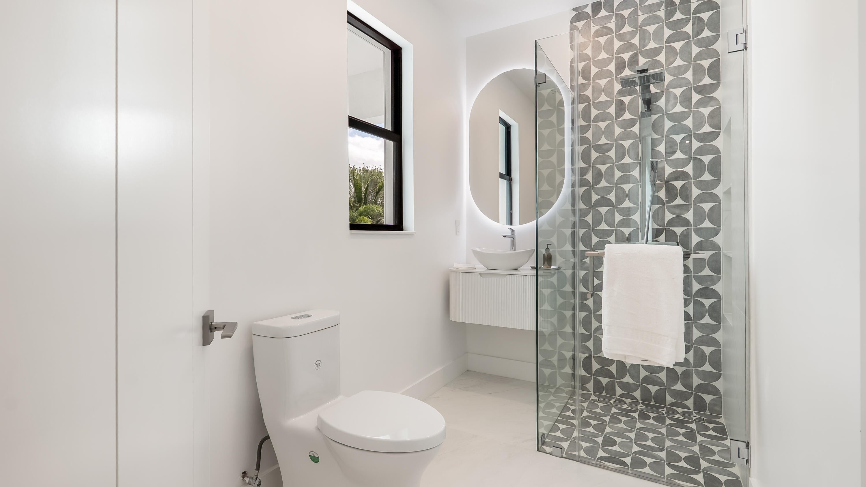 A true architectural masterpiece located within the prestigious Boca Bridges community; this residence has undergone a complete redesign and rebuild with no builder grade materials remaining. Essentially a brand new custom home, the transformation was just completed in December 2025 and reflects an uncompromising commitment to luxury, craftsmanship, and design. Offering an exceptional two story layout, the home includes six bedrooms, seven full bathrooms, two half bathrooms, a private office, a spacious loft, a custom movie theater with Martin Logan surround sound, and a three car garage. The home is introduced by dramatic 48 x 48 Spanish porcelain flooring throughout the main living areas, paired with rich custom Reserve hardwood floors in the bedrooms and along the staircase.Designer lighting and refined finishes are showcased throughout, creating a sophisticated yet warm atmosphere. The custom kitchen is a statement of both form and function, featuring leathered Bianco Rhino quartzite countertops, custom cabinetry, and a professional appliance suite by Wolf, Sub Zero, and Viking, ideal for everyday living and elevated entertaining. The primary suite is a private retreat, highlighted by a spa inspired bathroom with a luxurious wet room featuring separate his and her showers, a designer soaking tub, Hansgrohe fixtures, and smart EPLO electric toilets. Every bathroom in the home reflects the same level of detail and craftsmanship, finished with imported tile from Spain and premium materials throughout. The backyard is a true resort style oasis, perfectly positioned on an extremely private south facing lot with no rear neighbors. Designed for entertaining and relaxation, the outdoor space features a fully upgraded pool, an expanded covered summer kitchen with grill and pizza oven, outdoor fireplace, putting green, new turf, lush landscaping, and a full exterior lighting package. Whether hosting gatherings or enjoying quiet evenings, this backyard delivers the ultimate Florida lifestyle. This extraordinary residence inside Boca Bridges is more than a home. It is a work of art that must be experienced in person to be truly appreciated.