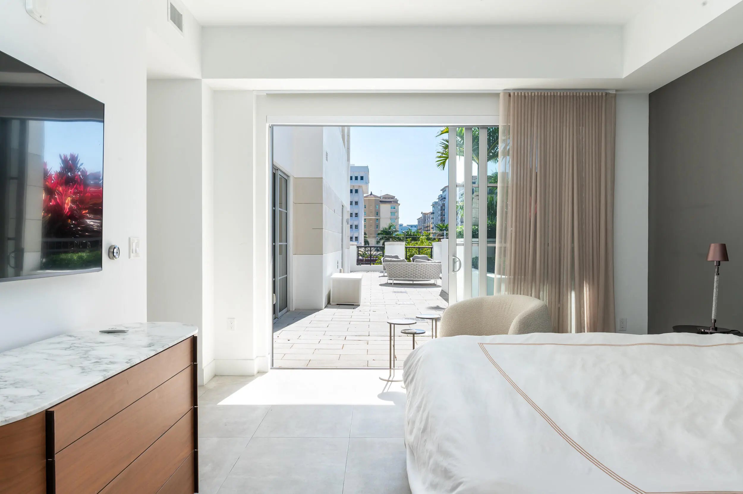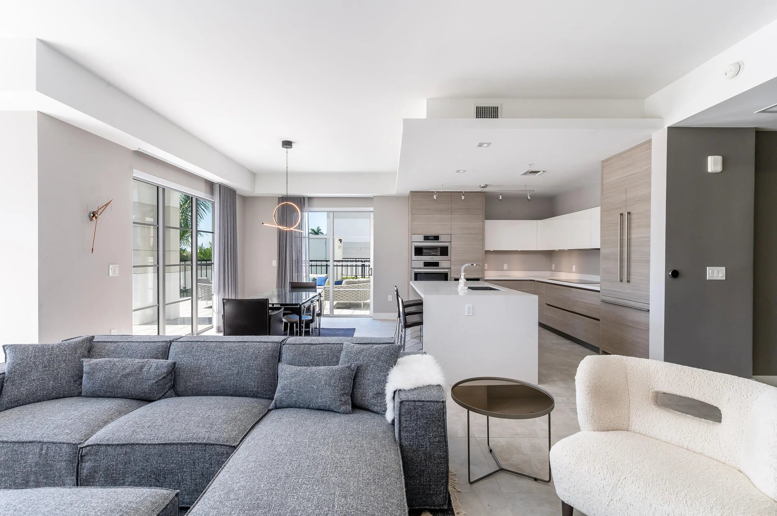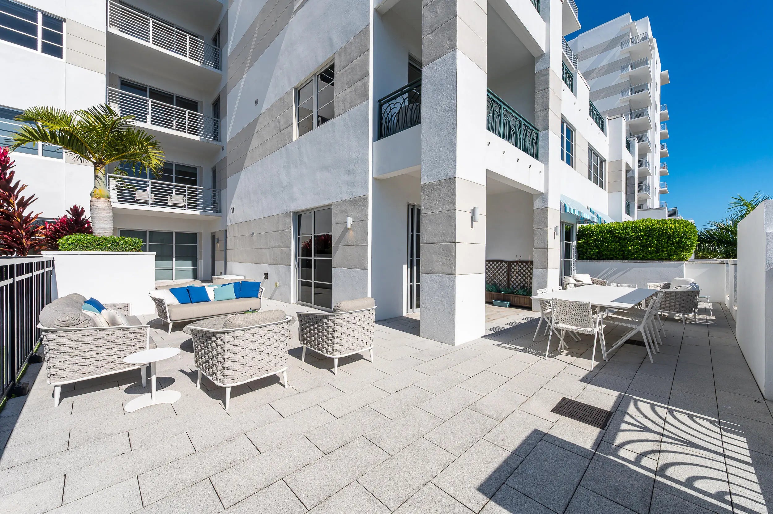 The most impressive indoor/outdoor living experience in Downtown Boca Raton. This spacious and highly upgraded furnished 2 bedroom unit with a den/media room provides the ultimate living experience. Enjoy great natural light in this open concept South facing home with 10 foot ceiling heights. The upgraded kitchen features Italian cabinetry with induction cooktop and steam oven. The primary bedroom has an abundance of storage with spa like bathroom with separate soaking tub and shower. The main living area great room provides designer-ready built-ins, beautiful dining area perfect for entertaining. Additional upgrades include motorized shades, custom built-out closet, large laundry room, 2 assigned parking spaces and 2 additional storage units. All this just 1 block from Mizner Park!