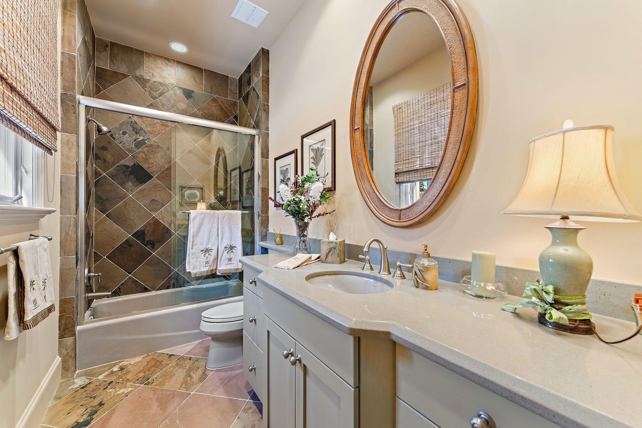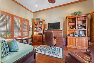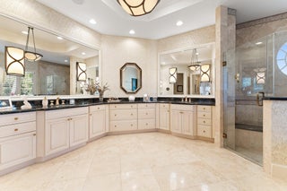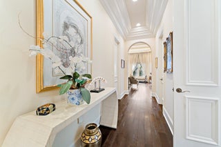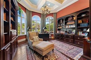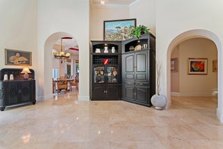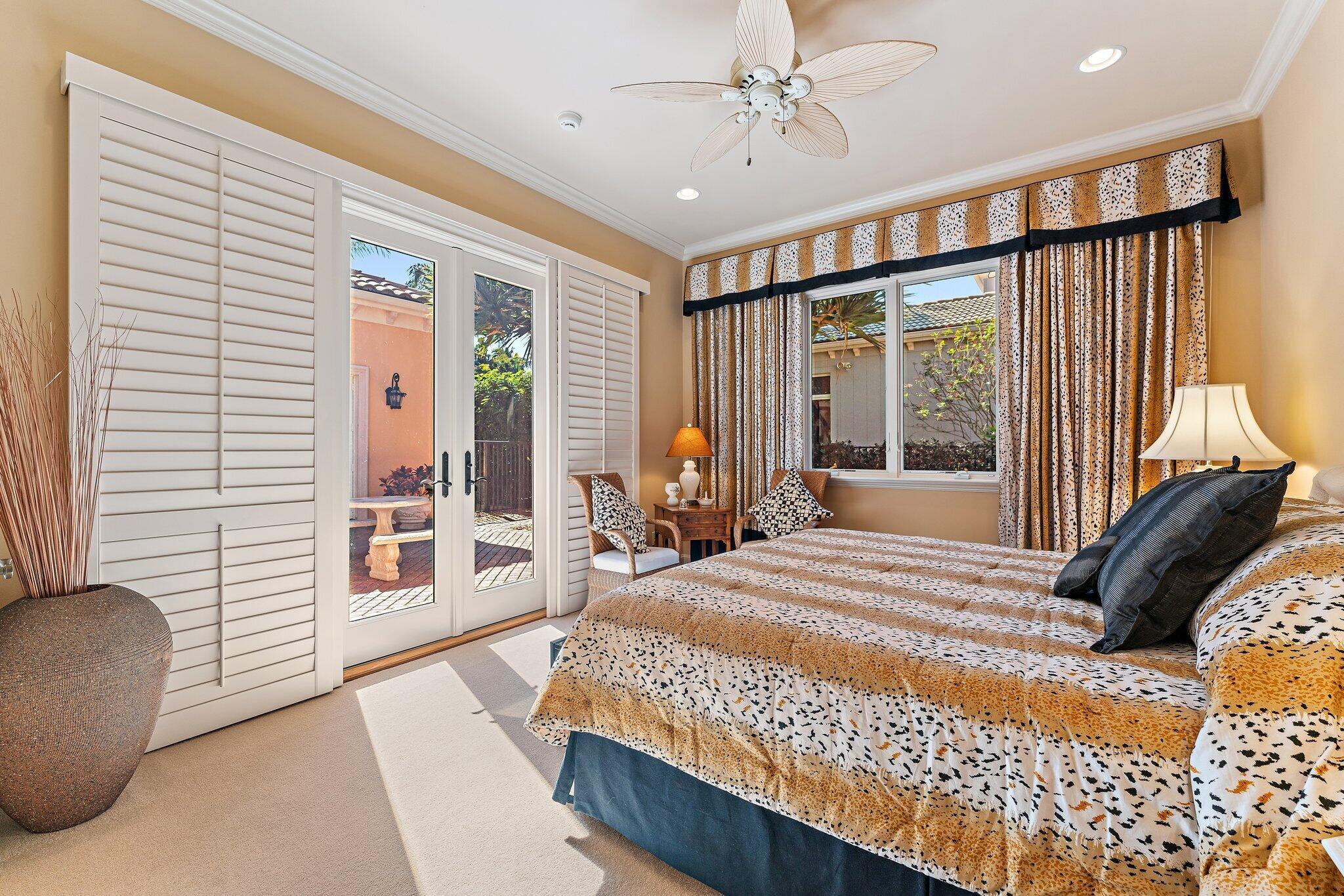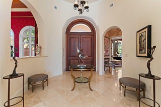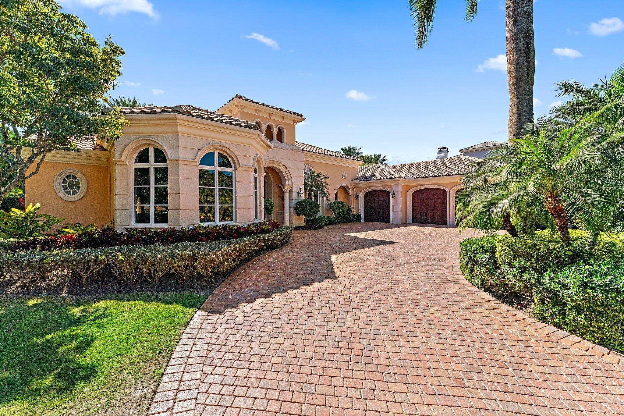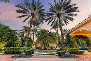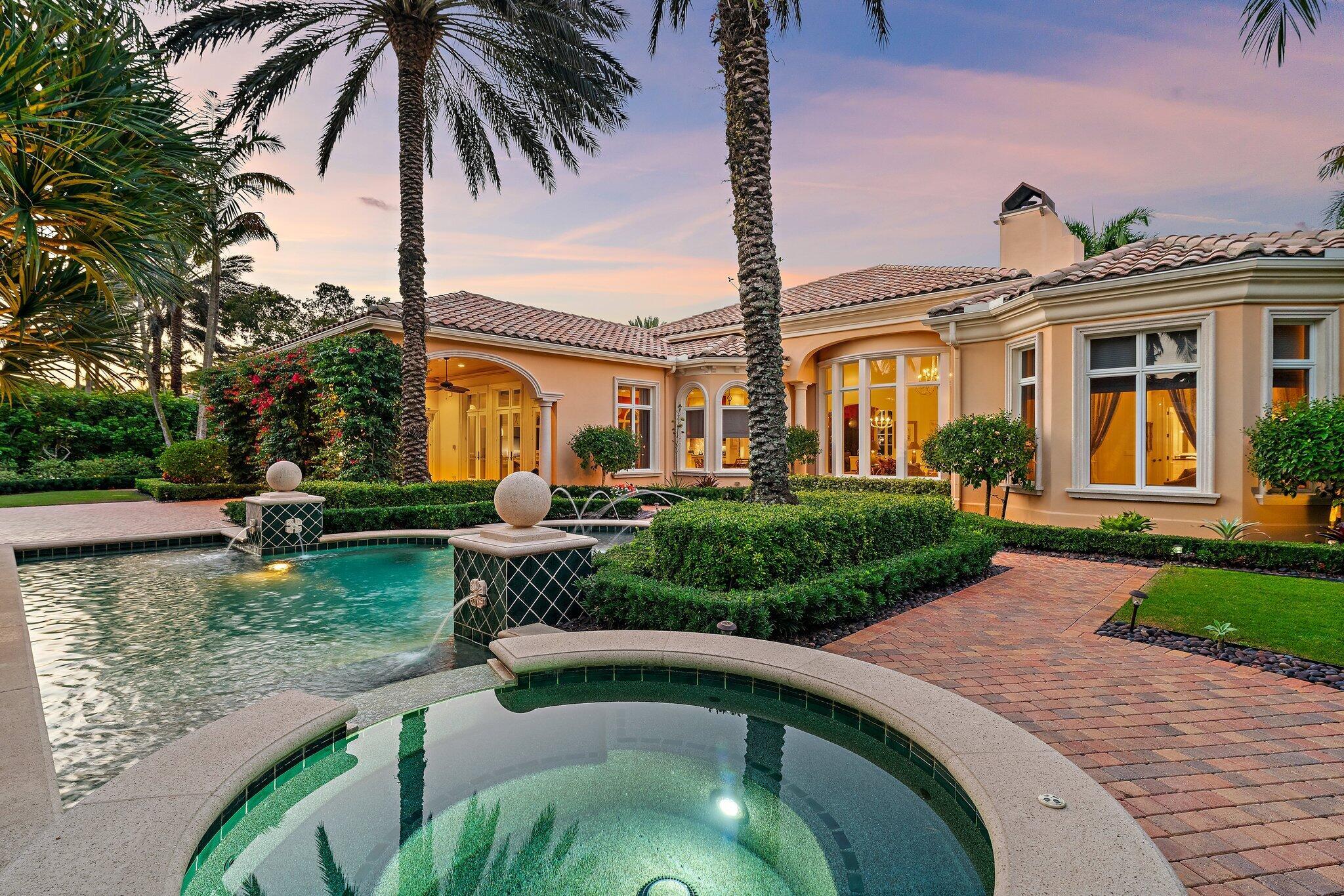 Positioned on an expansive, meticulously landscaped nearly half-acre lot in the Grand Estates section of Old Palm, 11756 Elina Court delivers exceptional privacy, elegance, and resort-style outdoor living. Surrounded by mature palms, hibiscus trees, and lush tropical greenery, this residence offers a breathtaking backyard oasis that feels like a private luxury retreat. One of the rare homes in the community where club membership is optional and not required. With almost 5,000 sq. ft. of refined living space, this 4-bedroom, 4.5-bath home plus library features a tri-split floor plan designed for both grand entertaining and serene everyday living. A graceful double-door entry opens to soaring ceilings, elegant architectural details, and a sprawling layout filled with natural light.At the heart of the home is a true chef's kitchen, complete with an oversized island, new Wolf double ovens, gas range, prep sink, long breakfast bar, and an integrated office nook. A casual dining area overlooks the lush backyard, offering the perfect setting for morning coffee with a view. The super-spacious primary suite is positioned to capture serene pool views and features dual walk-in closets and a luxurious spa-style bath. Additional interior highlights include a sophisticated library with stunning bay windows, a grand formal entry, and a living room anchored by a beautiful statement fireplace, creating a warm and inviting centerpiece, with a seamless flow between the living spaces. The backyard is a showpiece, an extraordinary outdoor sanctuary featuring a resort-style pool with spa, waterfalls, and upgraded digital lighting and controls, plus a brand-new pool heater. Expansive lounging and dining areas sit among meticulously designed landscaping for maximum privacy and beauty. A beautifully designed private side courtyard adds a second outdoor living area, with direct access from two guest suites and the family room, ideal for quiet relaxation or a secluded spot to unwind. This home is equipped with a full-house generator, integrated Sonos sound system, and a premium Sony television that conveys. The garage has been elevated with epoxy flooring, custom built-in storage cabinetry, and an air-conditioned storage room for all your extras. Newly re-stained garage doors add to the home's impeccable curb appeal. This stunning property stands as a beautifully maintained estate, showcasing exceptional care and timeless details in an exclusive gated and secure setting within Old Palm Golf Club.