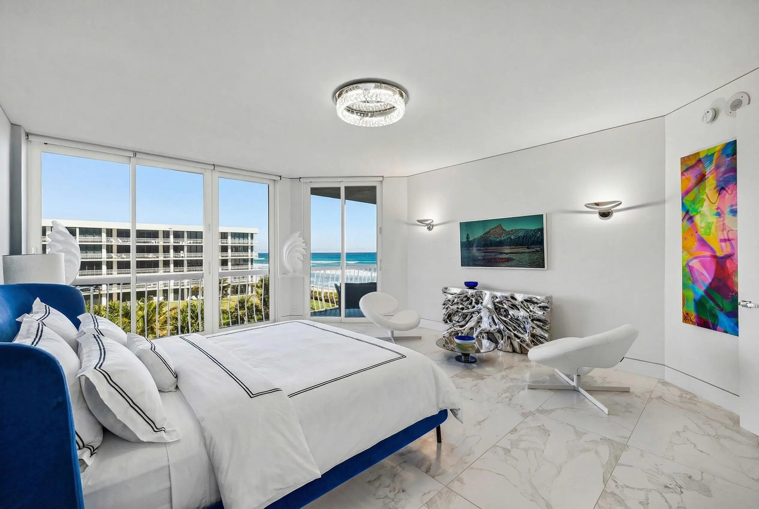 Experience a residence where the horizon is your primary decor. This meticulously reimagined ocean-to-intracoastal residence at the 2100 Building at Sloan's Curve transcends the standard luxury renovation. Curated by the renowned firm Ogawa DePadron, every inch of this 2-bedroom, 2.5-bath sanctuary reflects a commitment to flawless contemporary beauty and artisanal workmanship.The transition between the lush tropical surroundings and the interior is seamless, thanks to custom Windoor storm doors that vanish to merge the panoramic views with your living space. At the heart of the home, a custom Snaidero kitchen serves as a culinary stage, featuring a full suite of Miele finest appliances and a 170-bottle wine gallery. The primary suite is a masterclass in tranquility, wrapped in