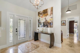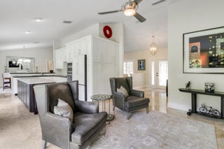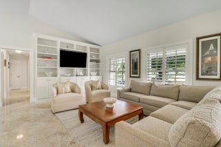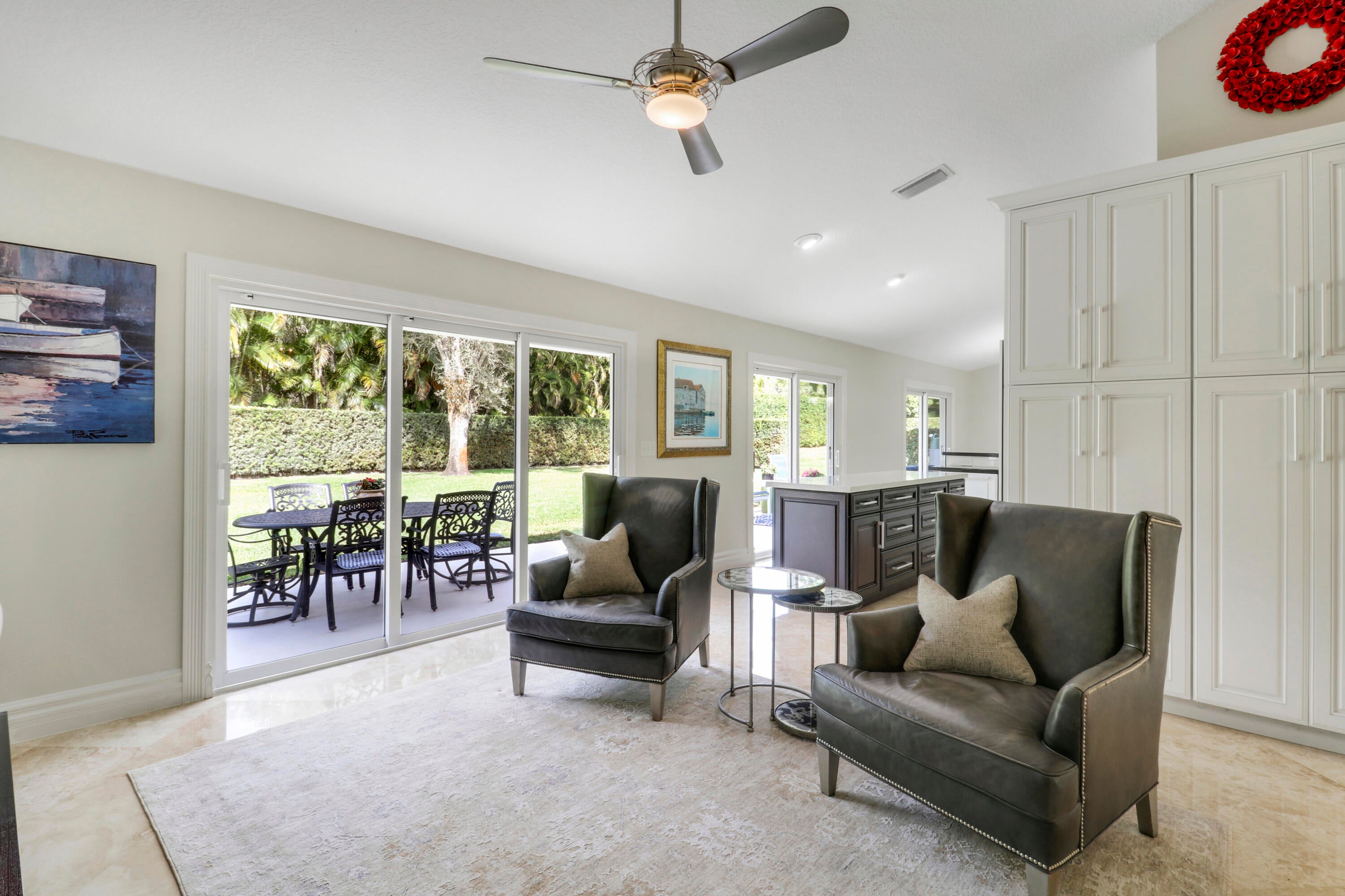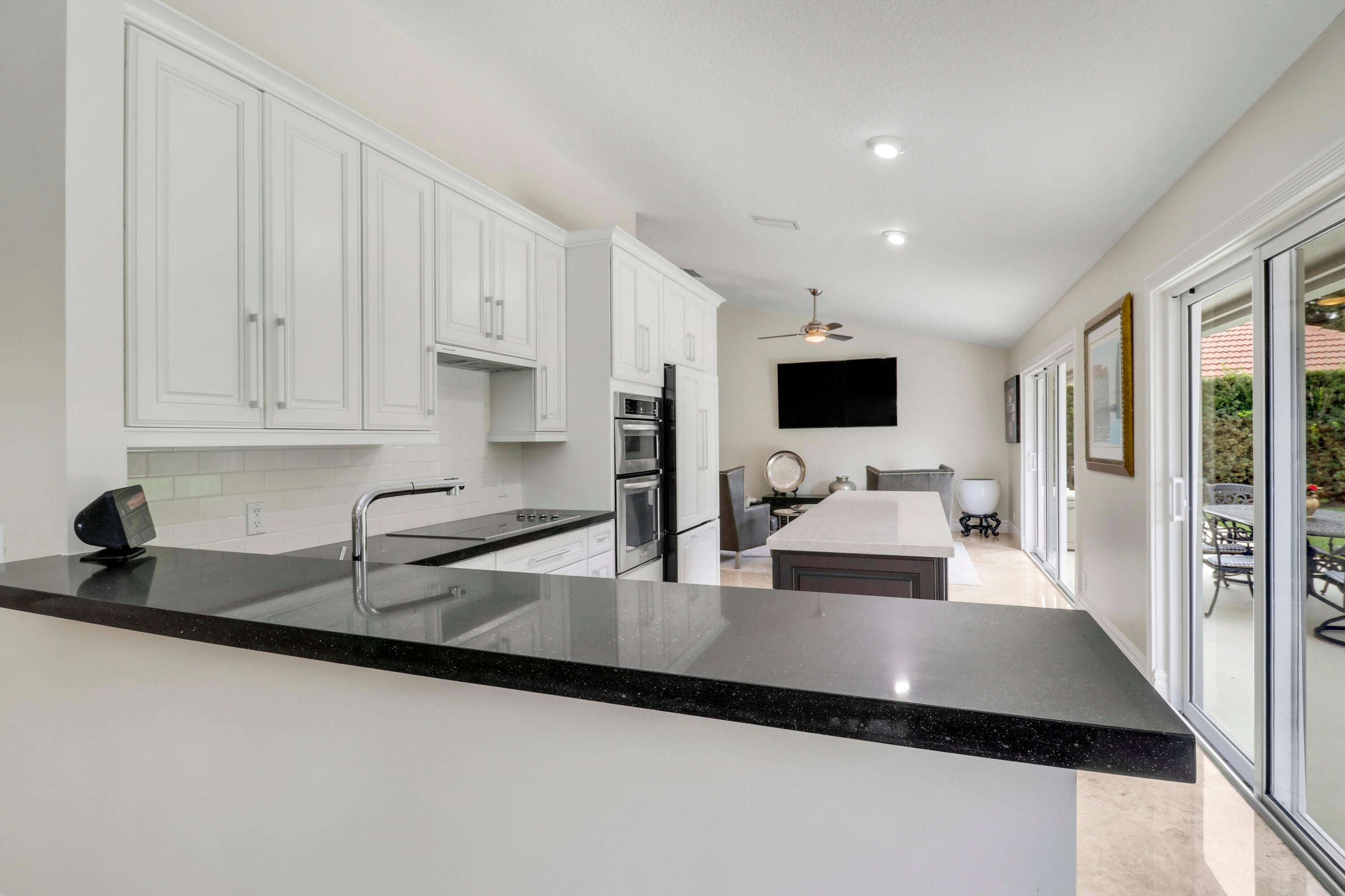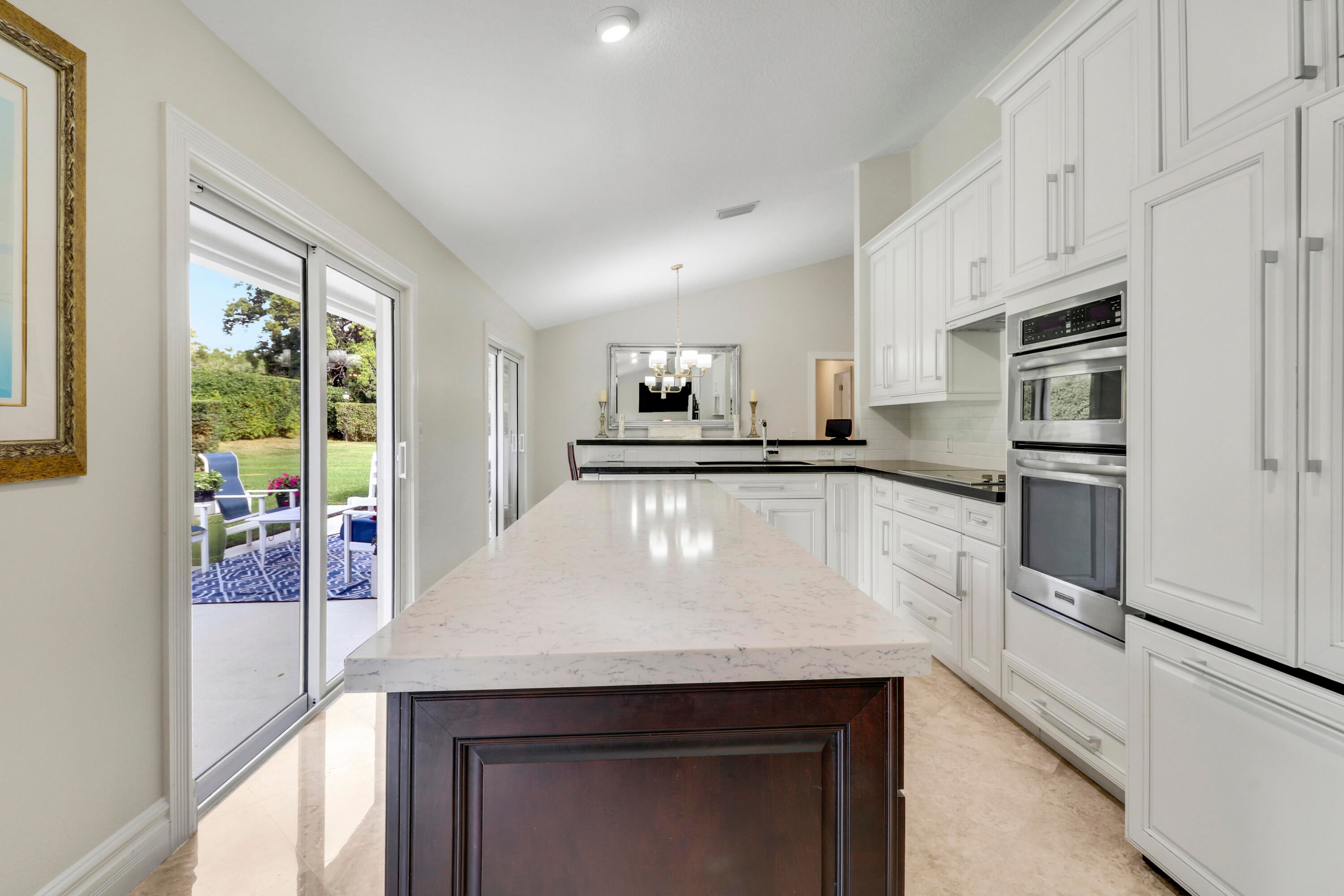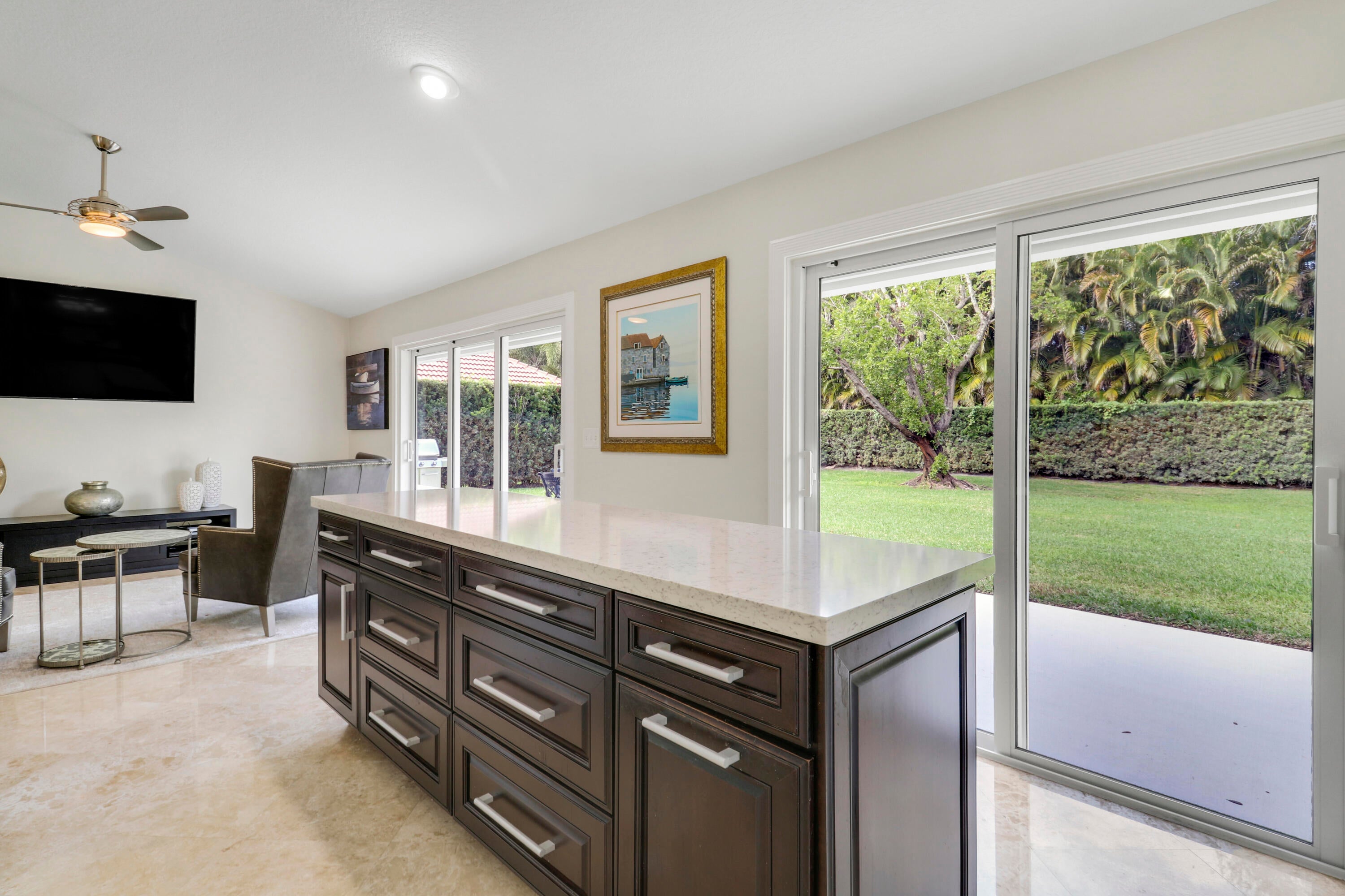 Thoughtfully renovated and impeccably maintained, this elegant PGA National one-level residence offers refined living on an oversized lot with rare expansion potential . A unique A1/4-acre open space to the east provides a serene backdrop .Inside, natural light pours through oversized, new (2026) impact glass windows and sliders, blending beauty with security. The chef-inspired kitchen is a statement of craftsmanship, featuring custom white wood cabinetry with crown molding, an oversized island, quartz countertops & tailored aluminum hardware.Travertine floors anchor the home with timeless elegance, while custom-built wood bookcases with deep storage add both function and architectural interest. Plantation shutters throughout and upgraded lighting complete the sophisticated aestheThe refrigerator with custom panels, washer and dryer, and an additional refrigerator/freezer are included, making this home truly move-in ready.
