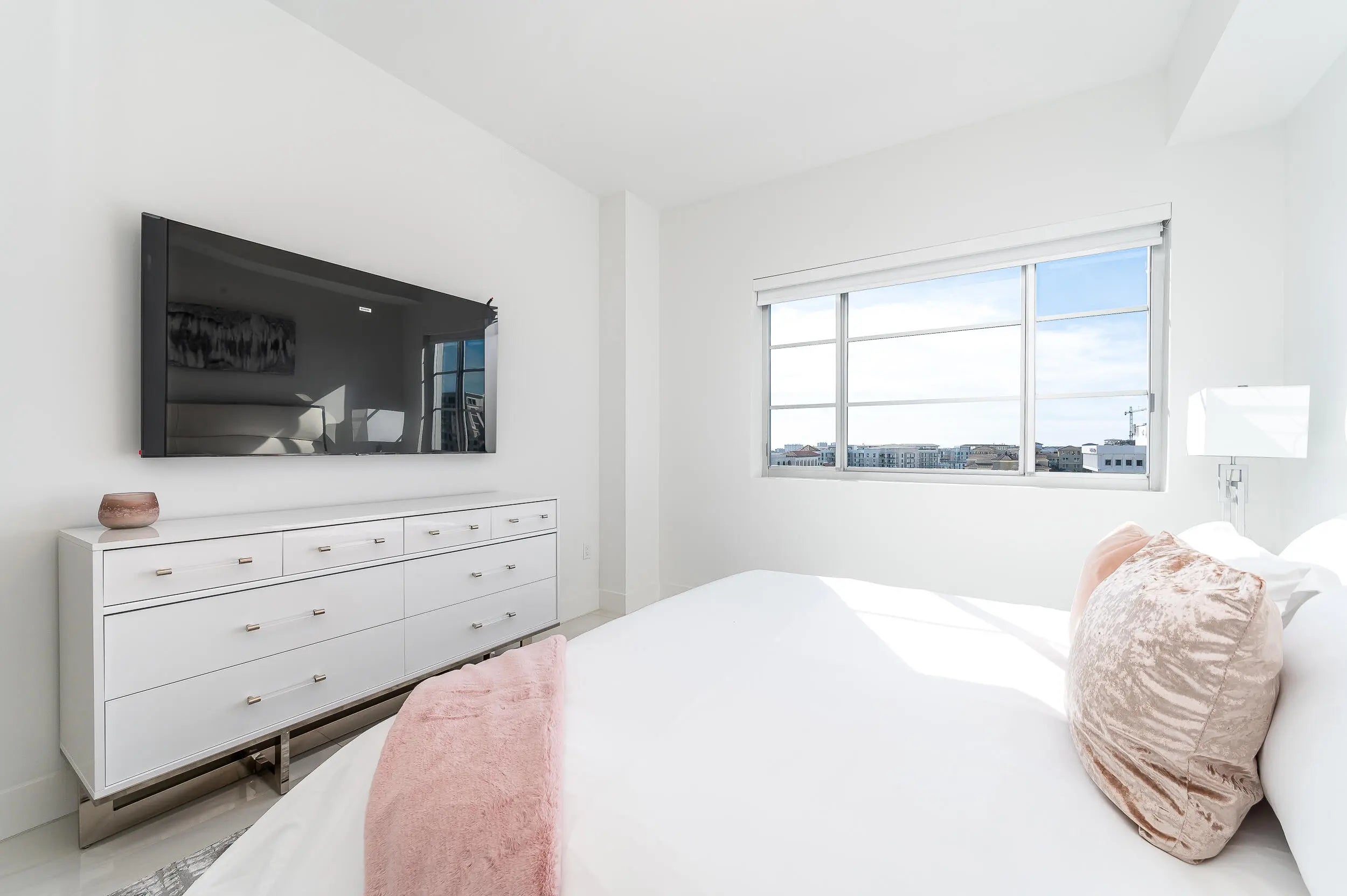 FULLY FURNISHED and TURNKEY. High Floor South East Corner 2-Bedroom Rental in Tower 155 with Stunning Ocean Views! This Fully Furnished beautifully appointed residence has roughly 2,000 total square feet with fantastic natural light and beautiful views. Great open concept floor plan with upgrades throughout. Italian porcelain tile floors, 10-foot ceilings, Chef's kitchen with handmade Italian cabinetry, Quartz counters, and top-of-the-line Bosch appliances with double wall oven, center island and custom waterfall feature. Spacious master suite with walk-in closet and luxurious bathroom featuring a dual sink floating vanity and high-end fixtures. Walk in laundry room with a lot of storage. Built-out closets and motorized shades.