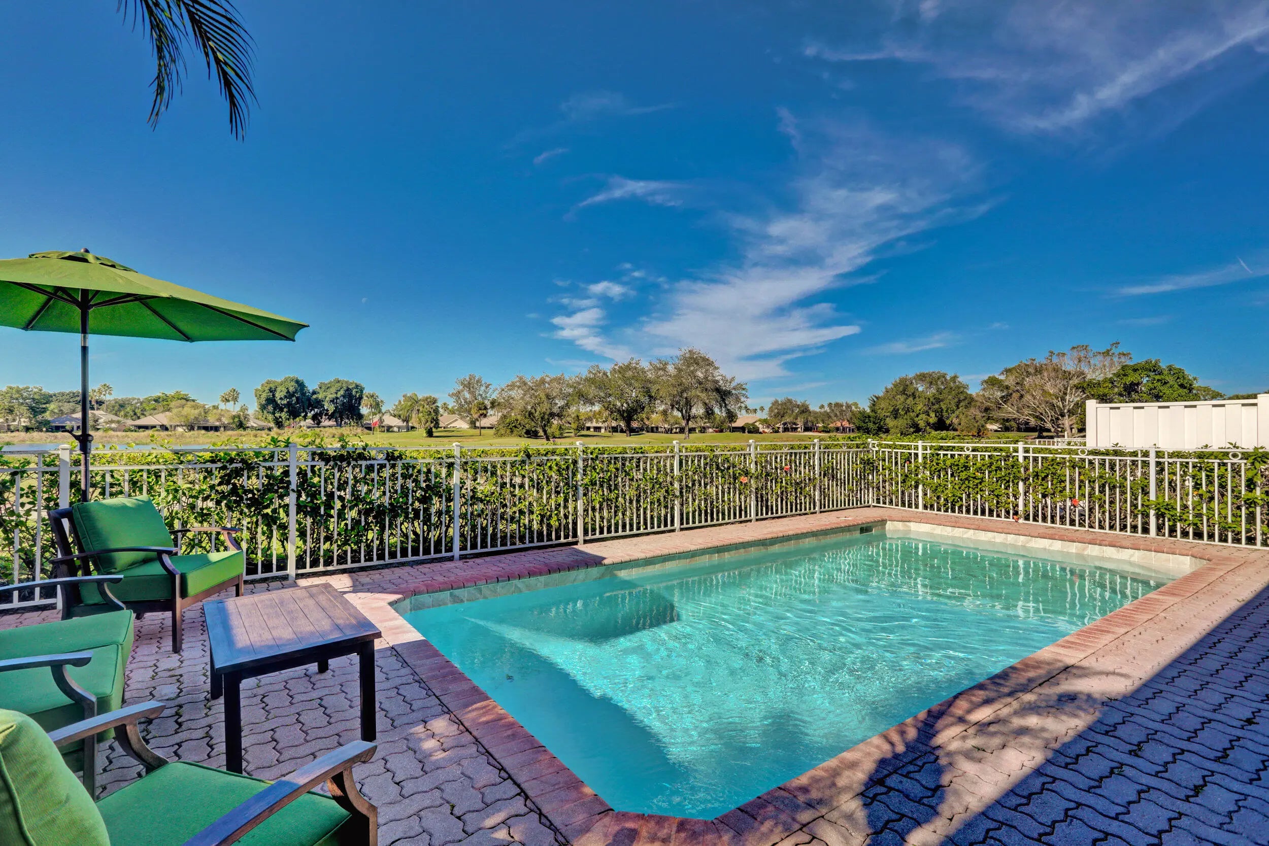 Strategically located in prestigious PGA National Resort, this spectacular one-story, 2,200 sq. ft. home offers luxurious, effortless living. Designed for comfort and elegance, the residence features three bedrooms and two full bathrooms, including a spacious owner's suite with two custom walk-in closets, ensuite bath, an at-grade walk-in shower, and a private commode.Step directly from the primary suite into a private heated outdoor spa, complete with all new plumbing equipment and new spa heater--your own serene retreat. Soaring 12-foot ceilings welcome you through the foyer and extend throughout the main living areas, enhancing the home's open and airy feel.
