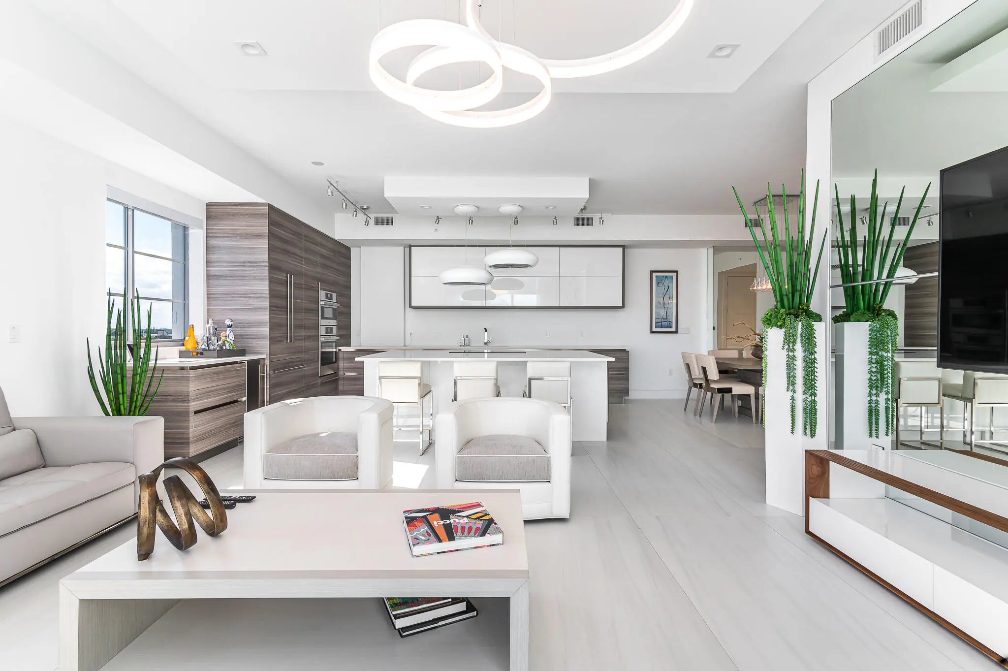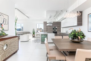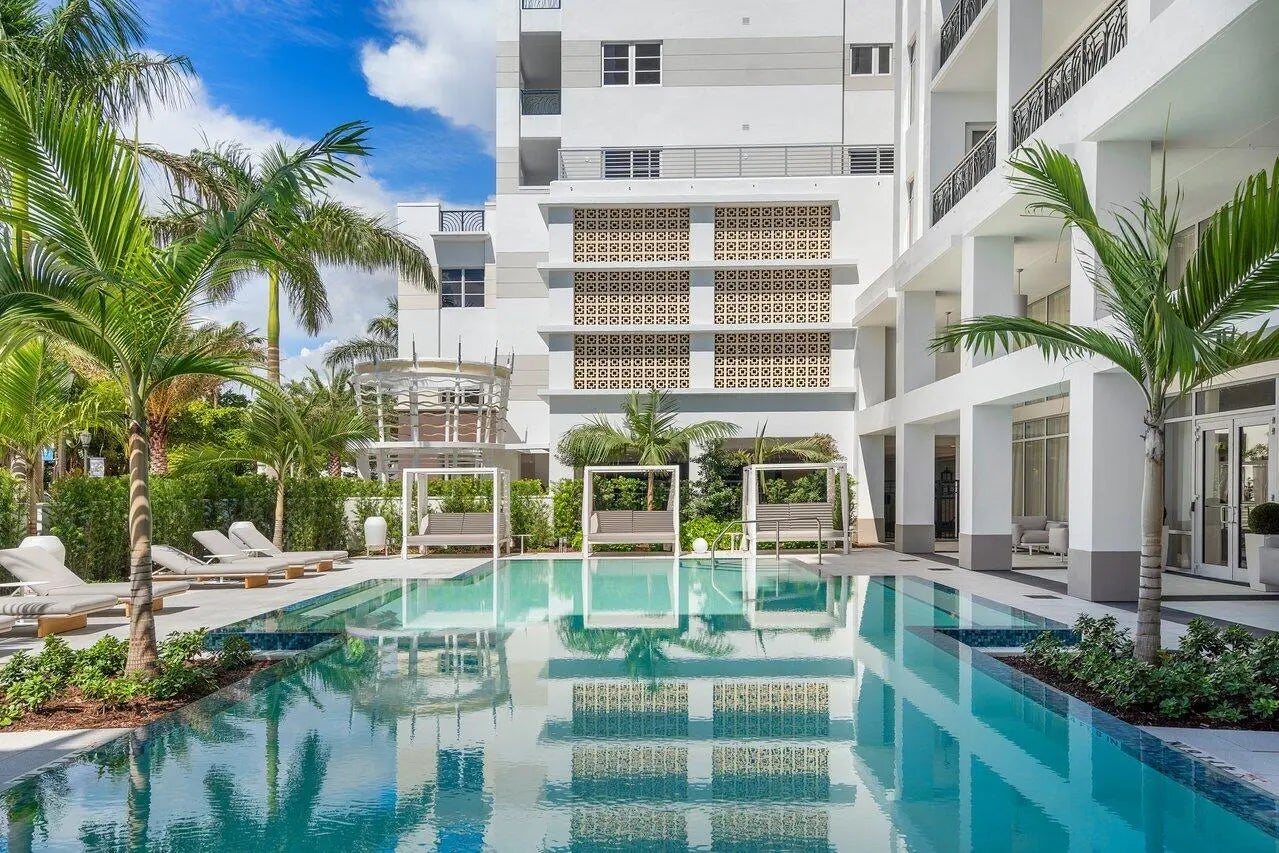 Sophisticated and modern 3/2.5 condo designed by STEVEN G INTERIORS - enjoy spectacular sunrise and sunset views Perfectly positioned on the top floor with ocean and city views. 3 premium parking spaces and 3 storage lockers. Elevator to garage is next to unit and the fitness and roof top amenities are one flight of stairs directly above. Spectacular amenities include fitness, roof top jacuzzi and cabanas, out door grilling and dining area spa, sauna, steam, salon, pool, game room - walk to the beach and walk to Mizner Park, fine dining shopping -South Florida living at its finest.