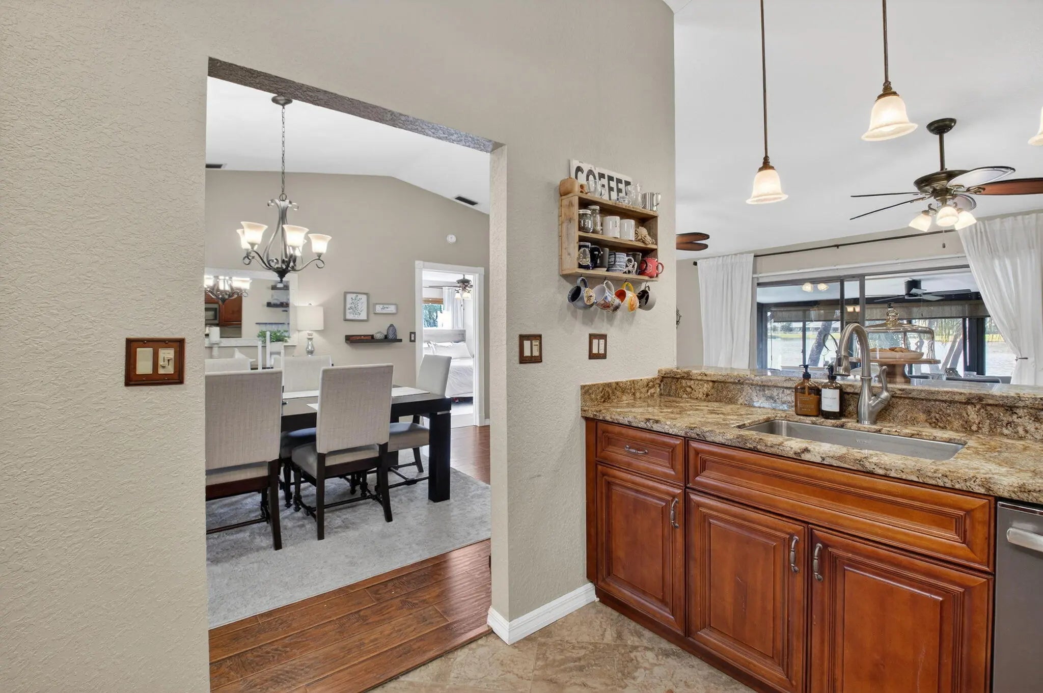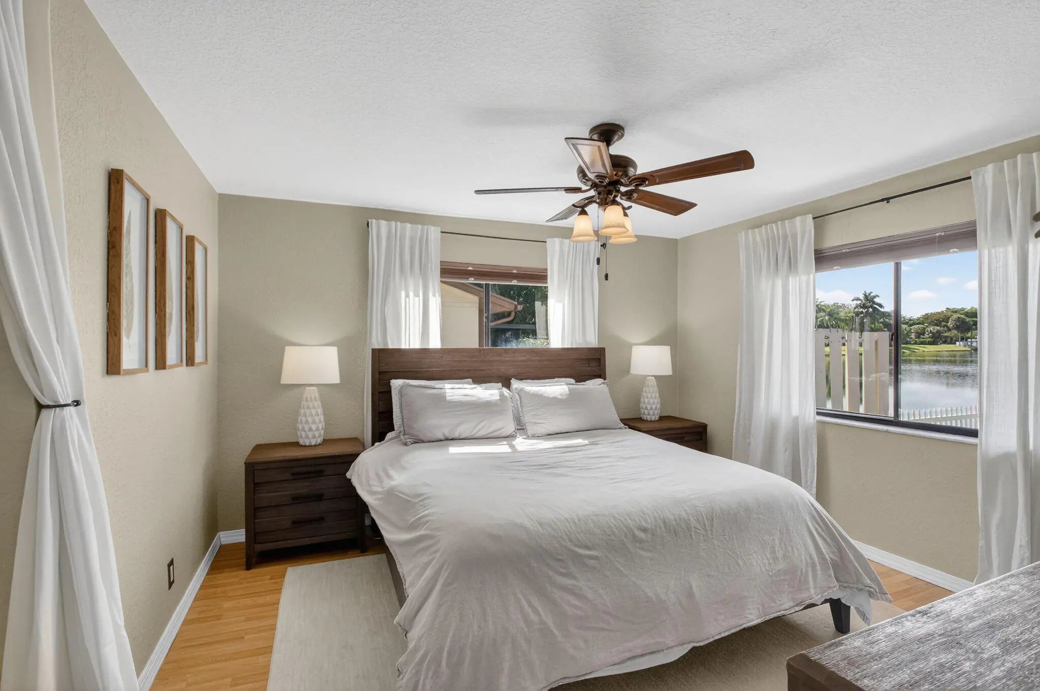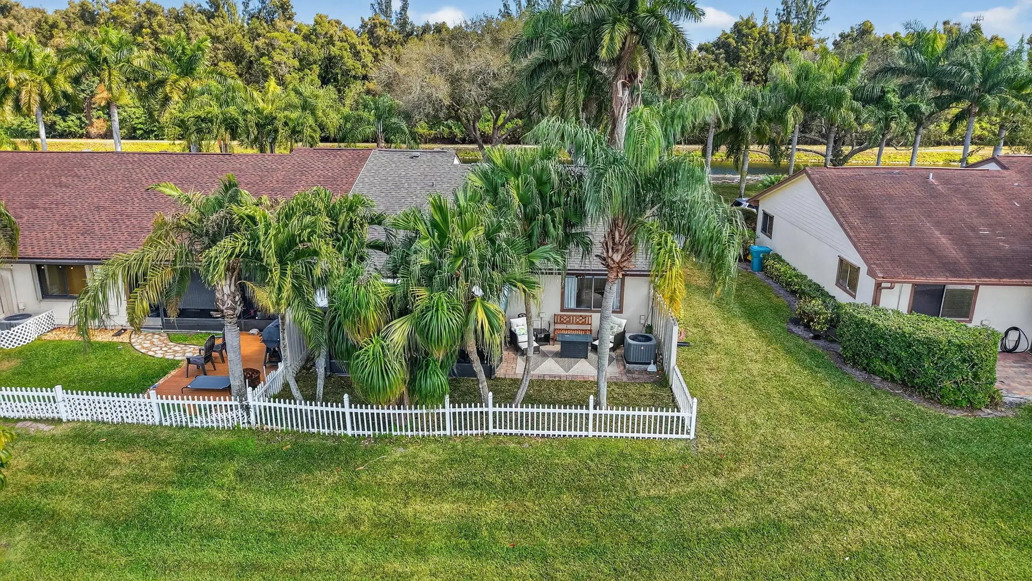 From the moment you step inside, this corner unit home just feels right. There is an immediate sense of warmth and ease, like exhaling at the end of a long day. The open floor plan flows effortlessly into a beautiful, well maintained kitchen, making everyday living feel both comfortable and intentional. Thoughtful details like top down/bottom up blinds bring in natural light while preserving privacy. Step out onto the screened patio and take in peaceful lake views, an ideal spot for morning coffee or unwinding after a long day. Just beyond, a charming fenced in seating area offers a cozy outdoor retreat that feels personal and private. Inside, a spacious walk in closet and meticulous upkeep reflect the care this home has received.With a newer roof (2022) and newer A/C (2023), this home