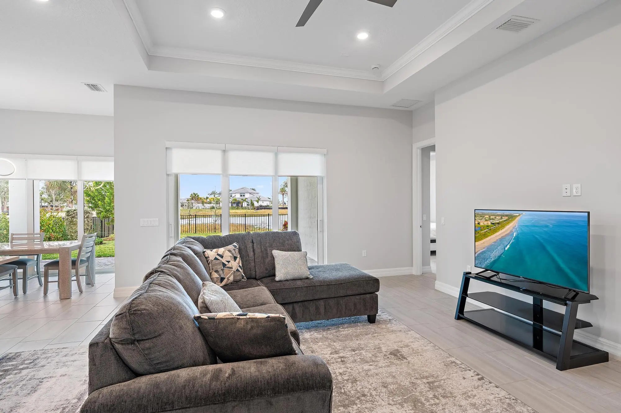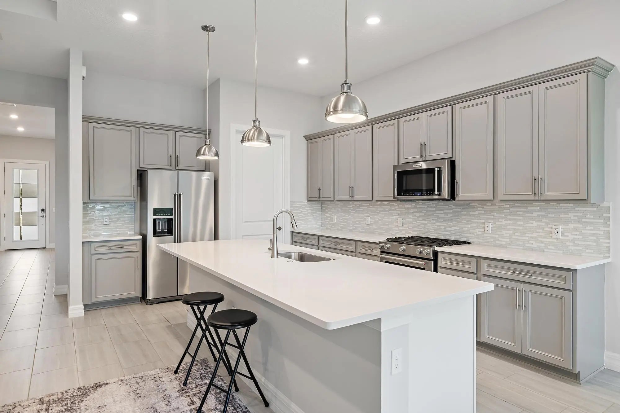 More than $44,000 in thoughtfully curated upgrades, both functional and aesthetic, elevate this beautifully appointed Prestige model set on a premium waterfront lot within the vibrant Avondale community of Avenir in Palm Beach Gardens. Built by DiVosta and truly better than new, the home captures magnificent west-facing sunset views and serene water vistas, complemented by a fully fenced yard that enhances privacy and everyday enjoyment. The interior has been refined with a cohesive palette and designer-selected enhancements throughout. The kitchen serves as a striking centerpiece, featuring upgraded 3cm polished quartz countertops, an elegant marble backsplash, an upgraded sink and faucet, a curated pendant lighting package, and an exterior hood vent upgrade--