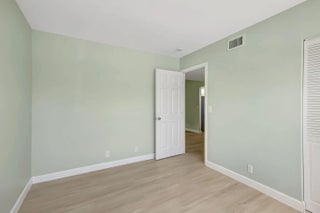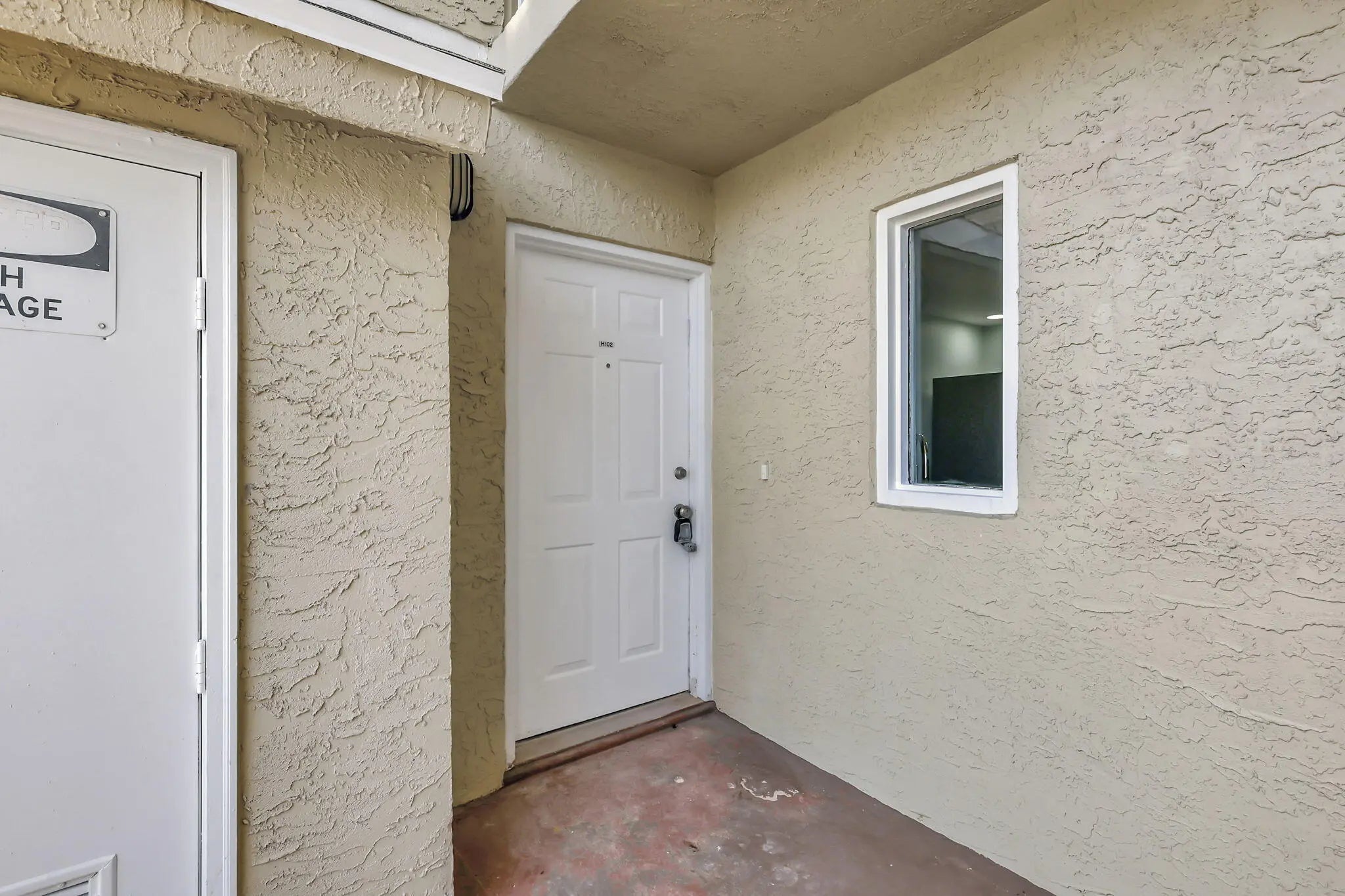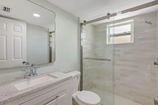 Renovated ground-floor condo with concrete block construction, impact glass, and a 2022 roof. The interior was taken down and rebuilt with all new drywall, luxury vinyl planking (waterproof flooring), doors, trim, lighting, and modern finishes throughout. Brand-new kitchen with soft-close cabinets, stainless appliances, Corian counters, tiled backsplash, and deep sink. Both bathrooms completely redone with new tile, vanities, and Delta fixtures. Screened porch with tropical landscaping. Community offers pool, clubhouse, exterior maintenance, low monthly fees, and is pet-friendly. Centrally located near shopping, dining, and medical.