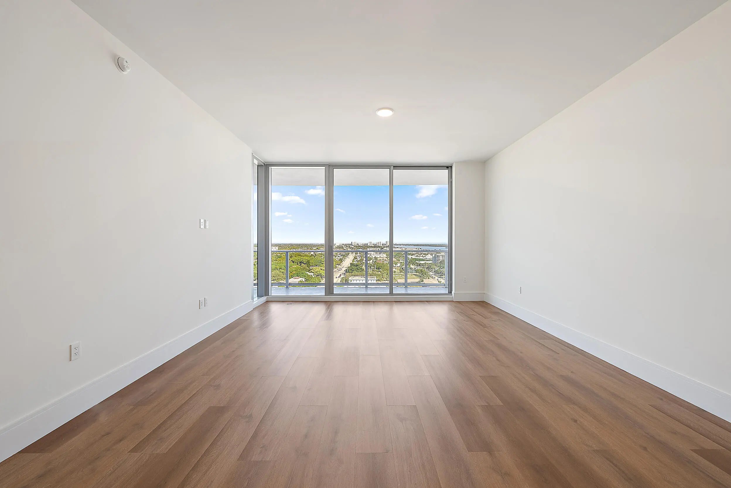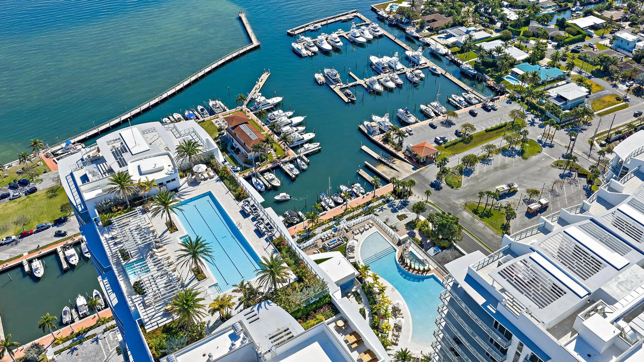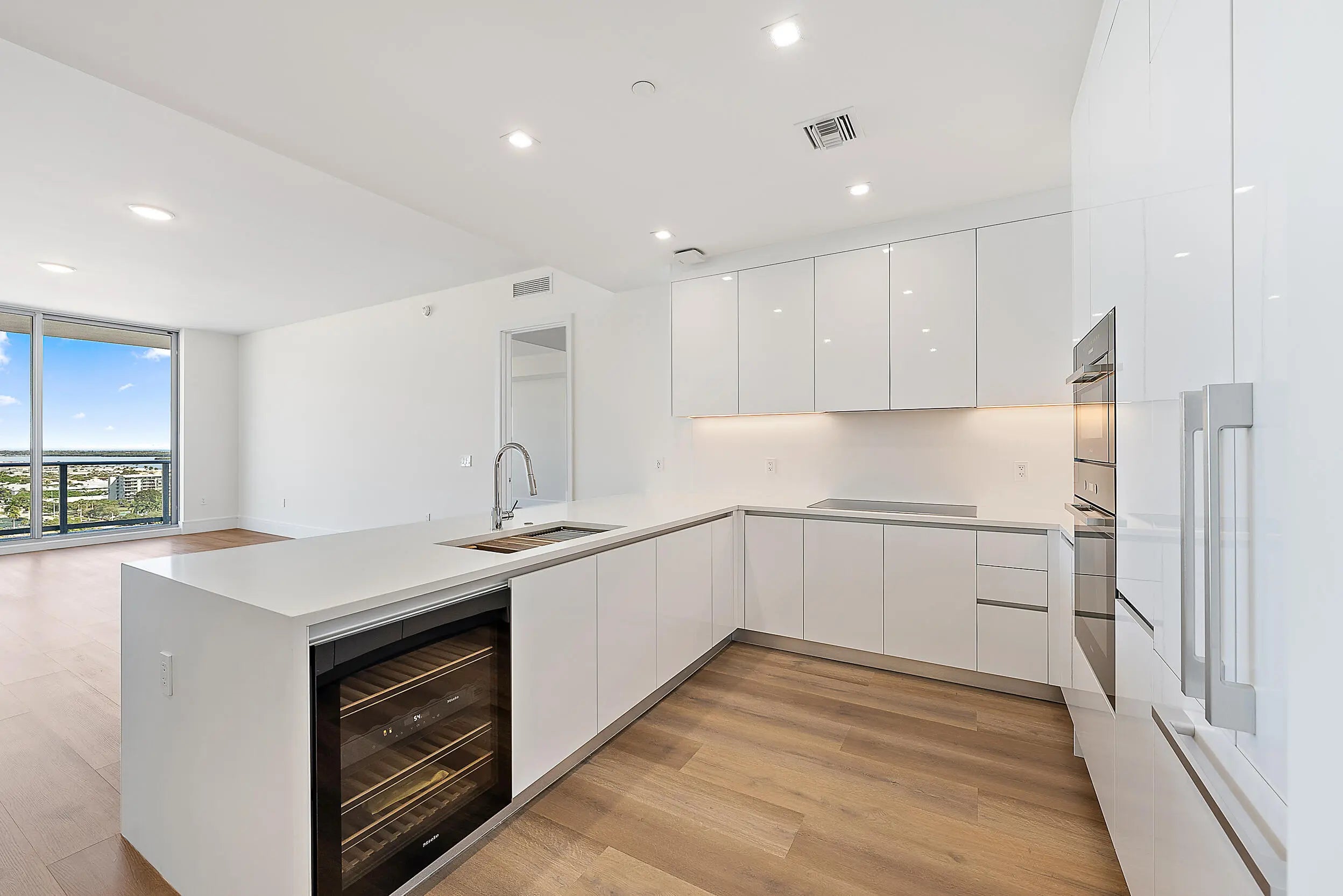 Perched on the 15th floor, this brand-new waterfront residence at Nautilus 220 captures sweeping Atlantic Ocean, Intracoastal, and western sunset views. The 2-bedroom, 2.5-bath layout features 10-foot ceilings, an open-concept design, European porcelain flooring, custom cabinetry, quartz surfaces, and spa-inspired baths. The chef's kitchen showcases Miele appliances and a striking quartz waterfall island, while the south-facing terrace delivers panoramic sunrise-to-sunset vistas over Peanut Island and the resort pool deck. Included are two garage parking spaces (one EV-equipped) and a private storage unit.