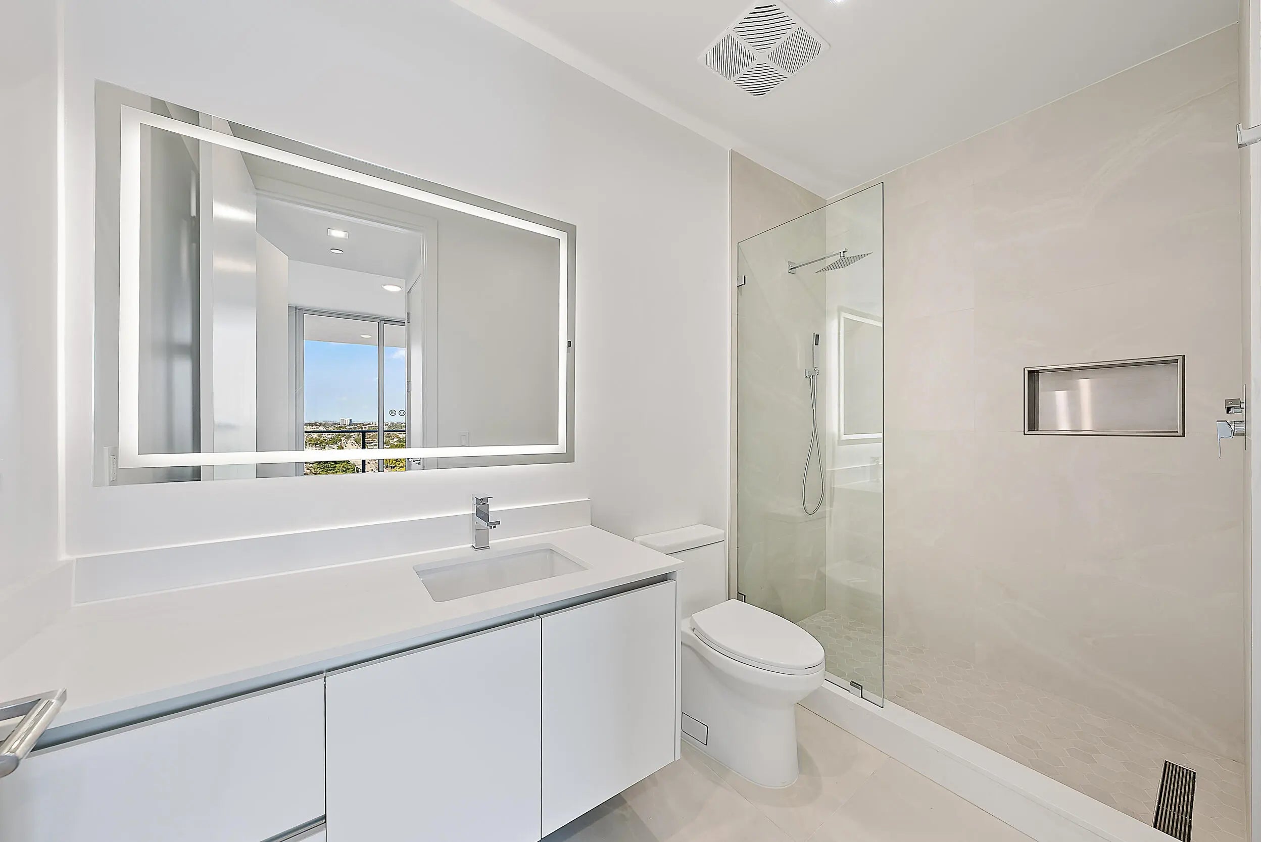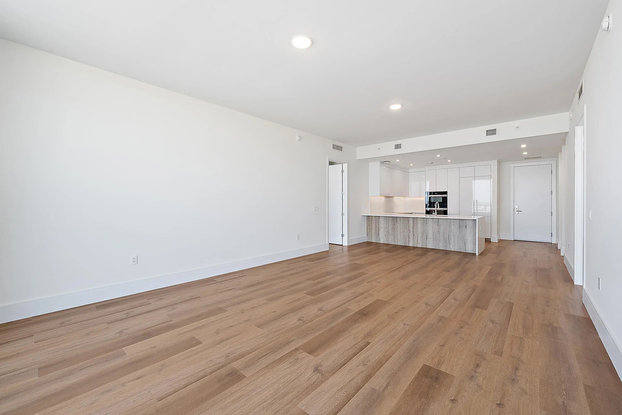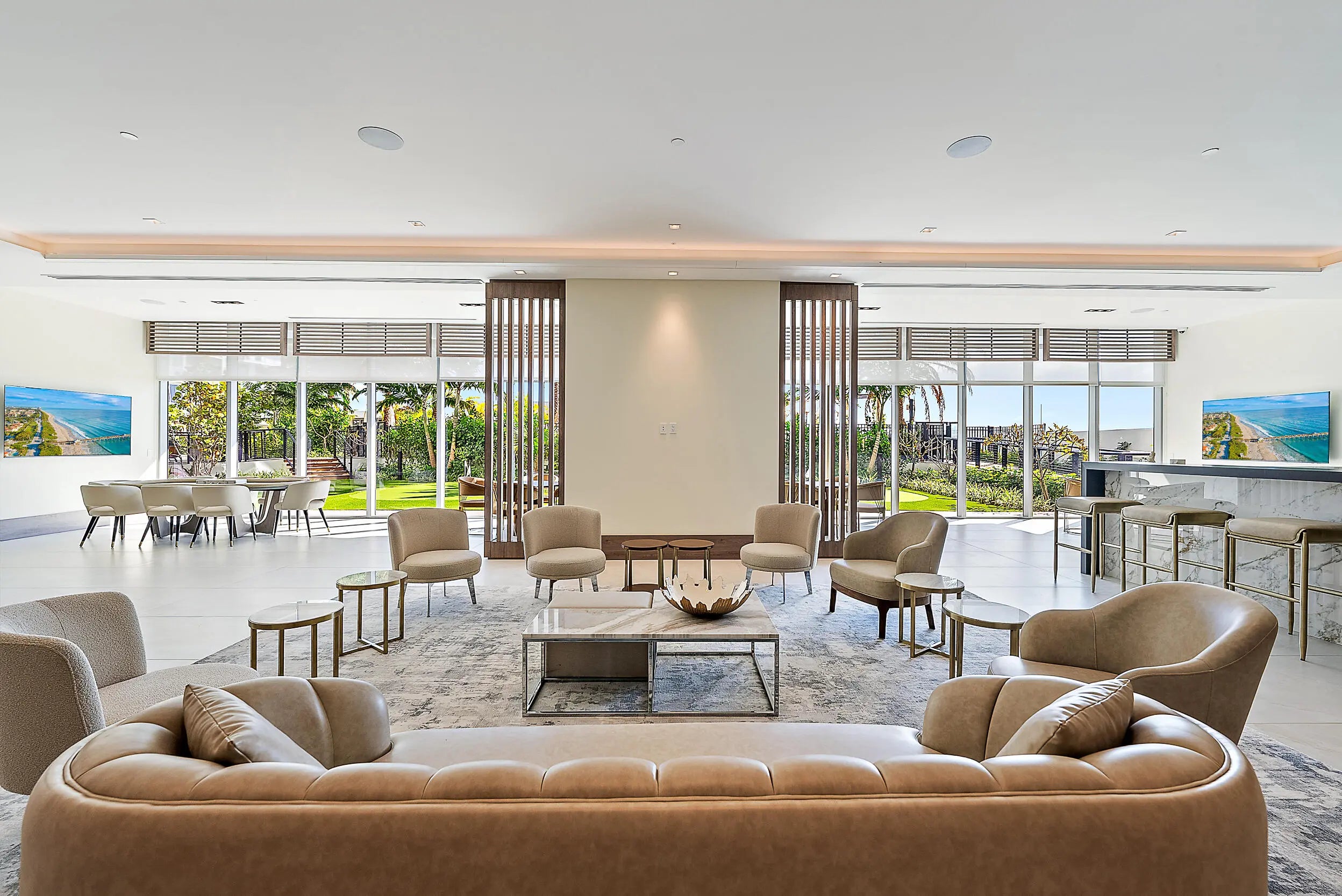 Perched on the 15th floor, this brand-new waterfront residence at Nautilus 220 captures sweeping Atlantic Ocean, Intracoastal, and western sunset views. The 2-bedroom, 2.5-bath layout features 10-foot ceilings, an open-concept design, European porcelain flooring, custom cabinetry, quartz surfaces, and spa-inspired baths. The chef's kitchen showcases Miele appliances and a striking quartz waterfall island, while the south-facing terrace delivers panoramic sunrise-to-sunset vistas over Peanut Island and the resort pool deck. Included are two garage parking spaces (one EV-equipped) and a private storage unit.