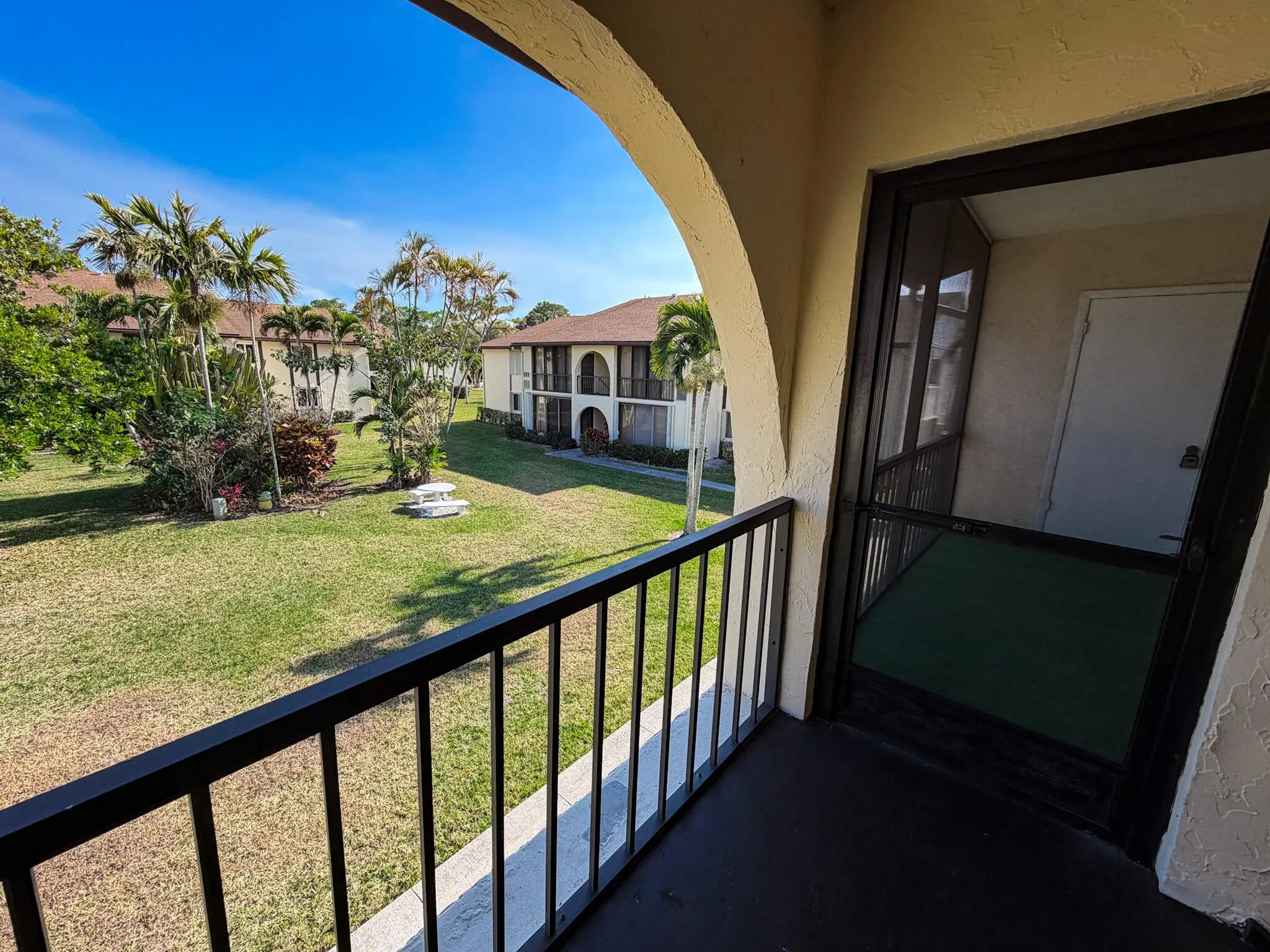 A charming winter retreat with classic Old Florida appeal. This well-maintained condo offers a peaceful, easy-living escape just 15 minutes from the beach, w/ a relaxed and timeless Florida feel. Lightly used over the years as a seasonal getaway, the home has been lovingly cared for & shows clean & bright throughout, featuring fresh interior paint & new carpet that enhance the comfortable, functional layout. The condo is sold turnkey, making it an ideal option for a buyer seeking a ready-to-enjoy seasonal residence. Enjoy tranquil garden views from the screened patio, a perfect spot for morning coffee or evening breezes. The patio also offers great potential to be glassed-in and used as an in-home office, reading room, or additional living space, adding flexibility to the floorplan.