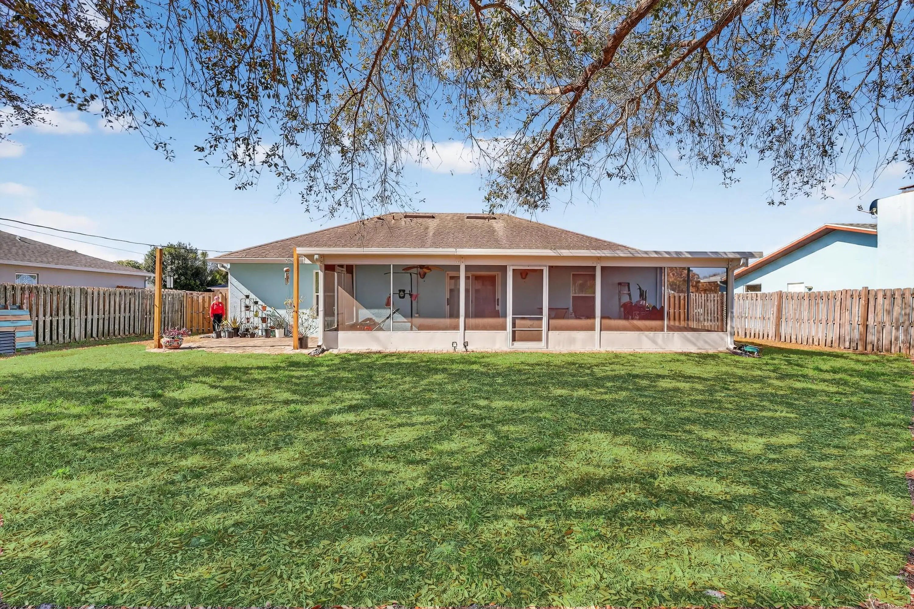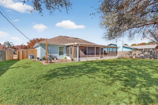 Welcome to 1011 SE Euclid Lane! Centrally located just off Crosstown Parkway and Floresta Drive in the heart of Port St. Lucie. Conveniently situated near two hospitals, parks, sidewalks, and top-rated schools. This open-concept home offers approximately 1,200 square feet under air with 3 bedrooms and 2 full bathrooms, featuring hardwood floors throughout. Start your mornings in the expansive fully screened lanai, with new screens and doors installed in 2024 perfect for entertaining or relaxing year-round. The fully fenced backyard (replaced in 2024) includes both single & double gates, two mature oak trees, and plenty of room for a pool, play area, or outdoor retreat. Impact windows, front door, and back slider installed in 2025. Wind Mitigation report passed with flying colors in 2025