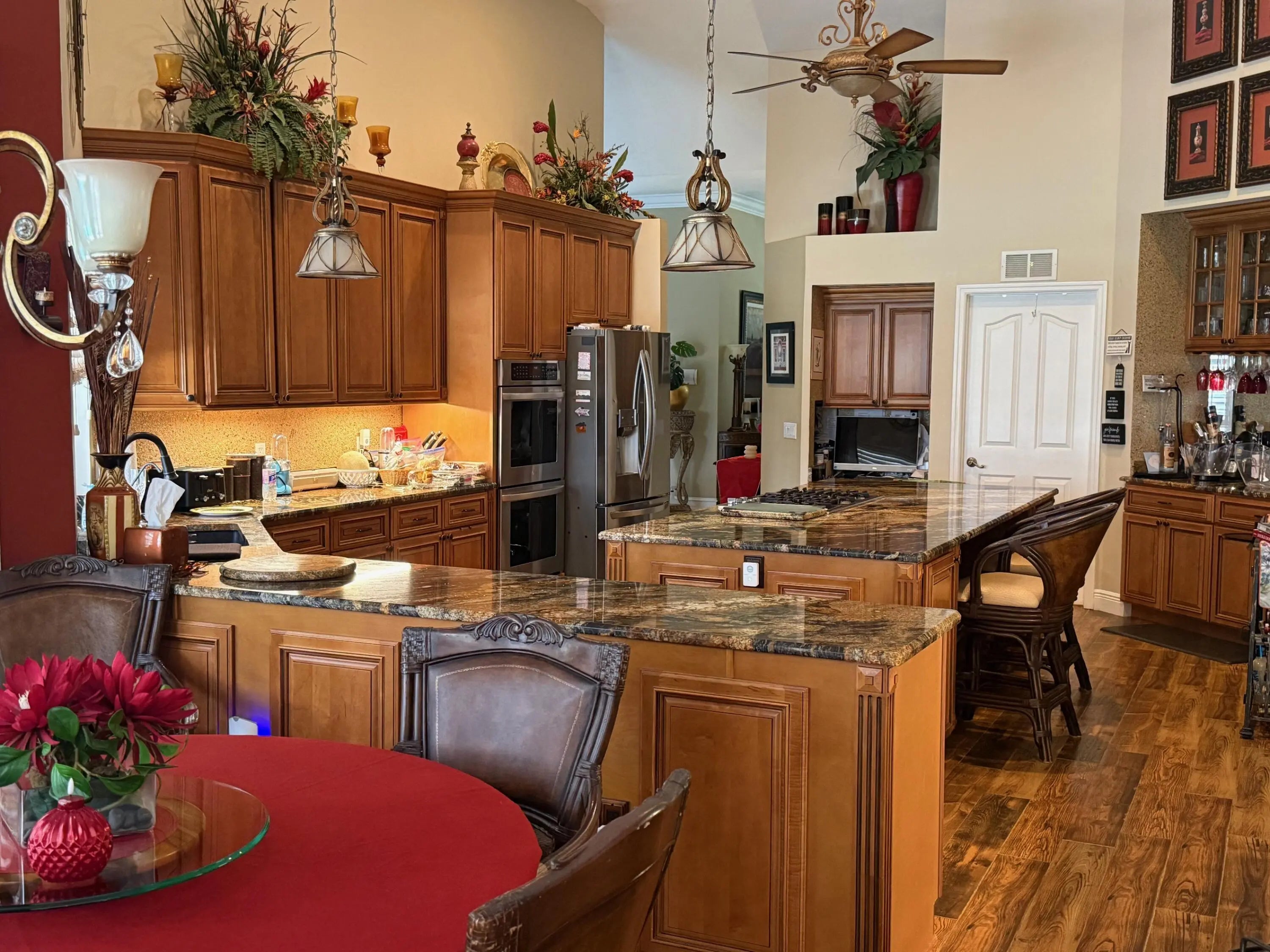 CUSTOM-BUILT POOL HOME OVERLOOKING THE 11TH HOLE IN SOUGHT-AFTER COUNTRY CLUB ESTATES!Nestled among mature trees on a beautifully established street where no two homes are alike, this spacious 4-bedroom custom residence offers the perfect blend of privacy, elegance, and Florida indoor-outdoor living.Step inside to a formal living room that flows into an impressive 20-foot chef's kitchen, featuring a large custom island, stainless steel appliances, 42'' custom cabinetry, and an expansive breakfast area comfortably seating six -- ideal for entertaining or everyday living.The open family room showcases sliding glass doors framing serene views of the heated pool and golf course, creating a seamless transition to your private backyard oasis. see more...