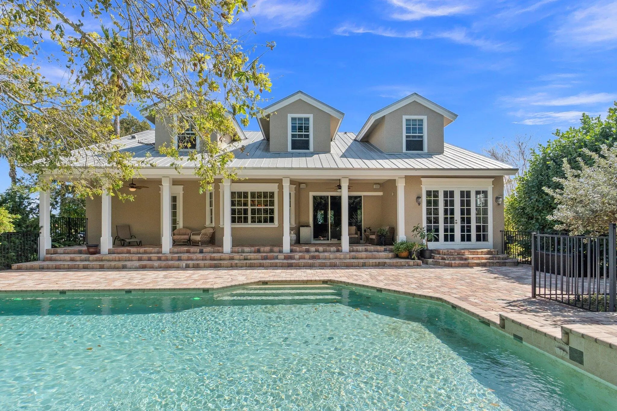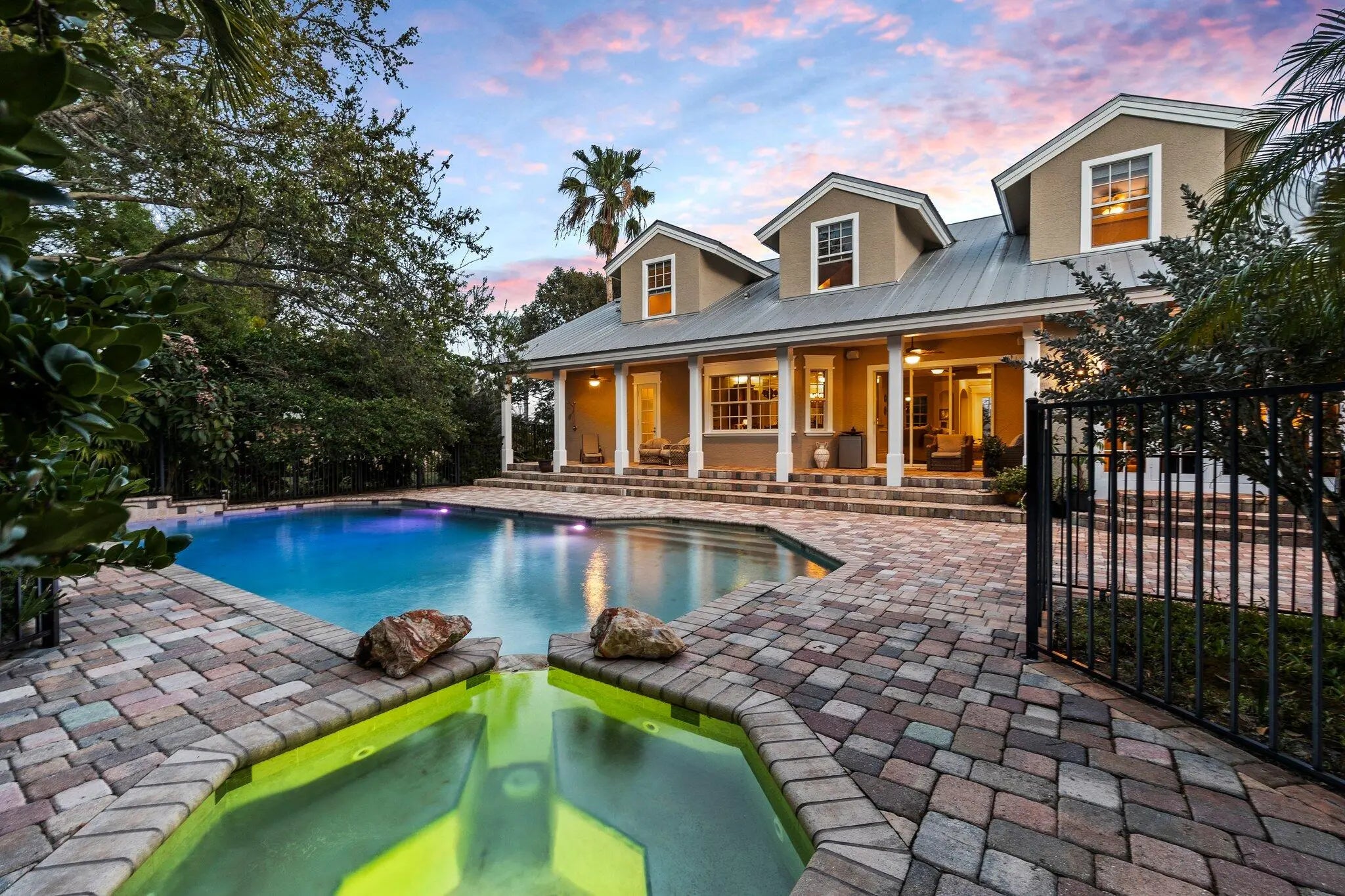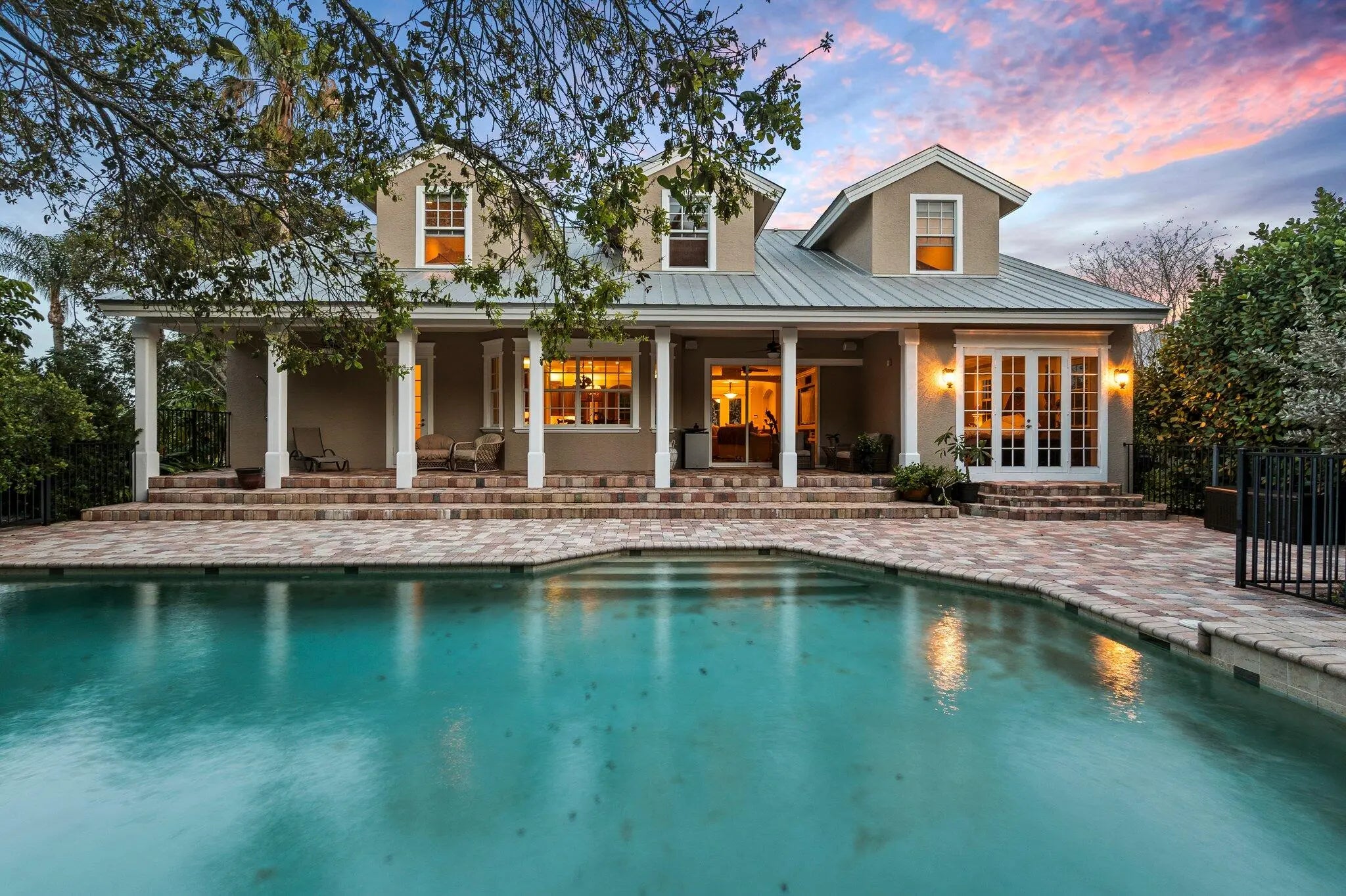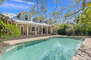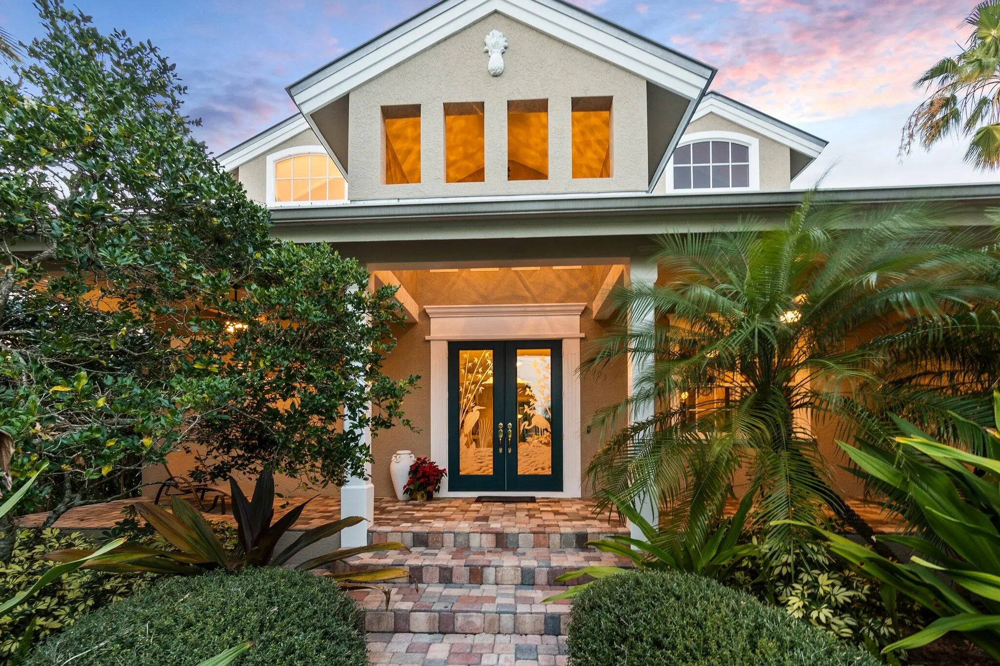 The crown jewel of Sandpiper Bay on .68 acres backing Howard's Creek! This luxury estate with 5 bedrooms plus office/den and 4.5 bathrooms showcases solid construction and elegant design, featuring a gourmet kitchen with center island, breakfast bar, built-in desk, formal dining room, spacious living area, second bedroom, home office, and cabana bath on the main level. Upstairs offers three bedrooms, 2.5 baths, media room with wet bar, family room, and loft--ideal for guests and flexible living. French doors open to a spectacular 44x22 pool and spa, expansive patio, and lush landscaping. Impact windows throughout. Built to exceed code with 10-ft concrete block walls, steel floor joists, steel trusses, and 16-inch on-center construction for exceptional strength and durability.