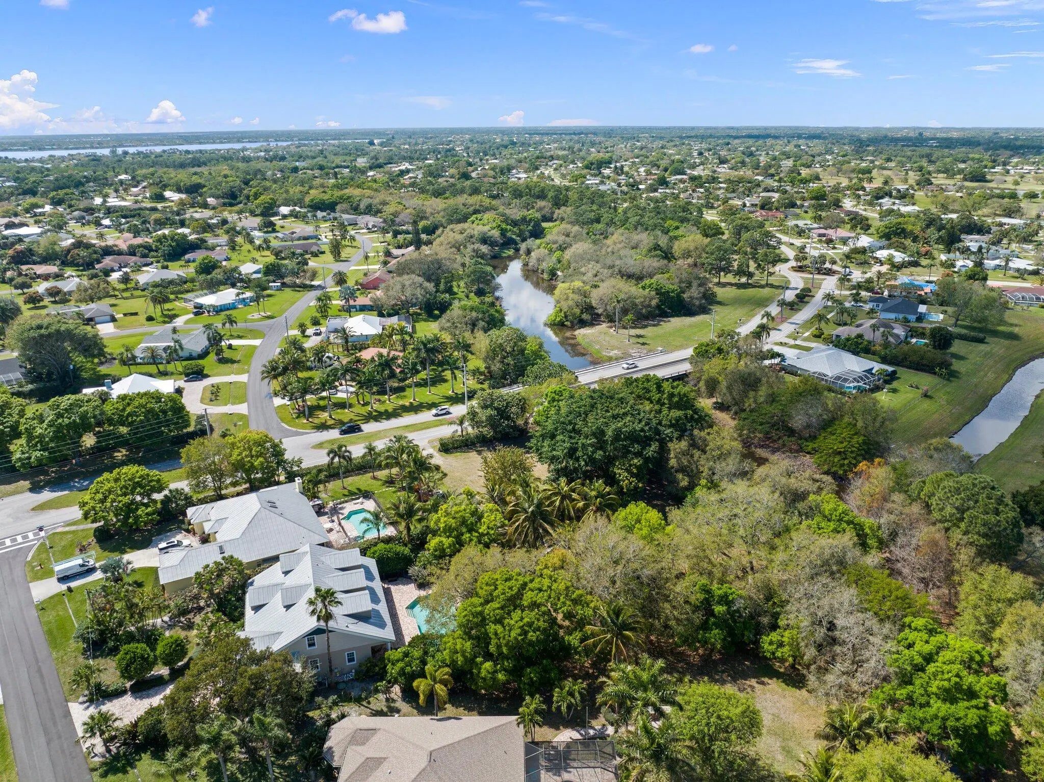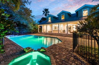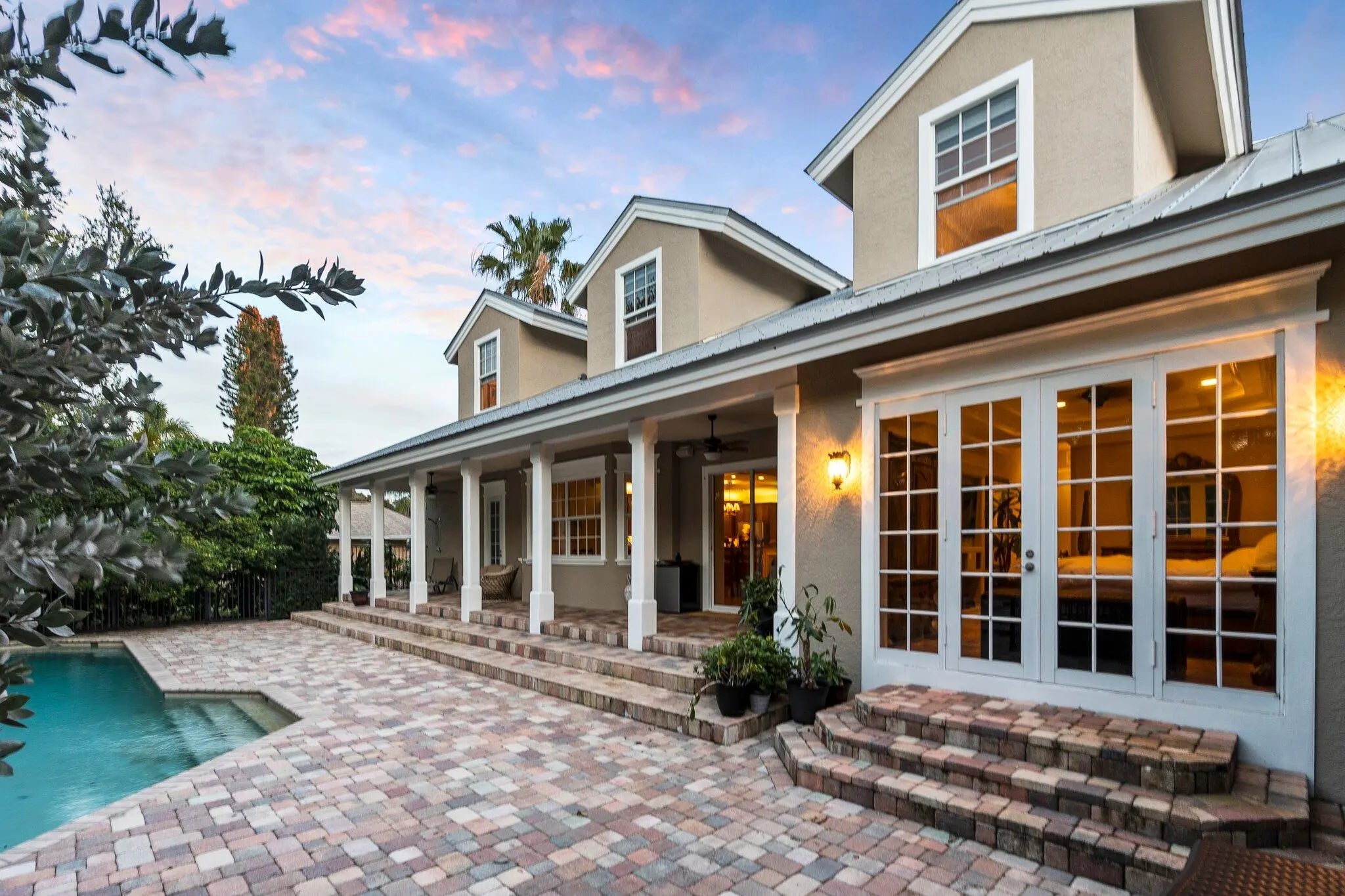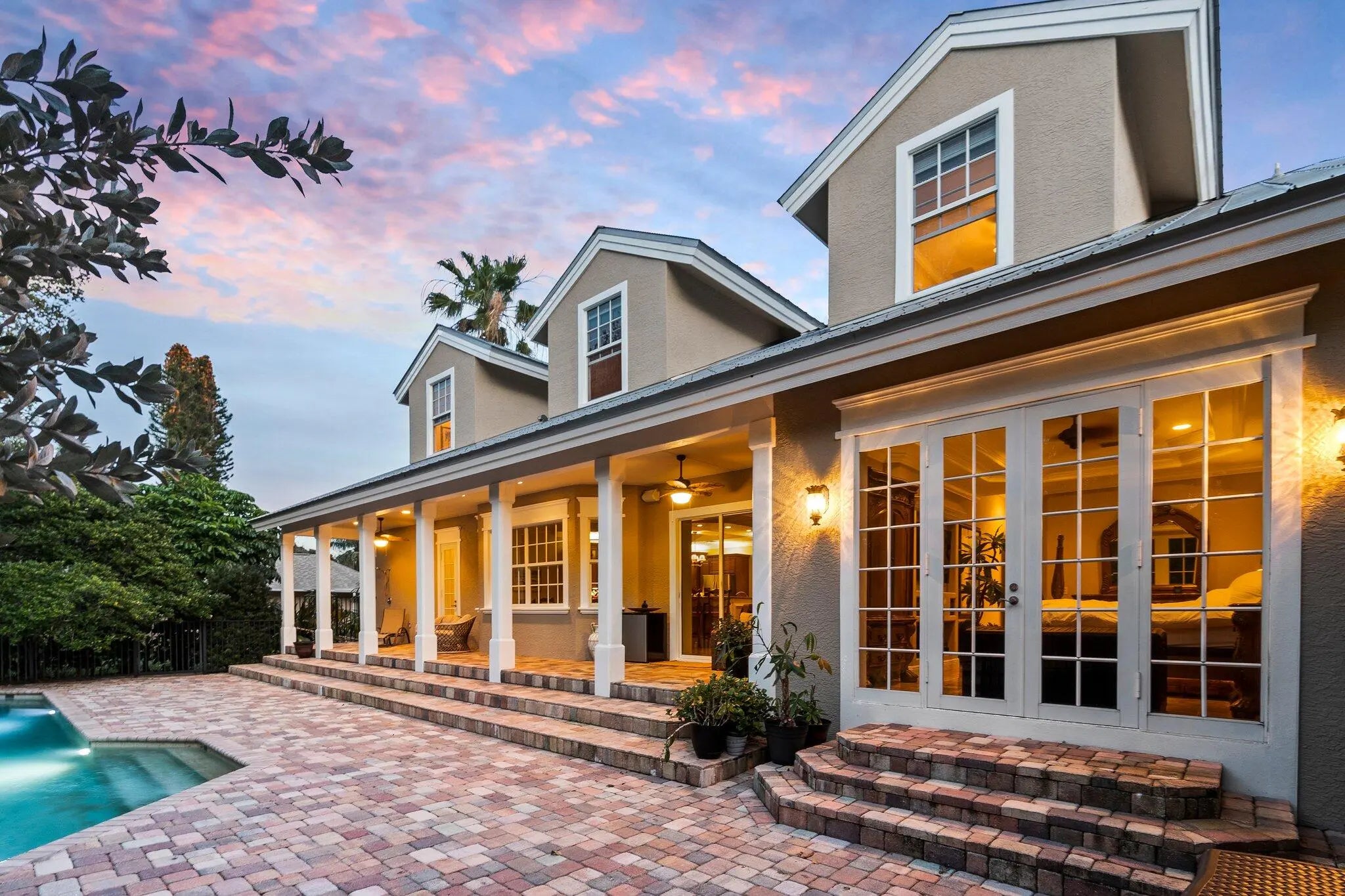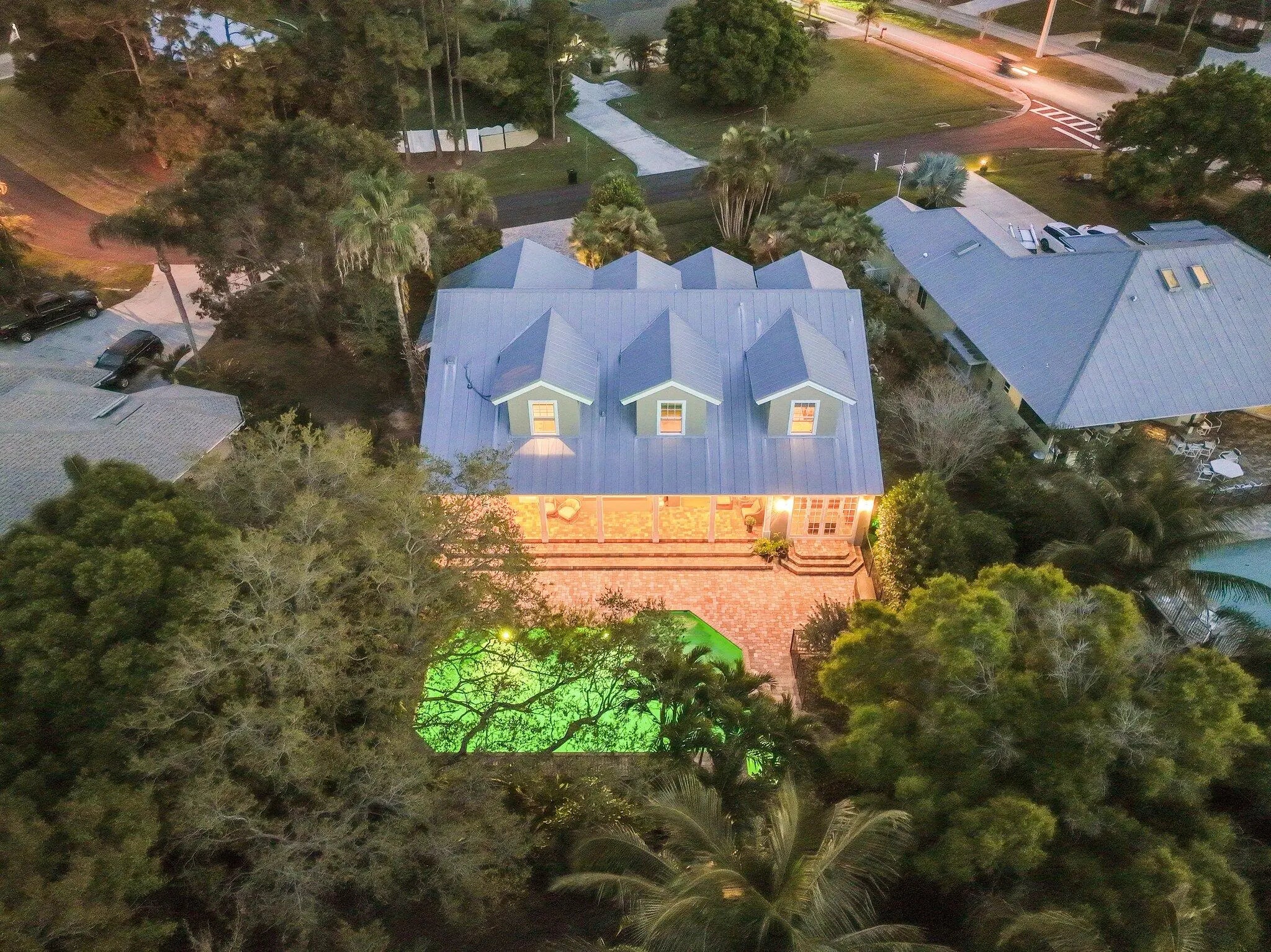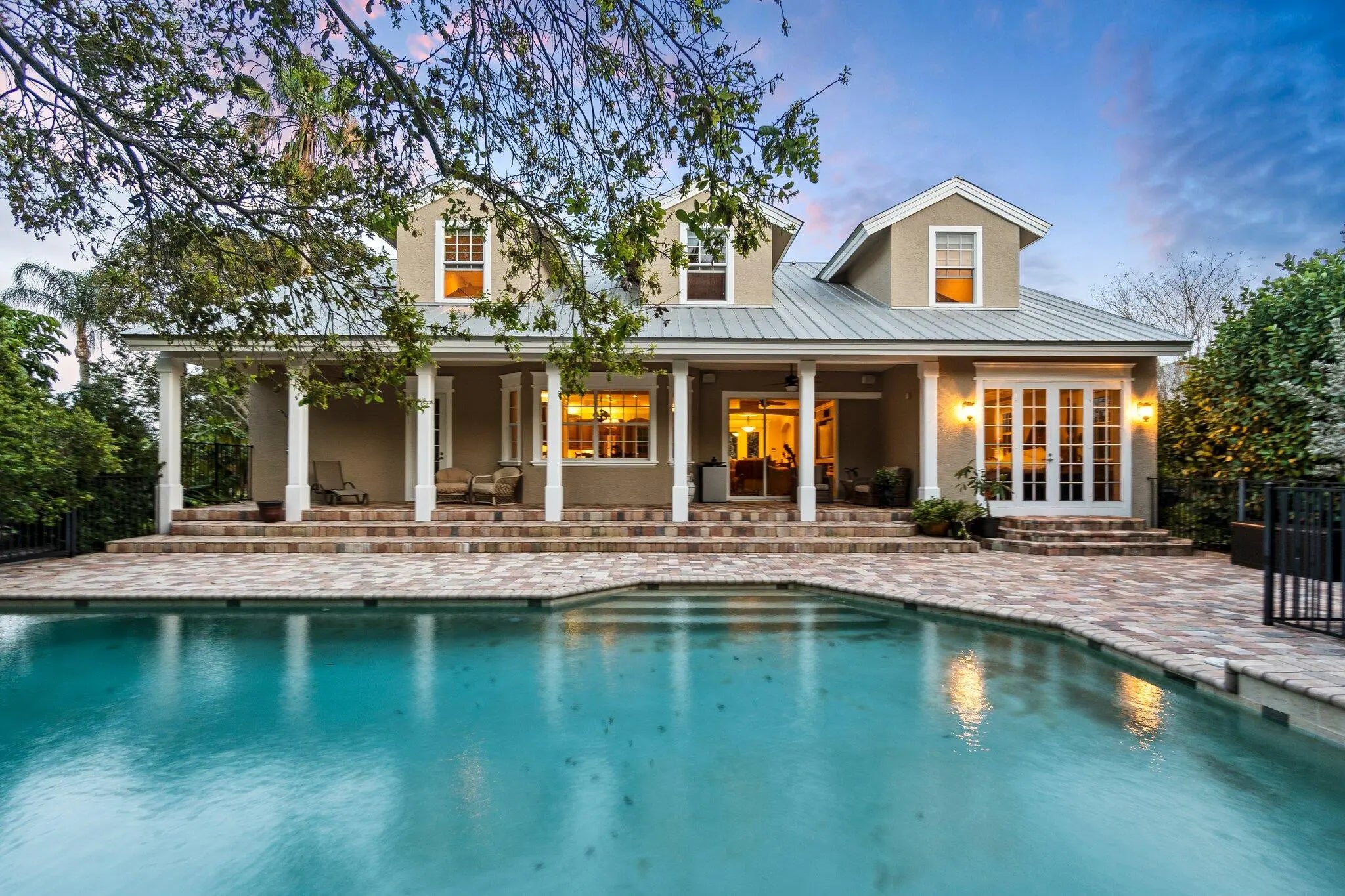 The crown jewel of Sandpiper Bay on .68 acres backing Howard's Creek! This luxury estate with 5 bedrooms plus office/den and 4.5 bathrooms showcases solid construction and elegant design, featuring a gourmet kitchen with center island, breakfast bar, built-in desk, formal dining room, spacious living area, second bedroom, home office, and cabana bath on the main level. Upstairs offers three bedrooms, 2.5 baths, media room with wet bar, family room, and loft--ideal for guests and flexible living. French doors open to a spectacular 44x22 pool and spa, expansive patio, and lush landscaping. Impact windows throughout. Built to exceed code with 10-ft concrete block walls, steel floor joists, steel trusses, and 16-inch on-center construction for exceptional strength and durability.