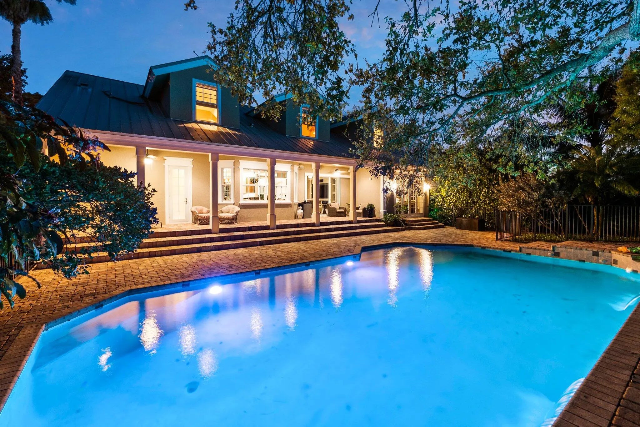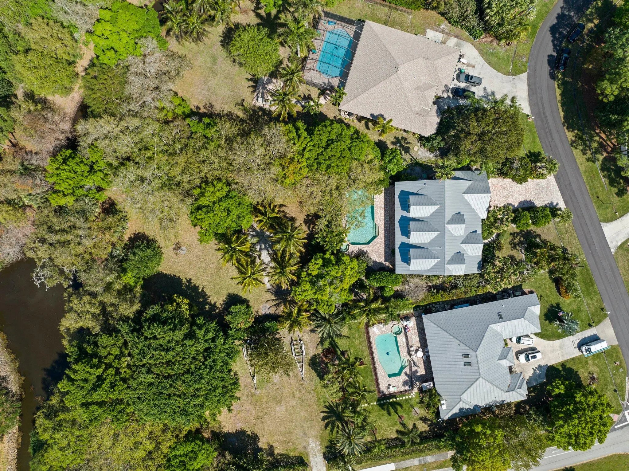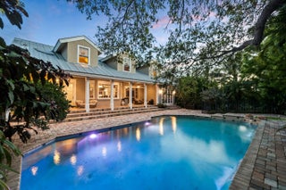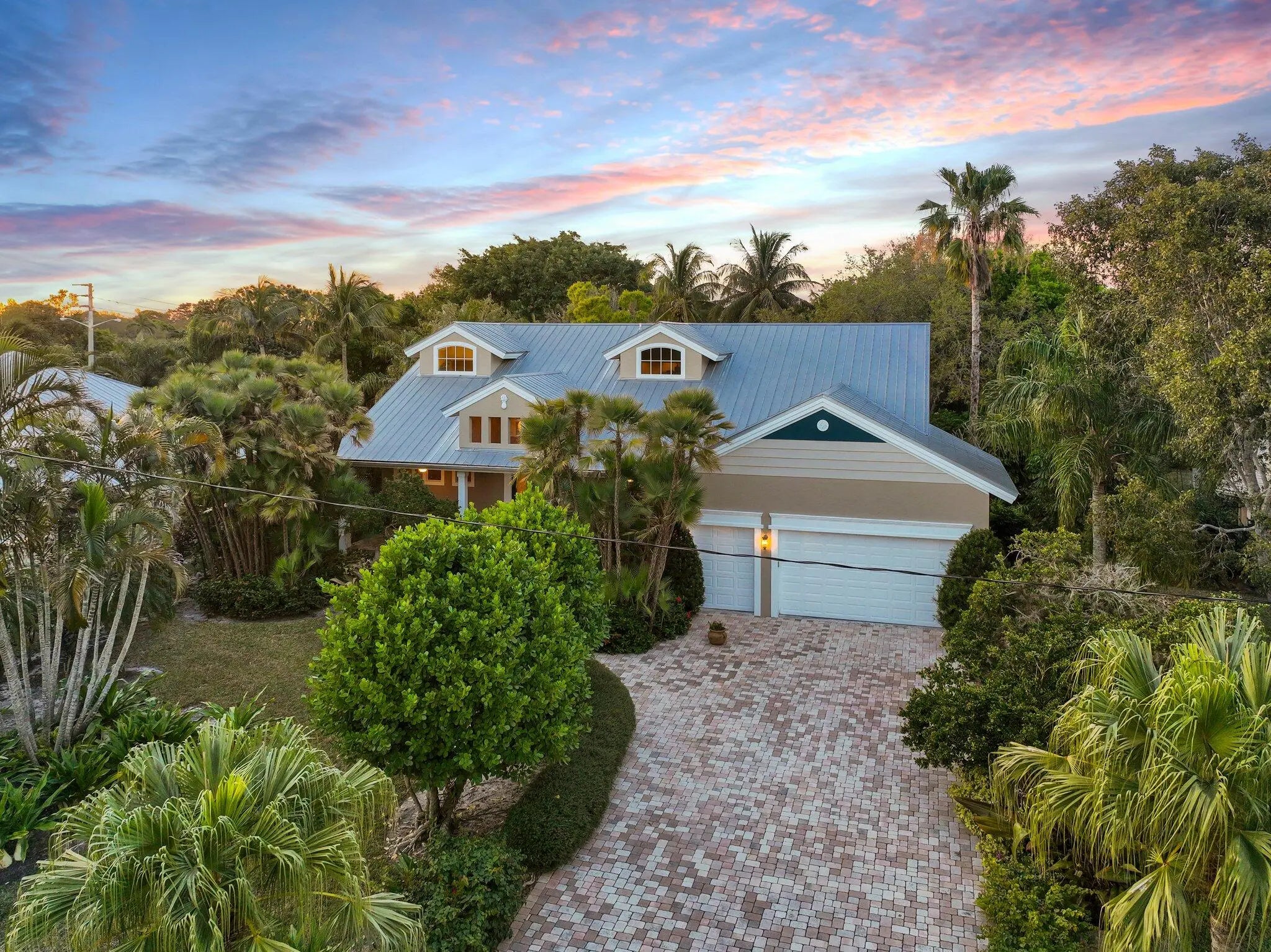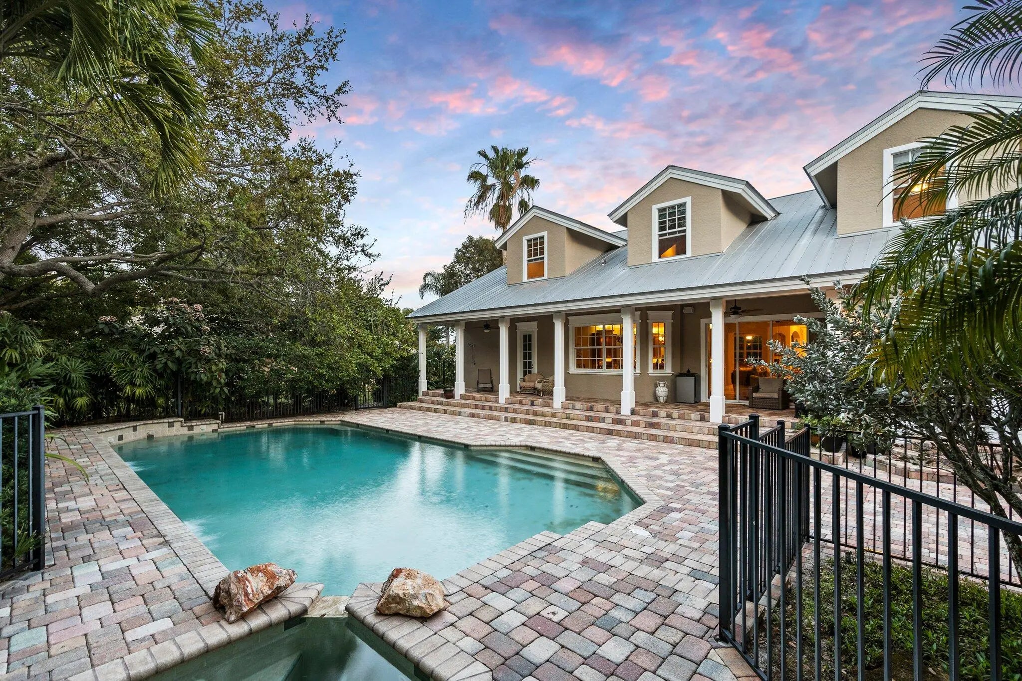 The crown jewel of Sandpiper Bay on .68 acres backing Howard's Creek! This luxury estate with 5 bedrooms plus office/den and 4.5 bathrooms showcases solid construction and elegant design, featuring a gourmet kitchen with center island, breakfast bar, built-in desk, formal dining room, spacious living area, second bedroom, home office, and cabana bath on the main level. Upstairs offers three bedrooms, 2.5 baths, media room with wet bar, family room, and loft--ideal for guests and flexible living. French doors open to a spectacular 44x22 pool and spa, expansive patio, and lush landscaping. Impact windows throughout. Built to exceed code with 10-ft concrete block walls, steel floor joists, steel trusses, and 16-inch on-center construction for exceptional strength and durability.