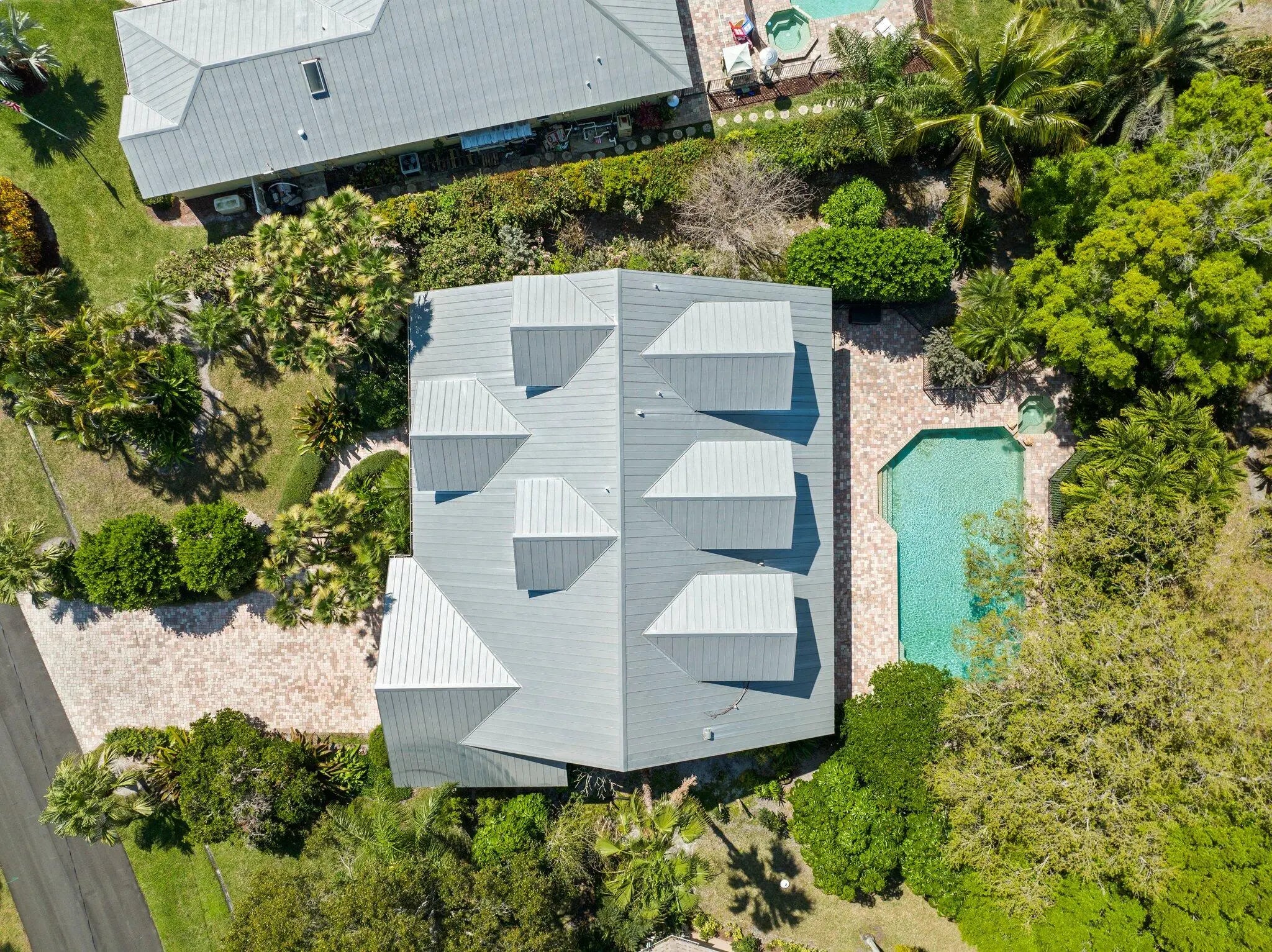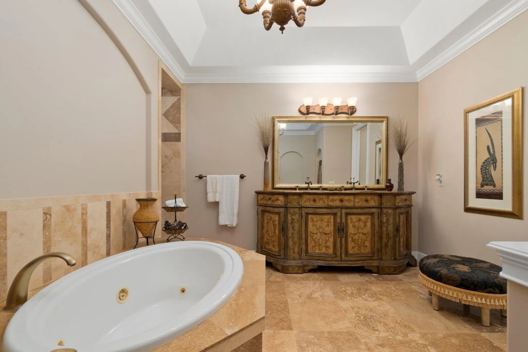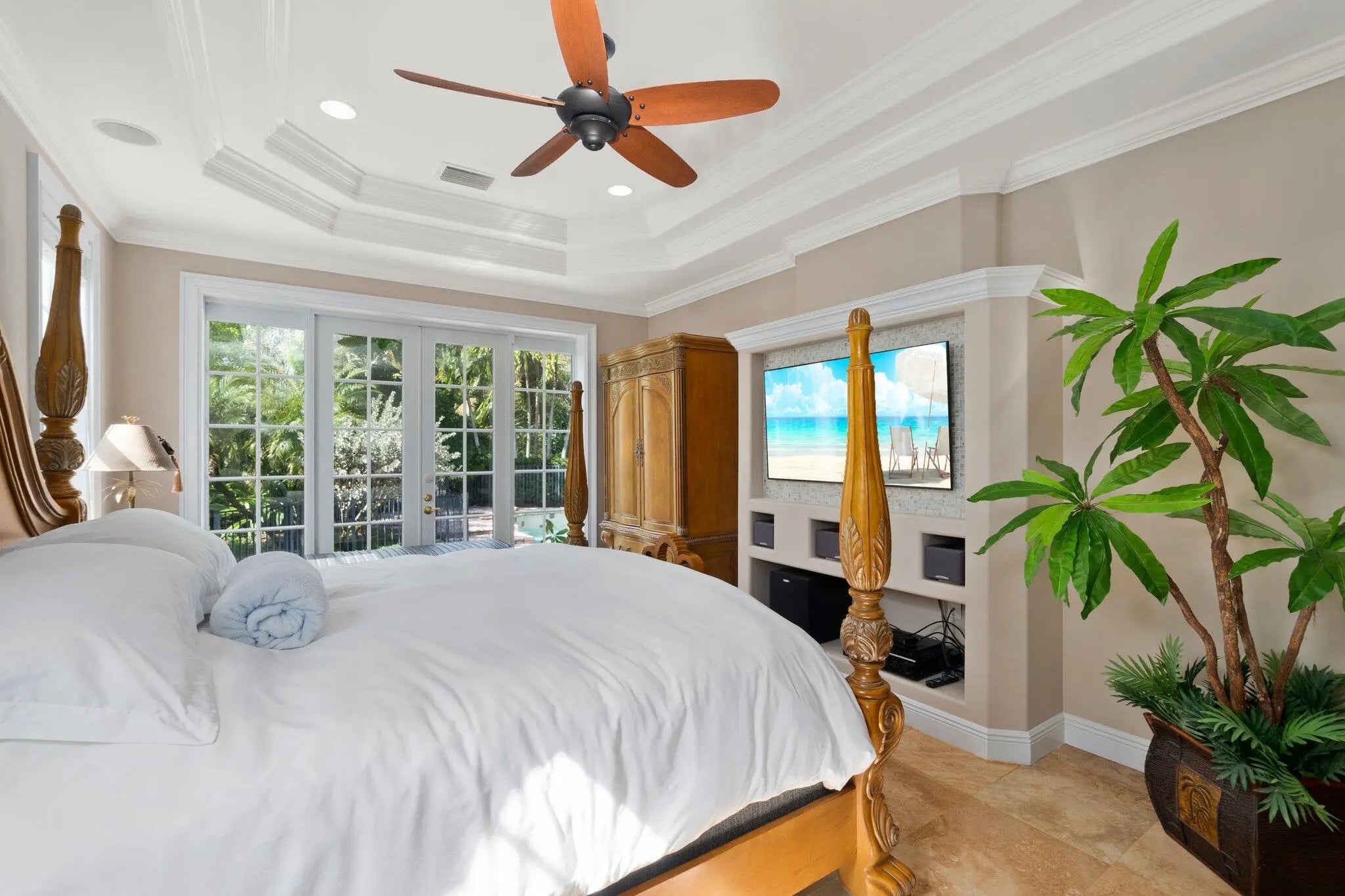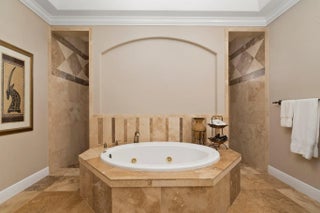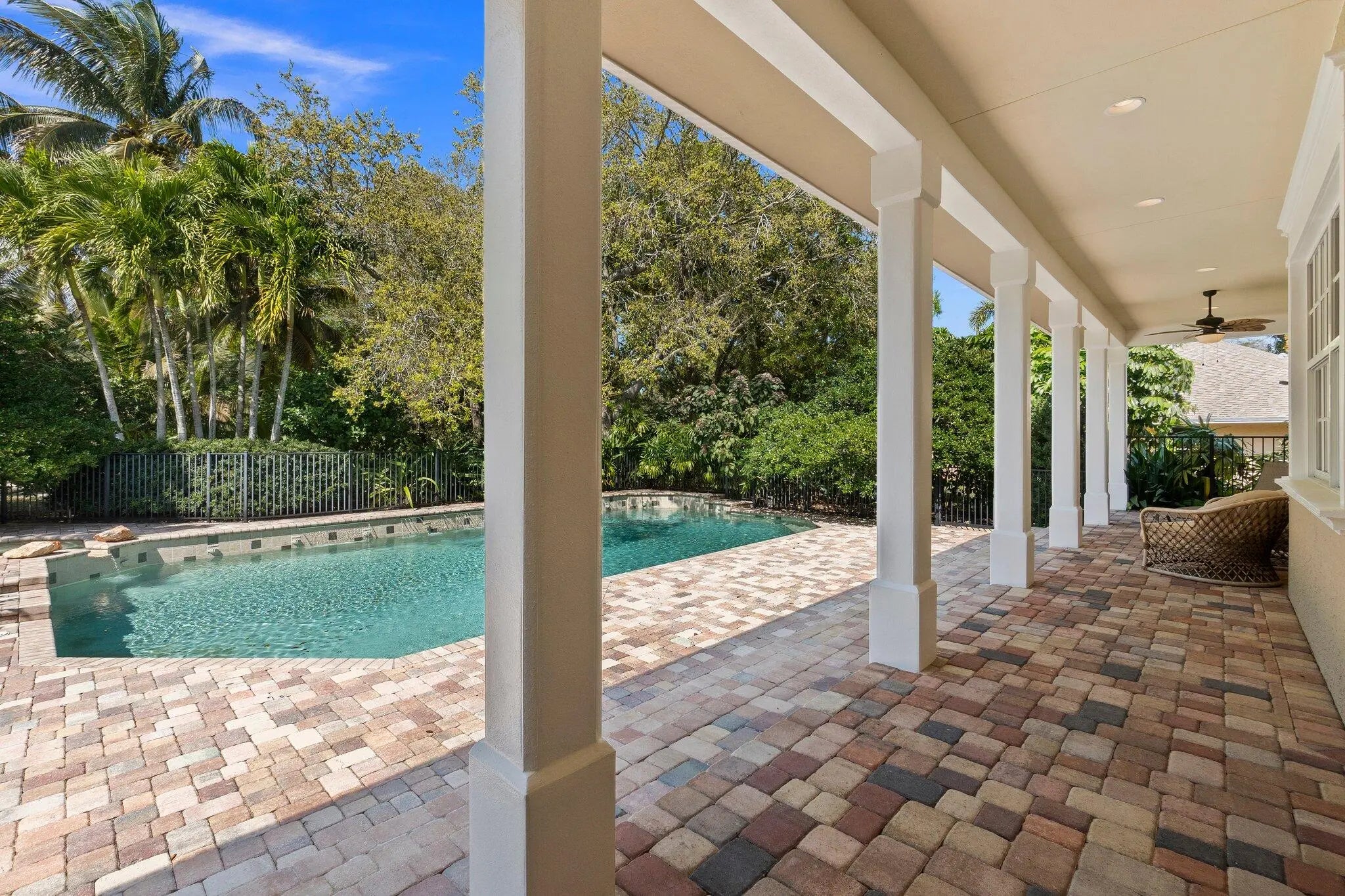 The crown jewel of Sandpiper Bay on .68 acres backing Howard's Creek! This luxury estate with 5 bedrooms plus office/den and 4.5 bathrooms showcases solid construction and elegant design, featuring a gourmet kitchen with center island, breakfast bar, built-in desk, formal dining room, spacious living area, second bedroom, home office, and cabana bath on the main level. Upstairs offers three bedrooms, 2.5 baths, media room with wet bar, family room, and loft--ideal for guests and flexible living. French doors open to a spectacular 44x22 pool and spa, expansive patio, and lush landscaping. Impact windows throughout. Built to exceed code with 10-ft concrete block walls, steel floor joists, steel trusses, and 16-inch on-center construction for exceptional strength and durability.