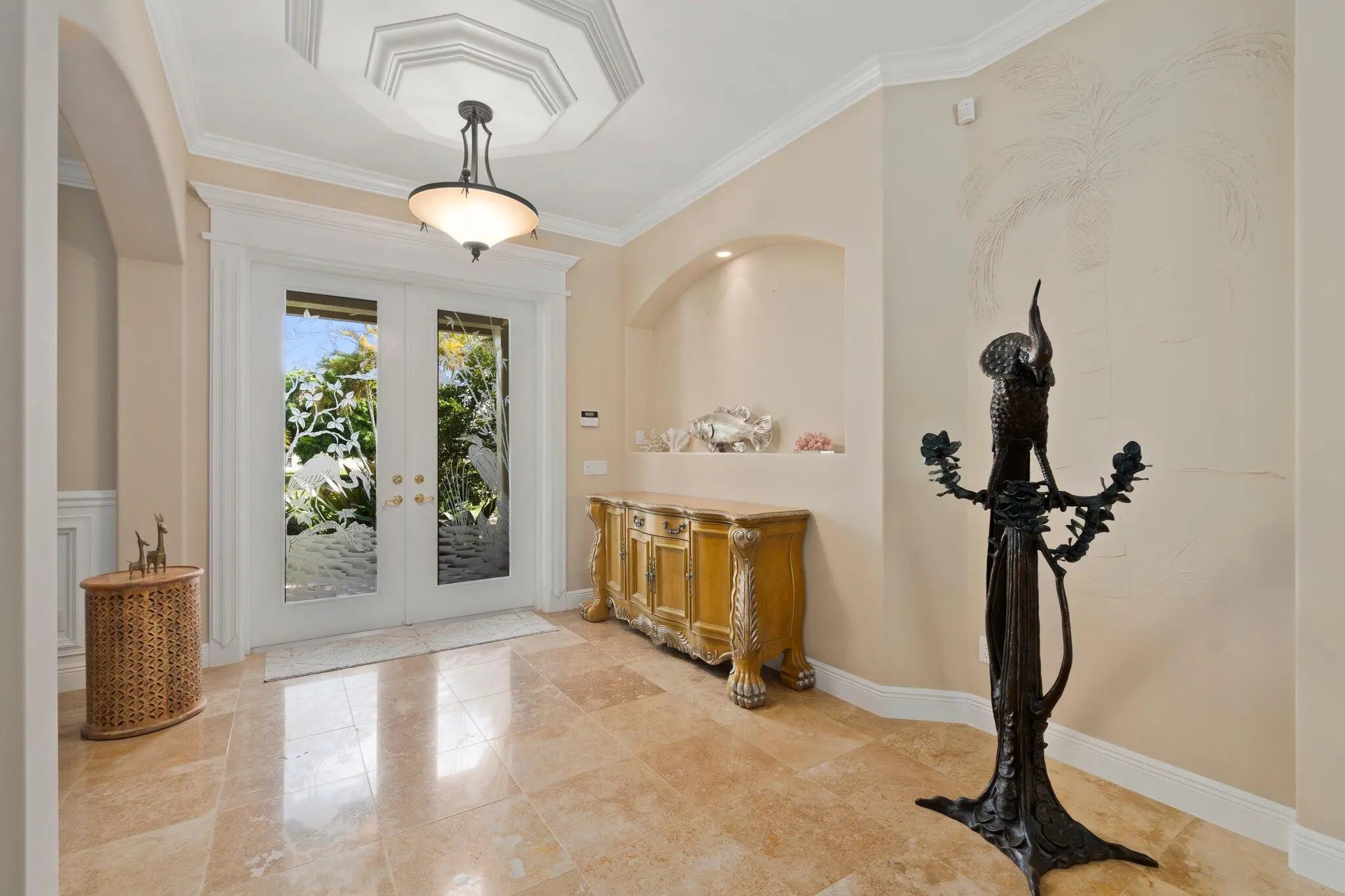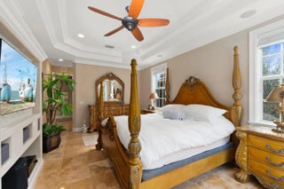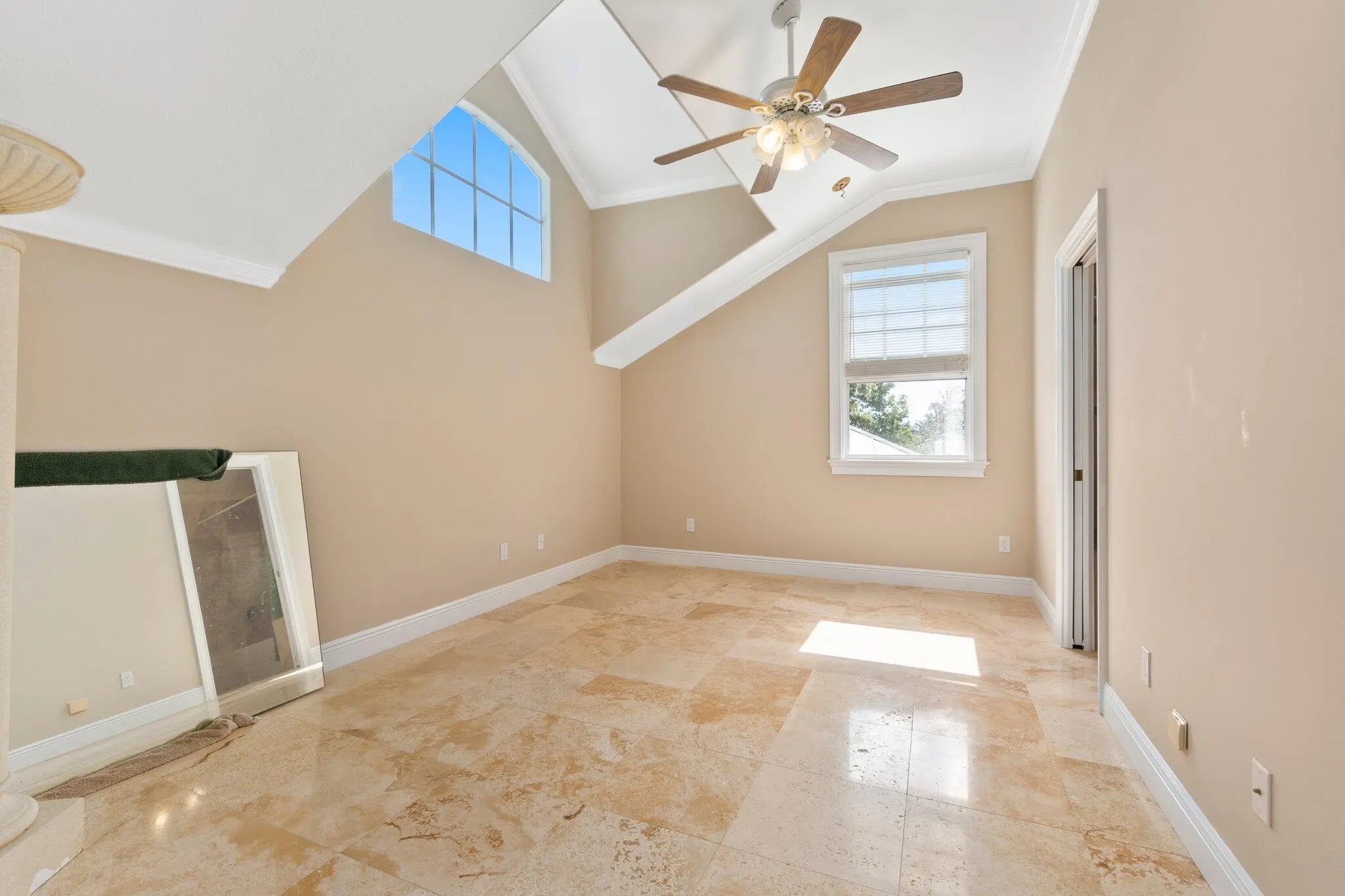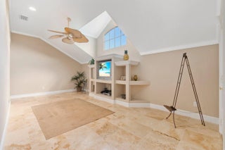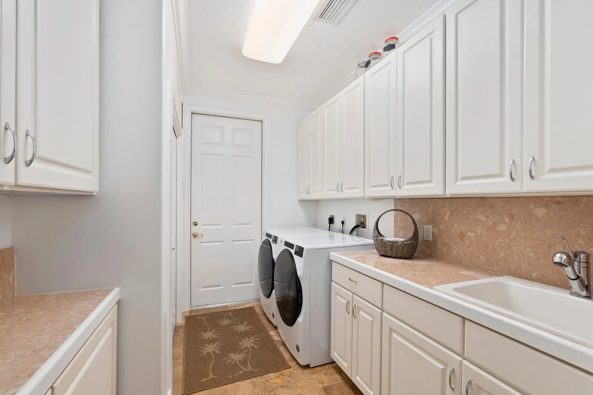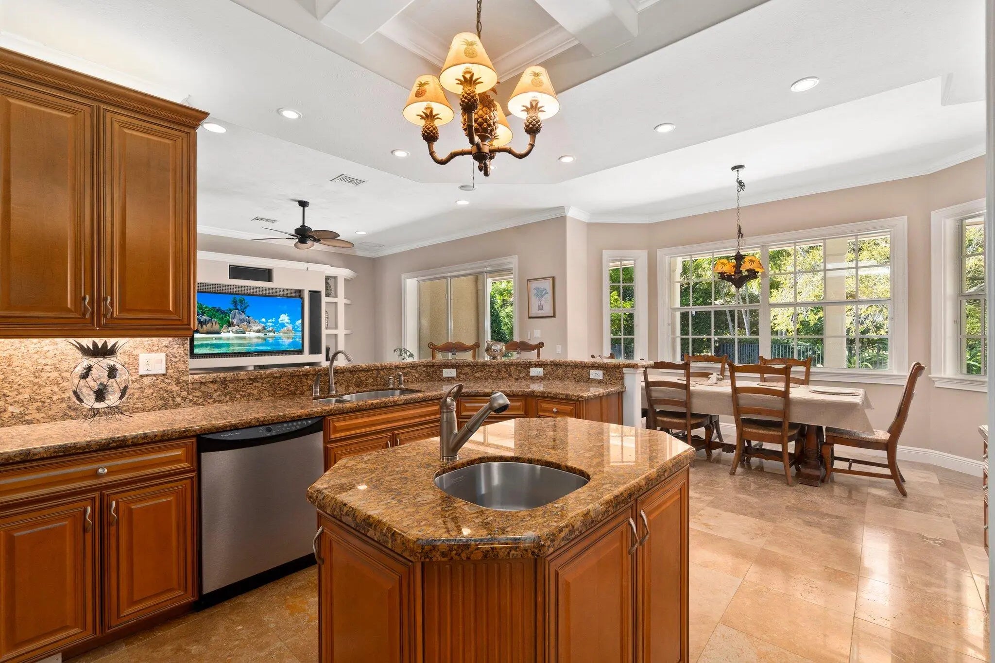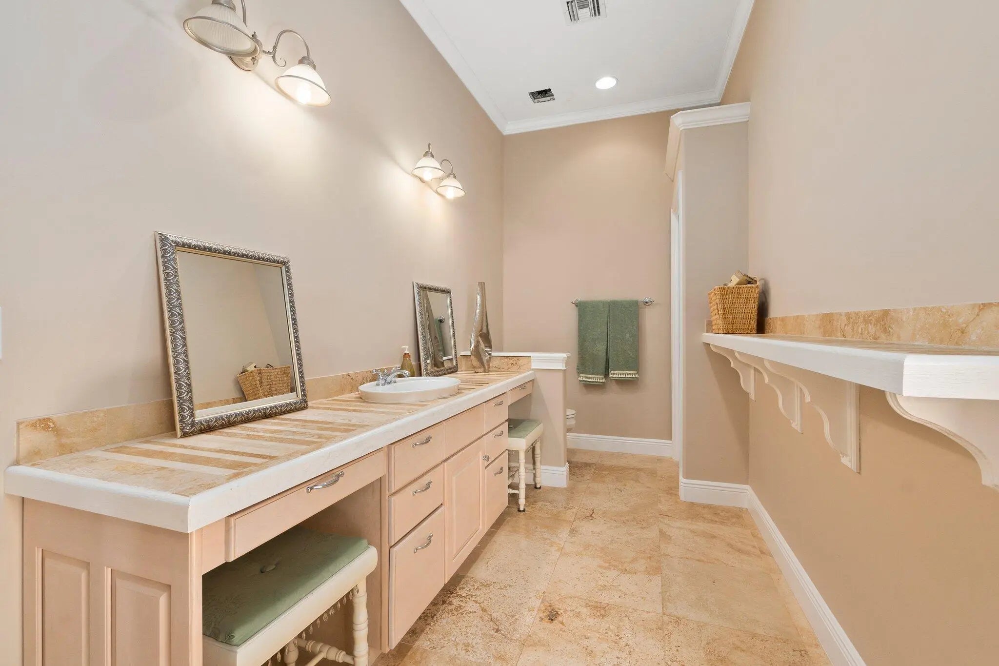 The crown jewel of Sandpiper Bay on .68 acres backing Howard's Creek! This luxury estate with 5 bedrooms plus office/den and 4.5 bathrooms showcases solid construction and elegant design, featuring a gourmet kitchen with center island, breakfast bar, built-in desk, formal dining room, spacious living area, second bedroom, home office, and cabana bath on the main level. Upstairs offers three bedrooms, 2.5 baths, media room with wet bar, family room, and loft--ideal for guests and flexible living. French doors open to a spectacular 44x22 pool and spa, expansive patio, and lush landscaping. Impact windows throughout. Built to exceed code with 10-ft concrete block walls, steel floor joists, steel trusses, and 16-inch on-center construction for exceptional strength and durability.