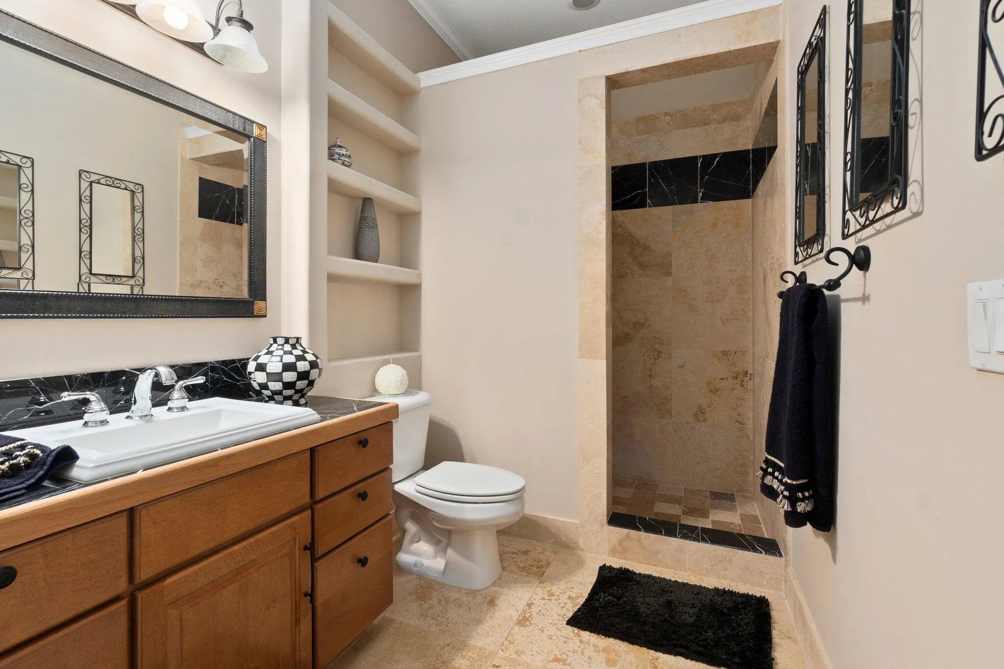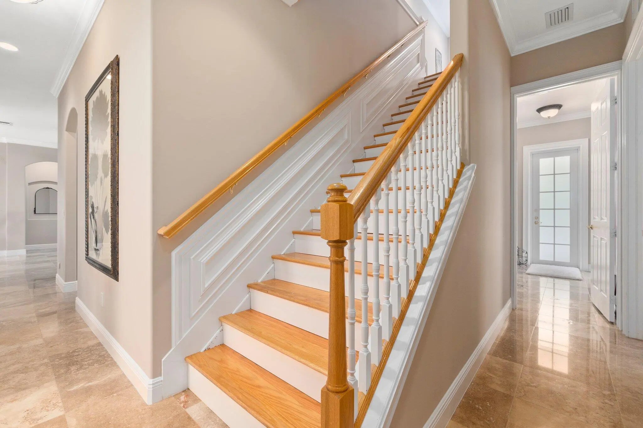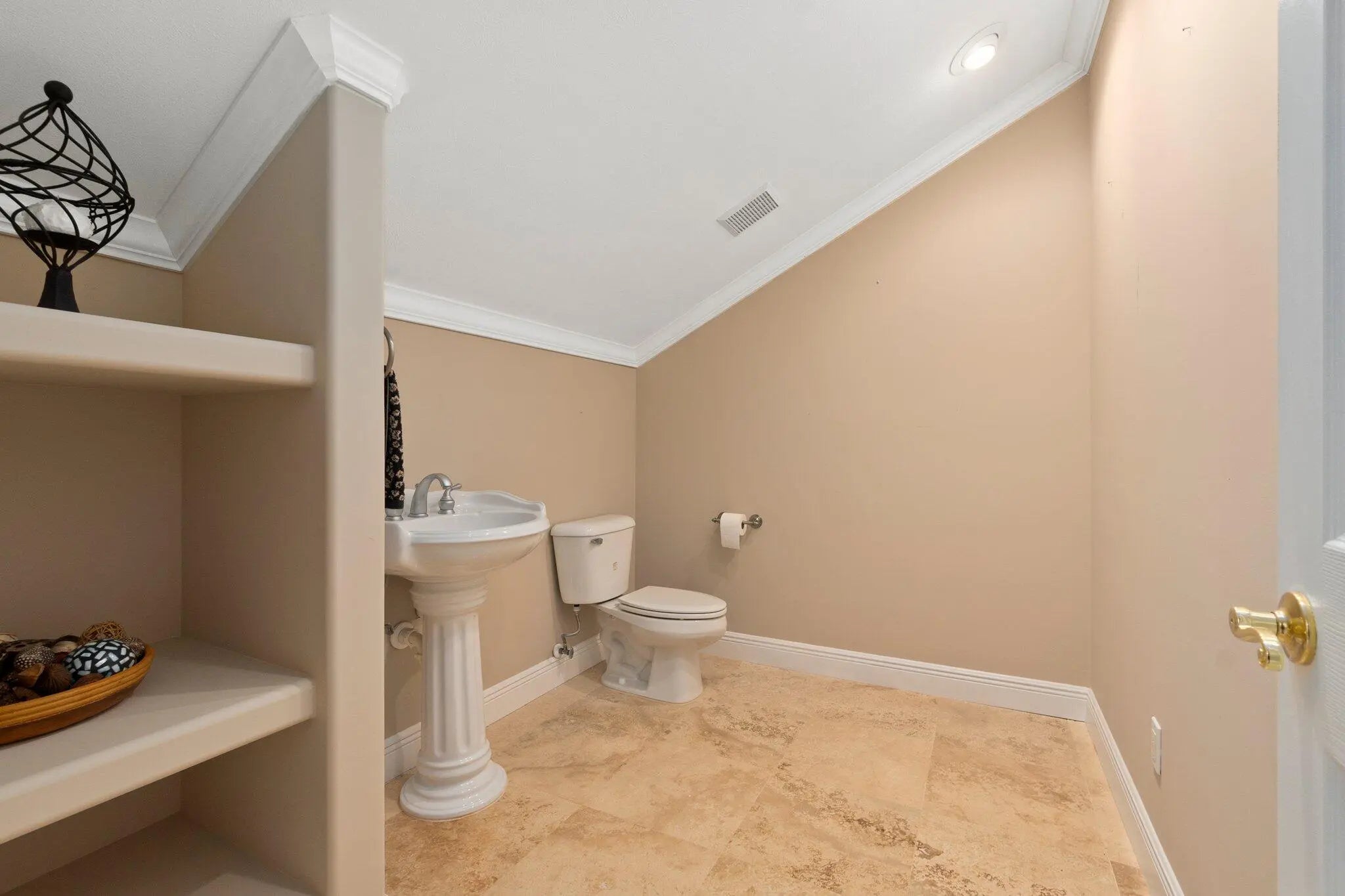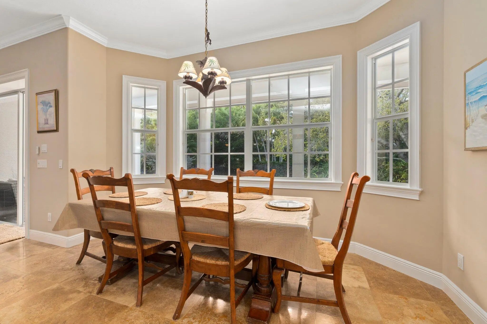 The crown jewel of Sandpiper Bay on .68 acres backing Howard's Creek! This luxury estate with 5 bedrooms plus office/den and 4.5 bathrooms showcases solid construction and elegant design, featuring a gourmet kitchen with center island, breakfast bar, built-in desk, formal dining room, spacious living area, second bedroom, home office, and cabana bath on the main level. Upstairs offers three bedrooms, 2.5 baths, media room with wet bar, family room, and loft--ideal for guests and flexible living. French doors open to a spectacular 44x22 pool and spa, expansive patio, and lush landscaping. Impact windows throughout. Built to exceed code with 10-ft concrete block walls, steel floor joists, steel trusses, and 16-inch on-center construction for exceptional strength and durability.