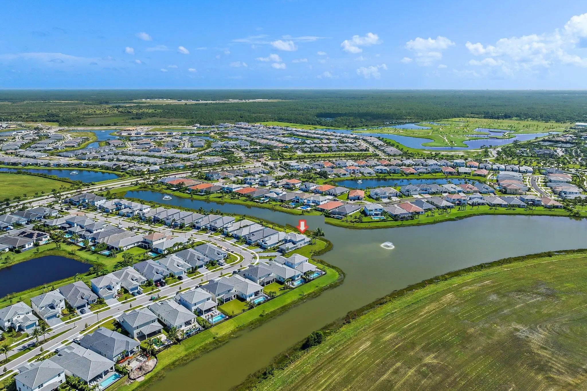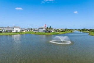 270-degree PANORAMA WATER VIEW At the Wonderful Gated Community Of Windgate At Avenir. This is one of the biggest and most magnificent house in the whole community, features 5 bedrooms, 3.5 baths, large loft on 2nd floor, 2 extended large garages. MBR on the first floor. Over 3000 SF living space with many upgrades: additional covered lanai with breath-taking, 270-degree panorama water view, exterior privacy wall at lanai, outdoor kitchen prep ready, designer fire place, electric car charger pre-wire, upgraded cabinets and quartz counter top, open stairs railing... a true heaven and be the first to live in!