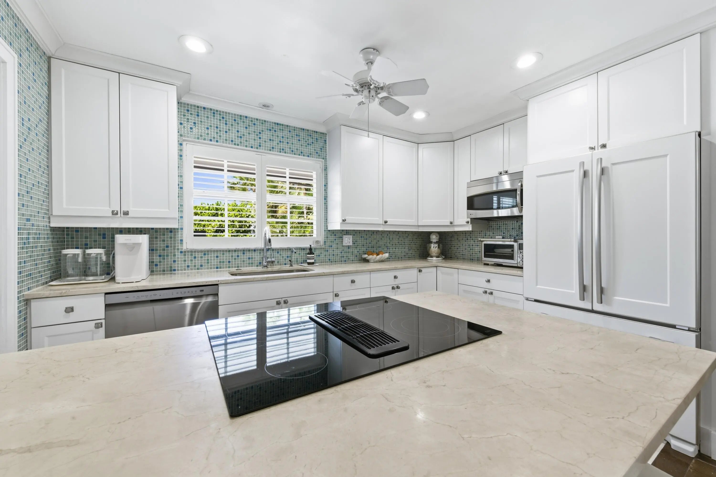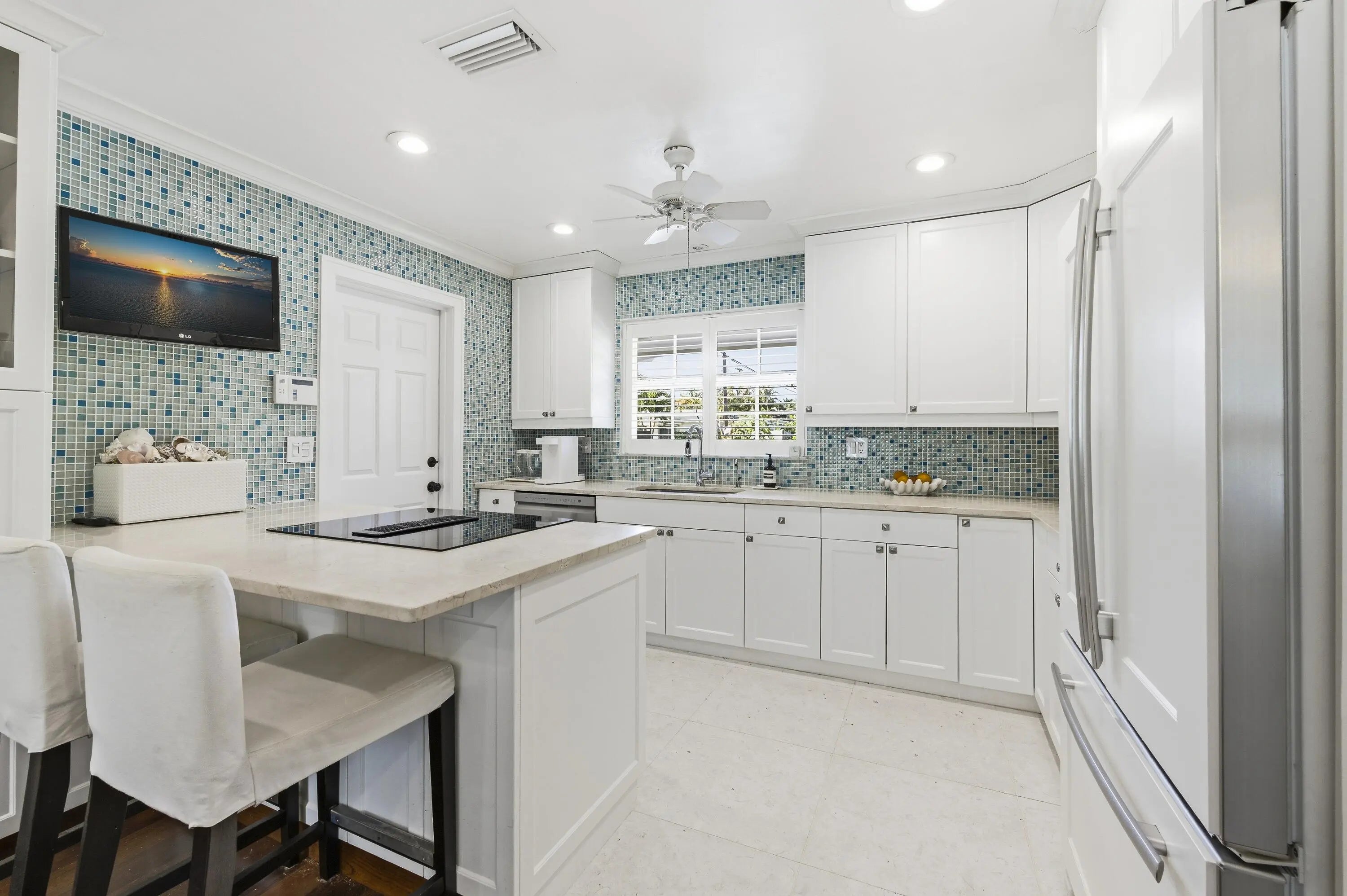 Completely renovated and full of charm, this stunning 3-bedroom plus den home in North Palm Beach offers the perfect blend of timeless character and modern upgrades. From the moment you enter, you'll appreciate the thoughtful details and quality craftsmanship throughout.The beautifully updated kitchen features classic white shaker cabinetry, premium JennAir refrigerator and range, and ample workspace for both everyday living and entertaining. Plantation shutters add elegance while allowing for natural light, and all impact windows and doors provide peace of mind and energy efficiency. The home showcases shell rock-inspired tile flooring and engineered teak wood throughout, creating a seamless blend of coastal sophistication and warmth.Designed for comfortable living, the expansive