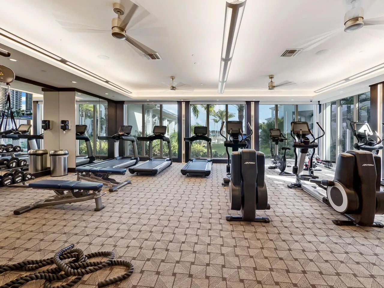 Highly desirable floor plan in Water Club offering expansive floor-to-ceiling water views. Featuring 3 bedrooms plus a den and 4 full en-suite baths, this residence includes a private elevator entry, full hurricane-impact windows and doors, and electric window shades throughout. Custom built-ins, Venetian plaster walls, and coastal contemporary finishes enhance the interior, along with multiple terraces capturing both sunrise and sunset views. Two assigned garage parking spaces plus separate storage and bike storage are included. Pet-friendly allowing up to three pets with an on-site dog park. Water Club is a guard-gated community with (See Supplement)...